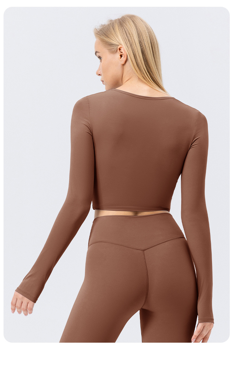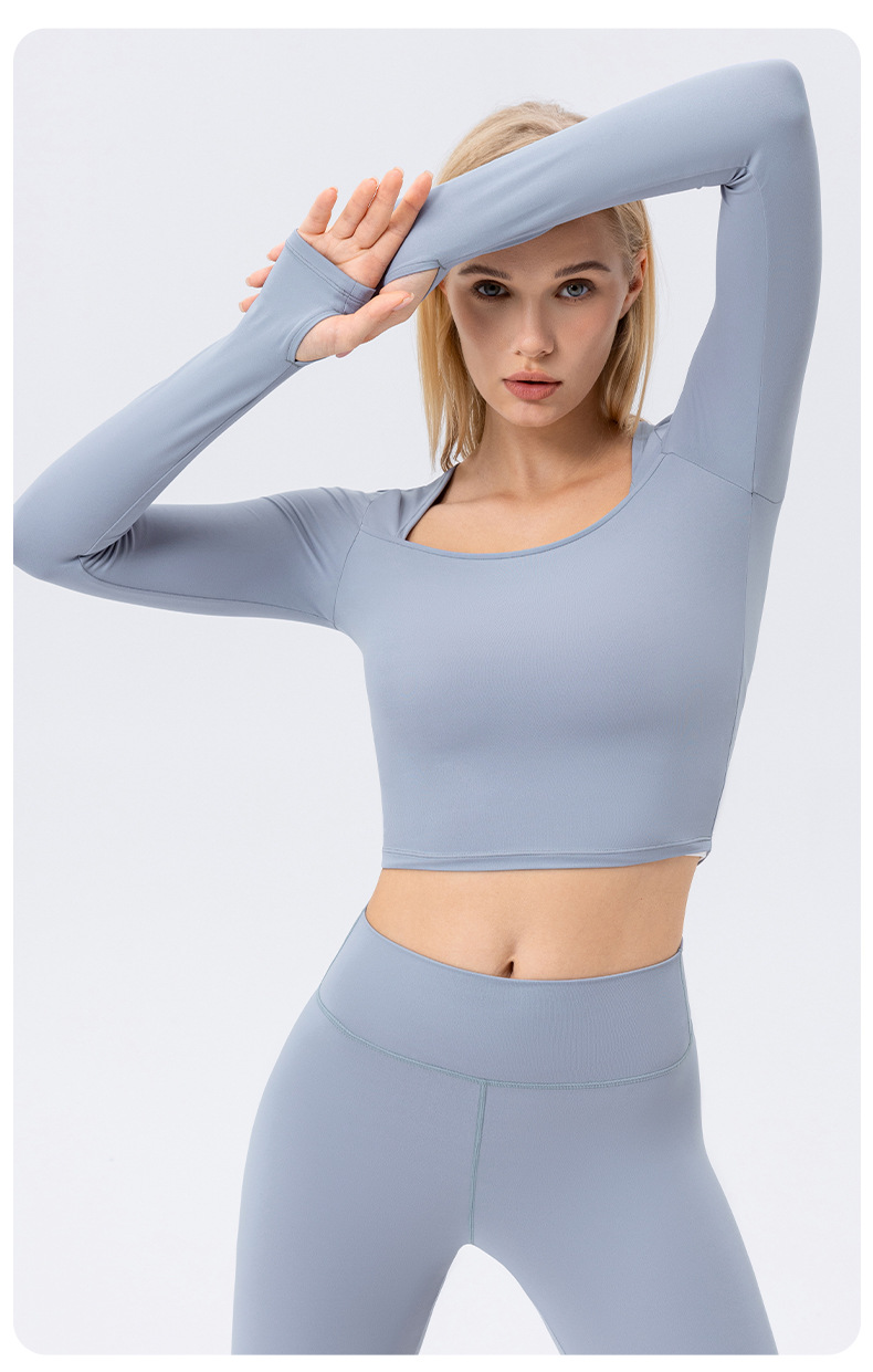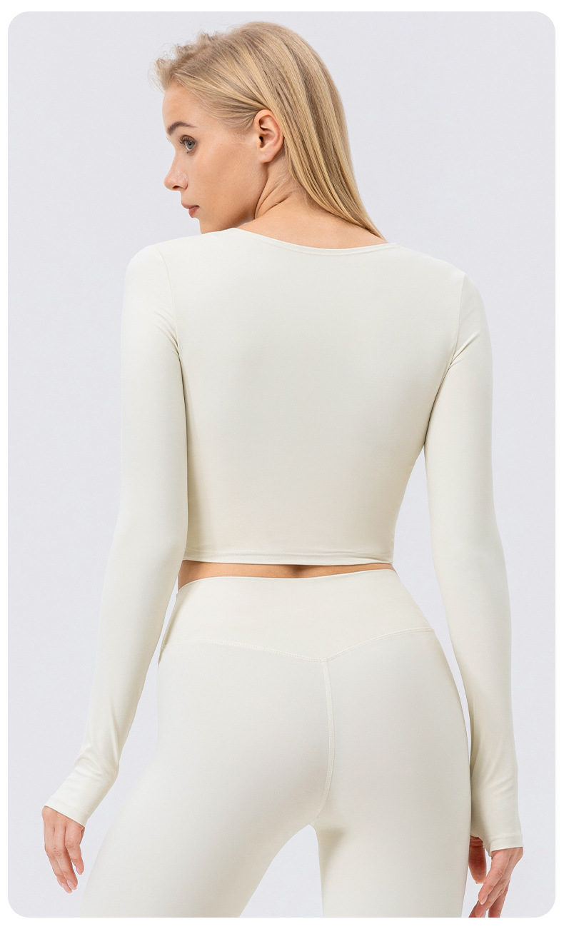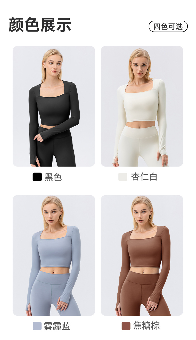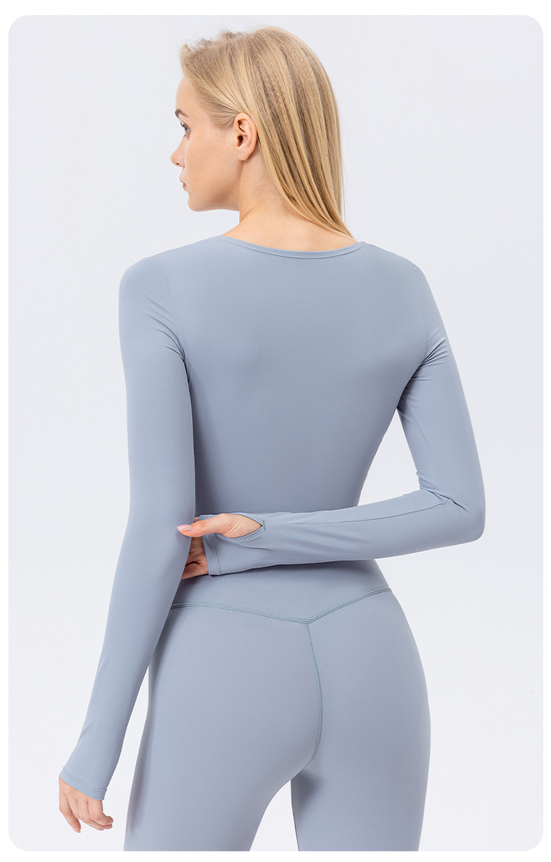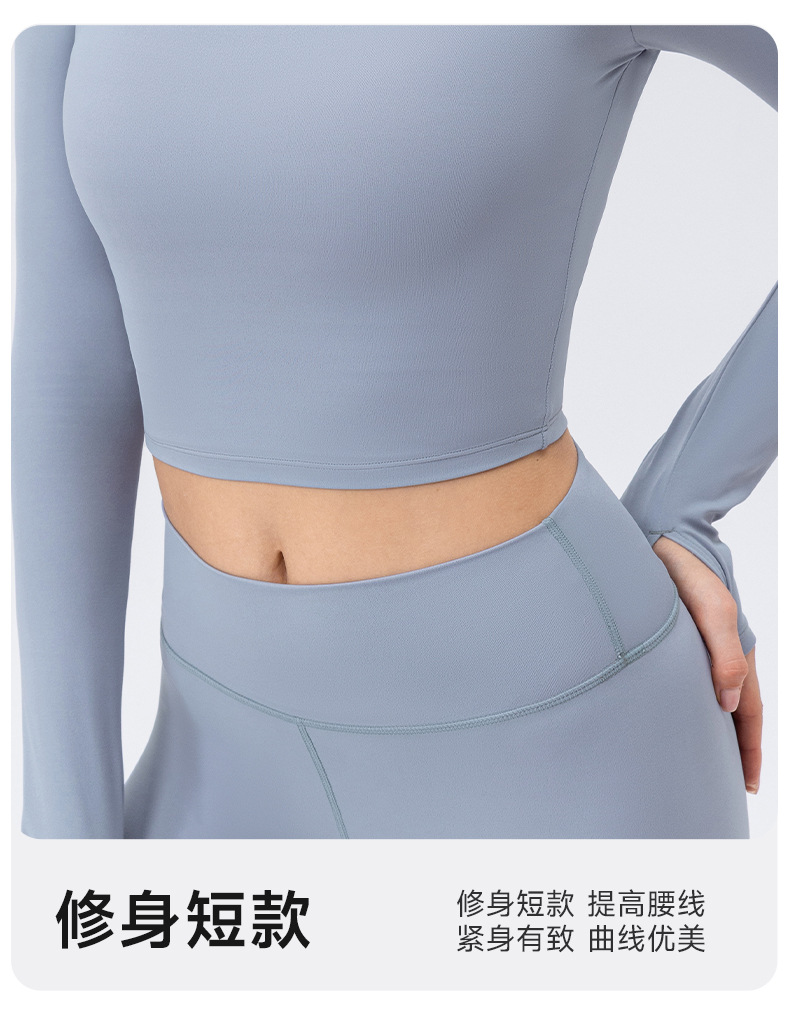 가을과 겨울 요가 옷 긴 소매 여성용 칼라 벌거 벗은 타이트 스포츠 티셔츠 야외 달리기 피트니스 탑 42552
