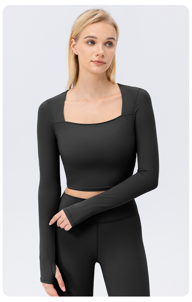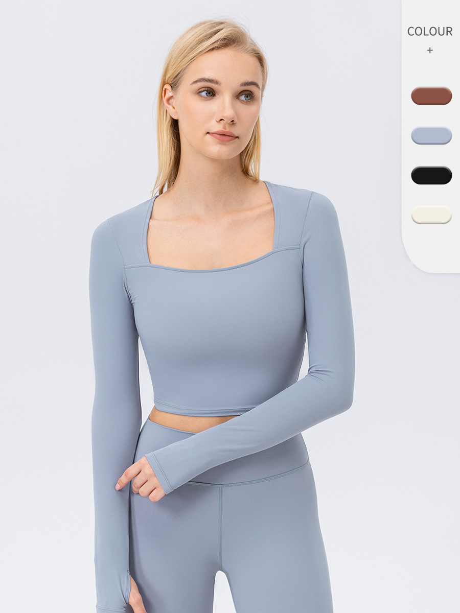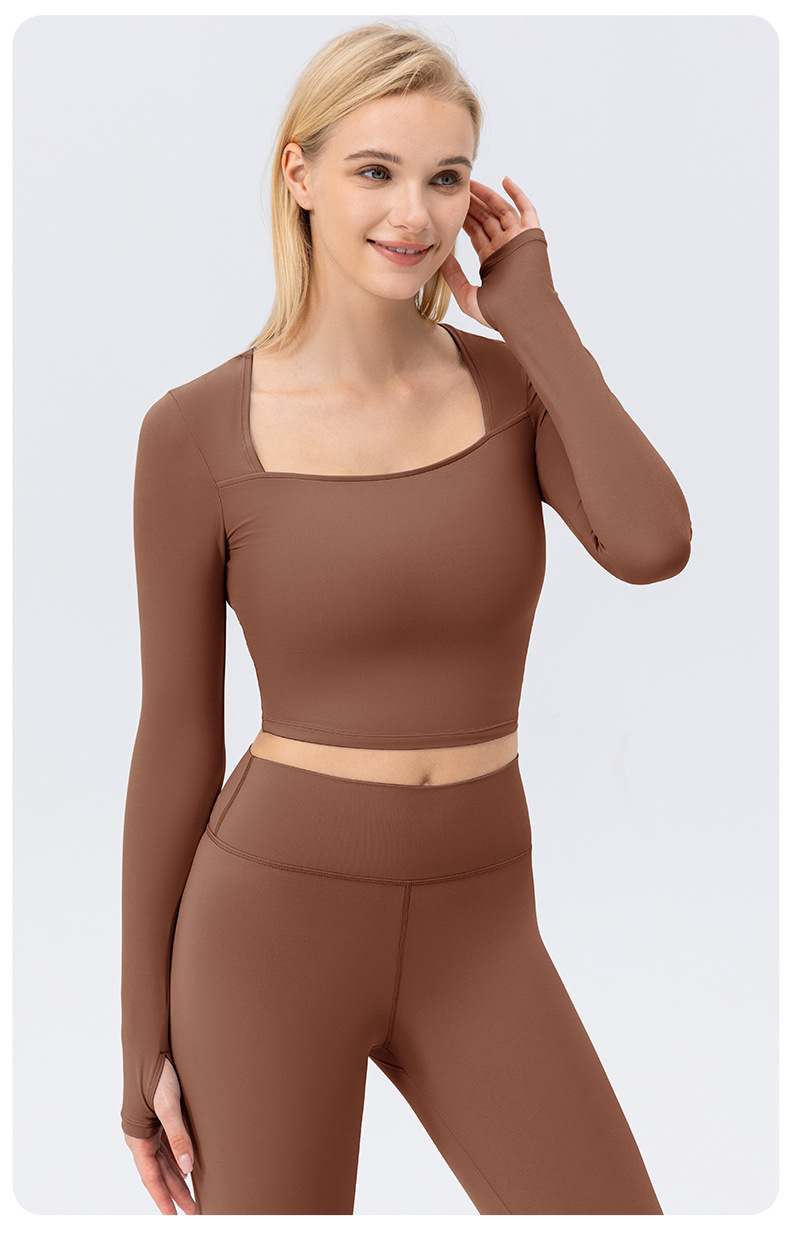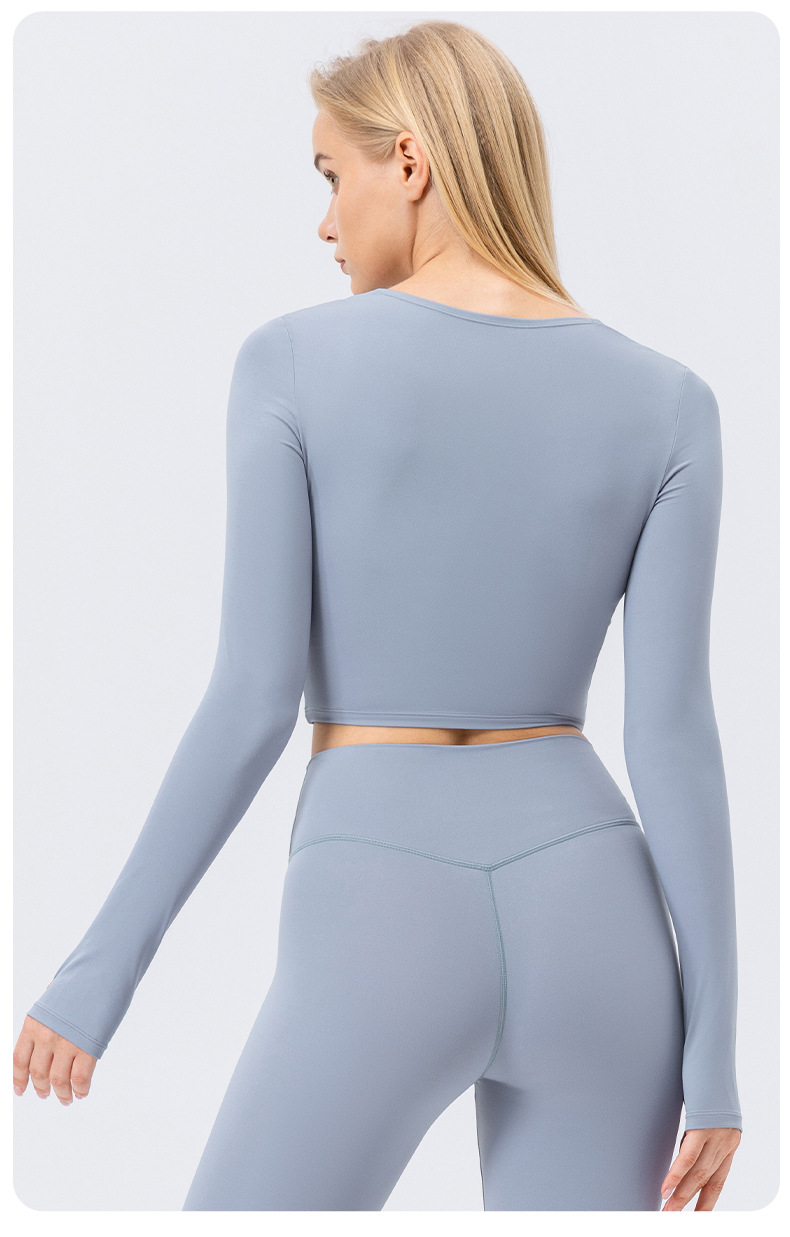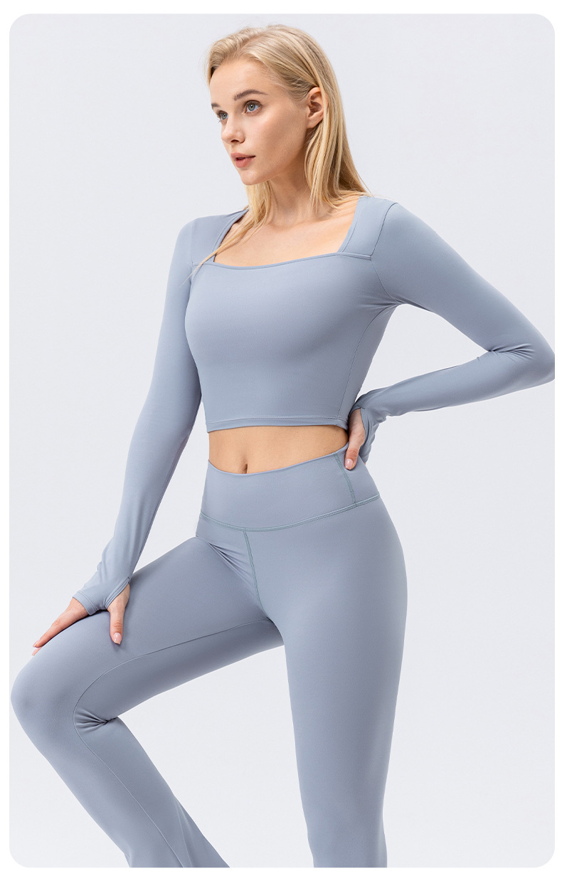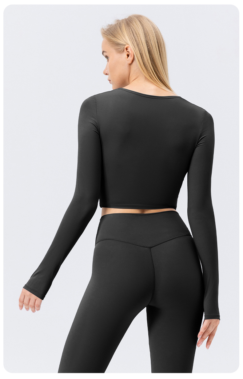 가을과 겨울 요가 옷 긴 소매 여성용 칼라 벌거 벗은 타이트 스포츠 티셔츠 야외 달리기 피트니스 탑 42552