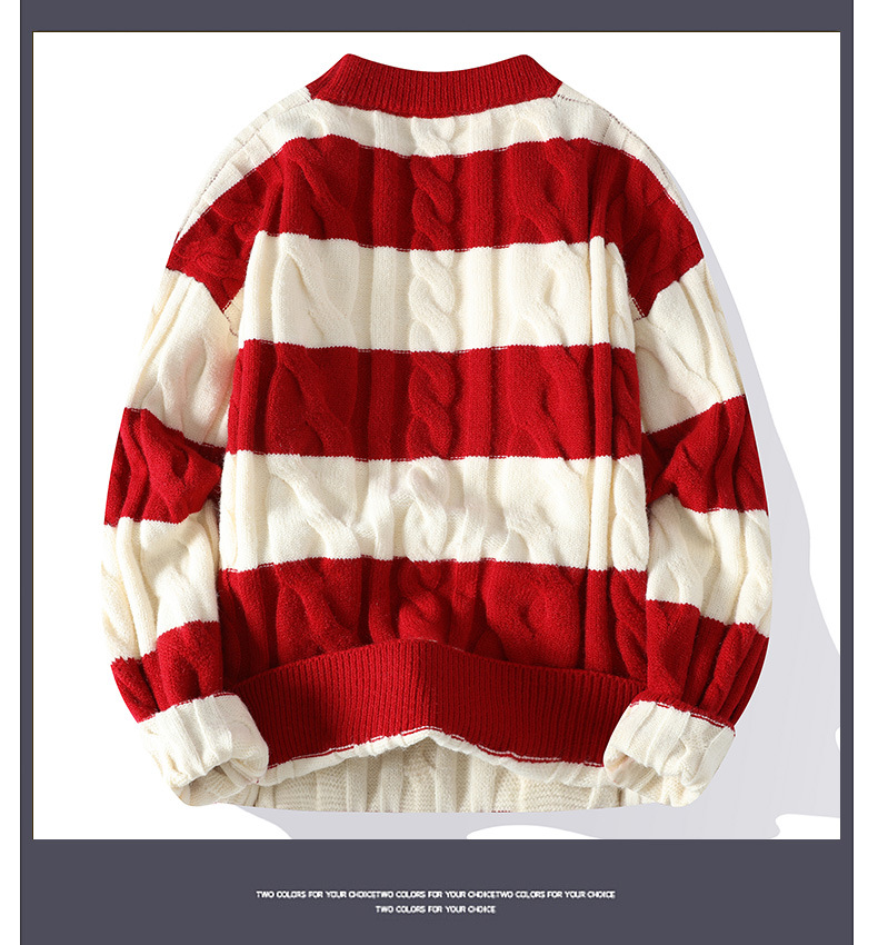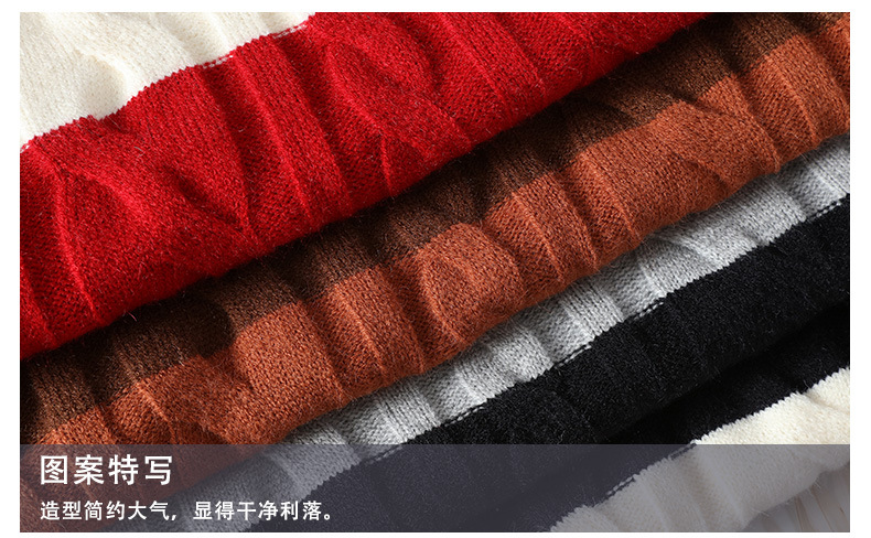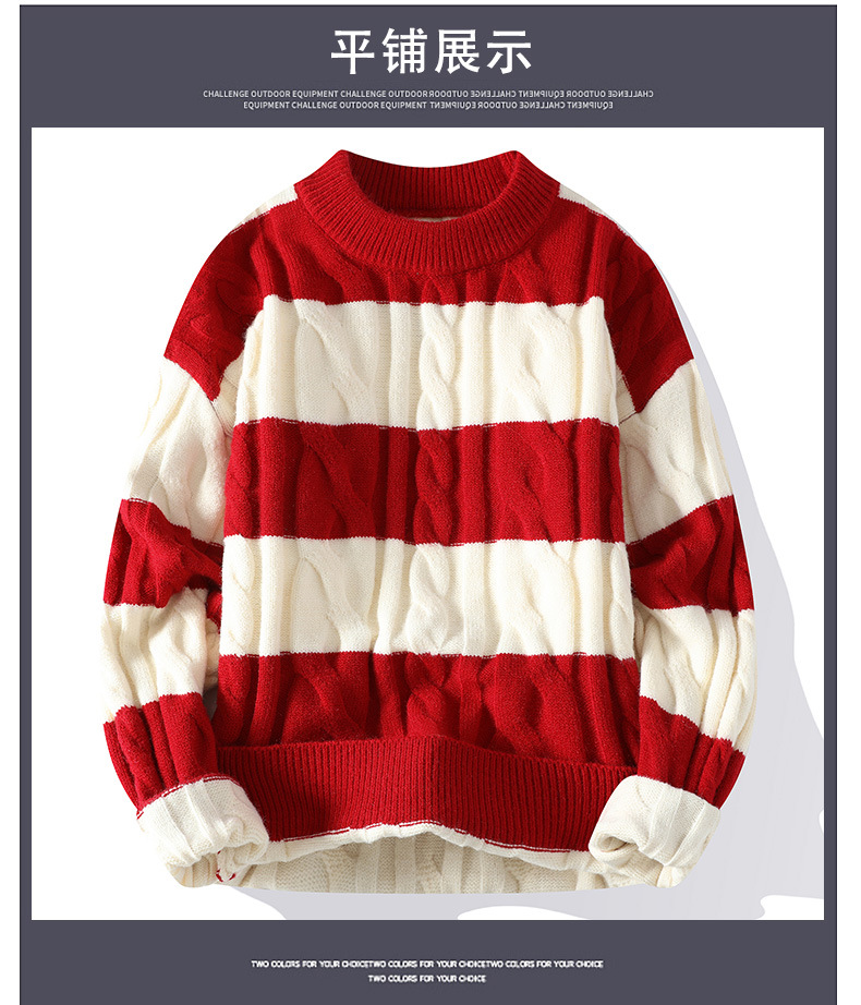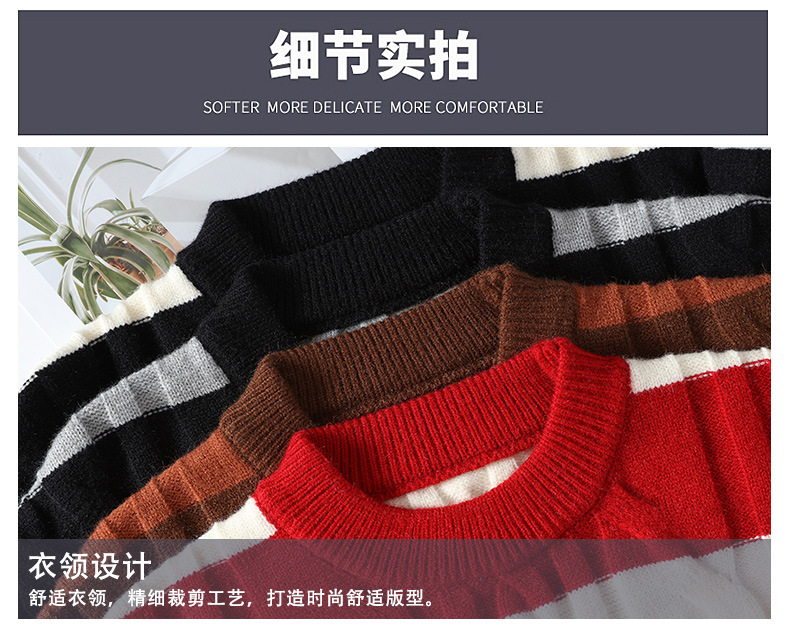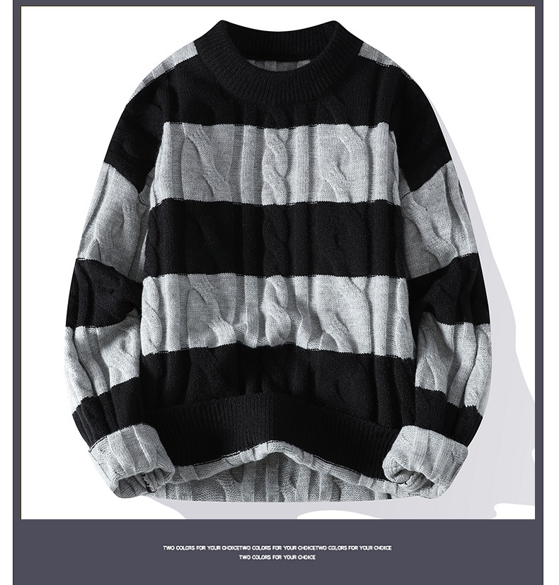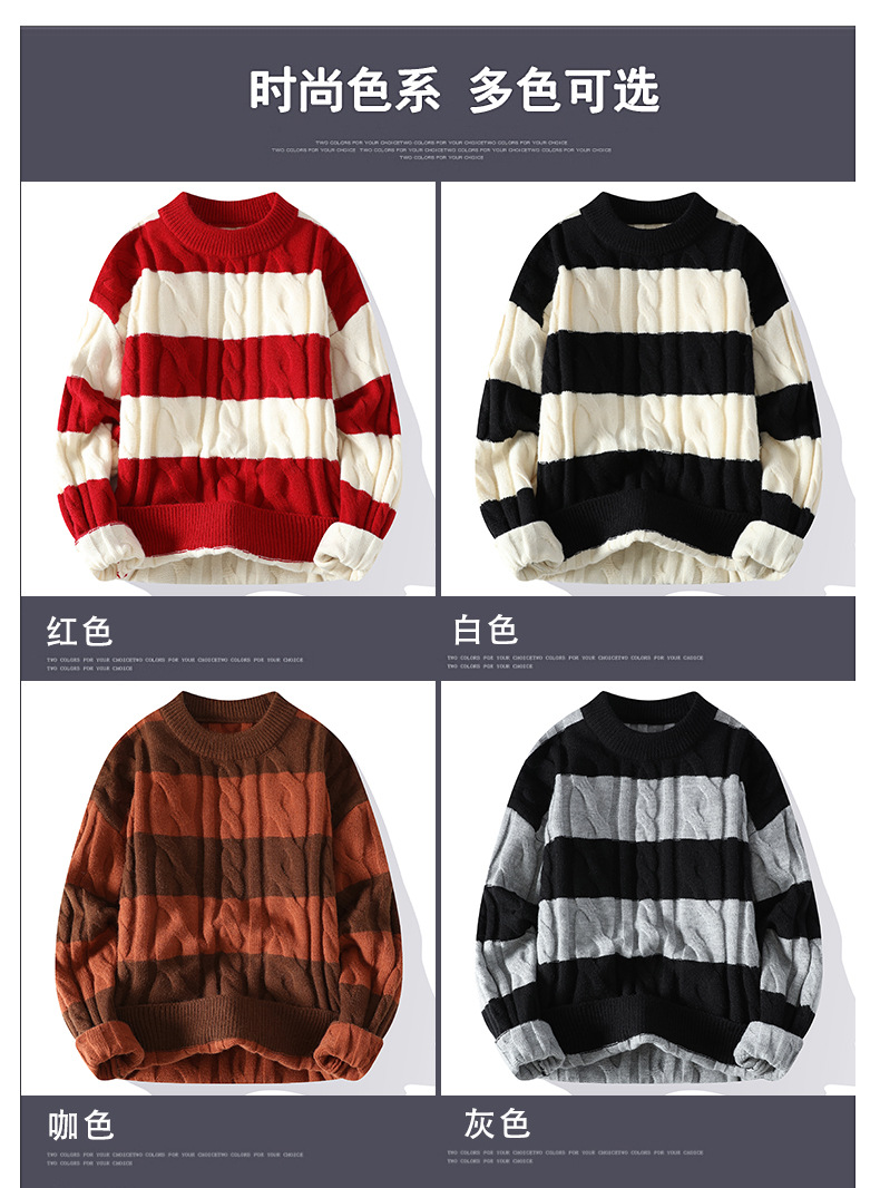대외 무역 긴 소매 라운드 넥 스트라이프 컬러 매칭 두꺼운 바늘 풀오버 스웨터 남성 아메리칸 스타일 패션 브랜드 청소년 두꺼운 따뜻한 니트 스웨터