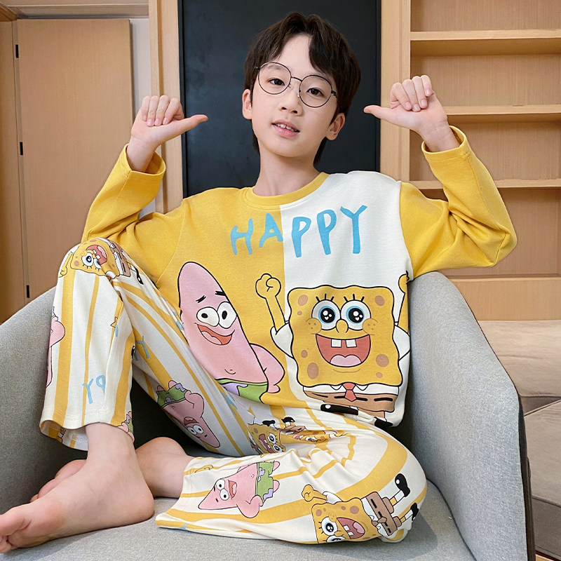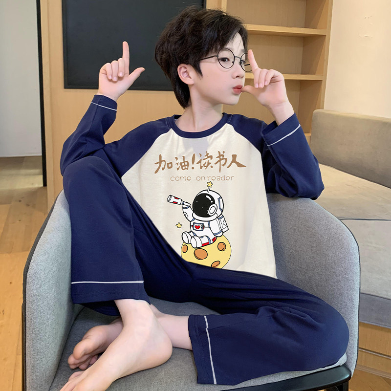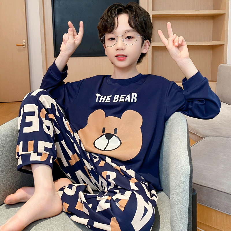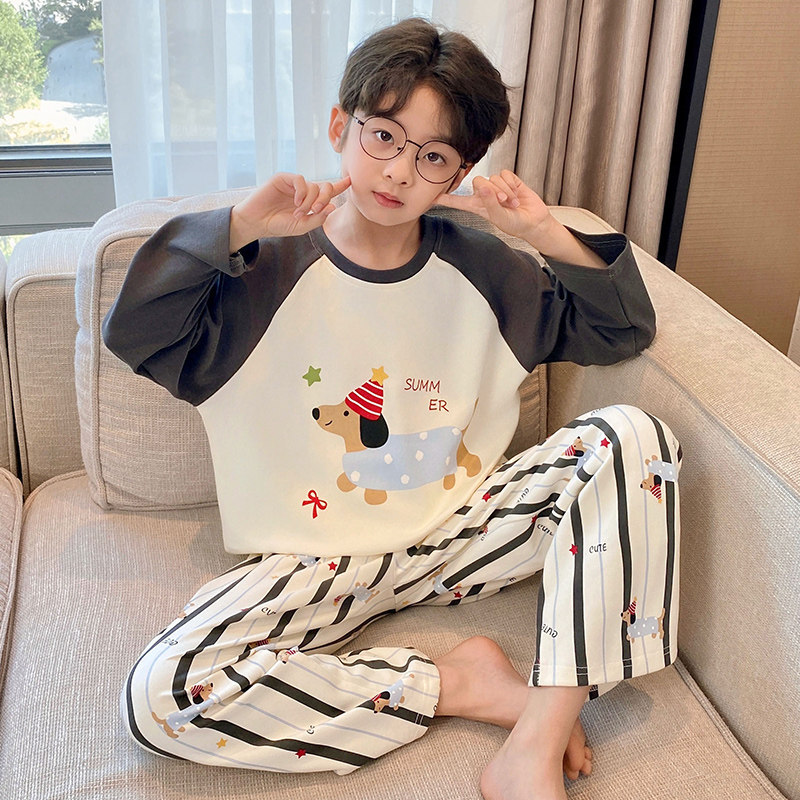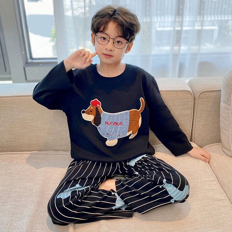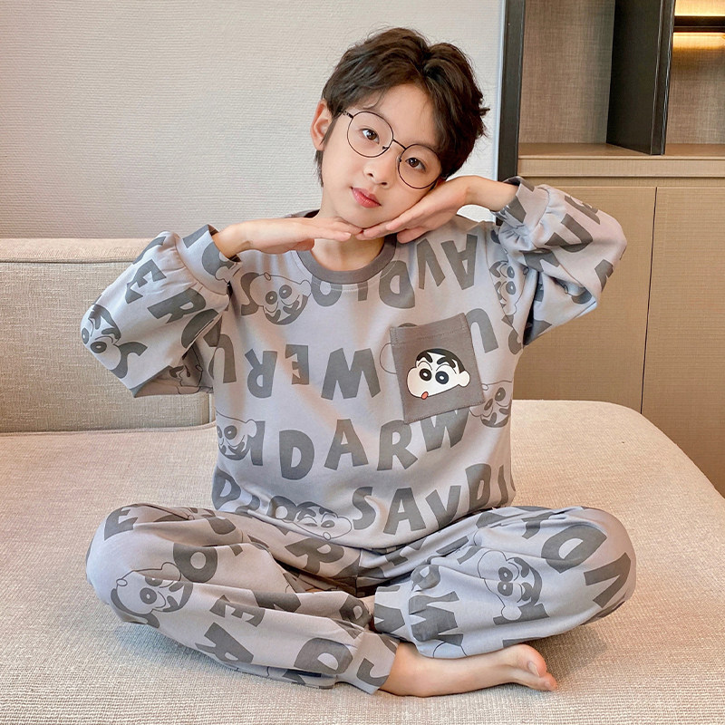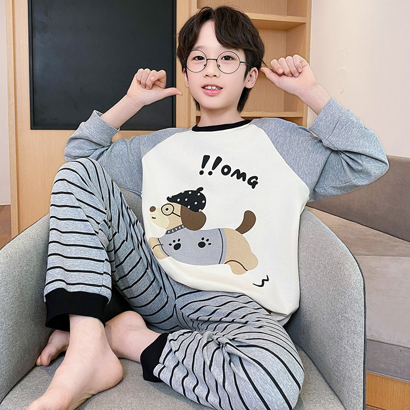 어린이 순면 잠옷 봄과 가을 소년 가정 옷 청소년 가을 긴 소매 중대형 어린이 만화 소년 세트스토어 가기