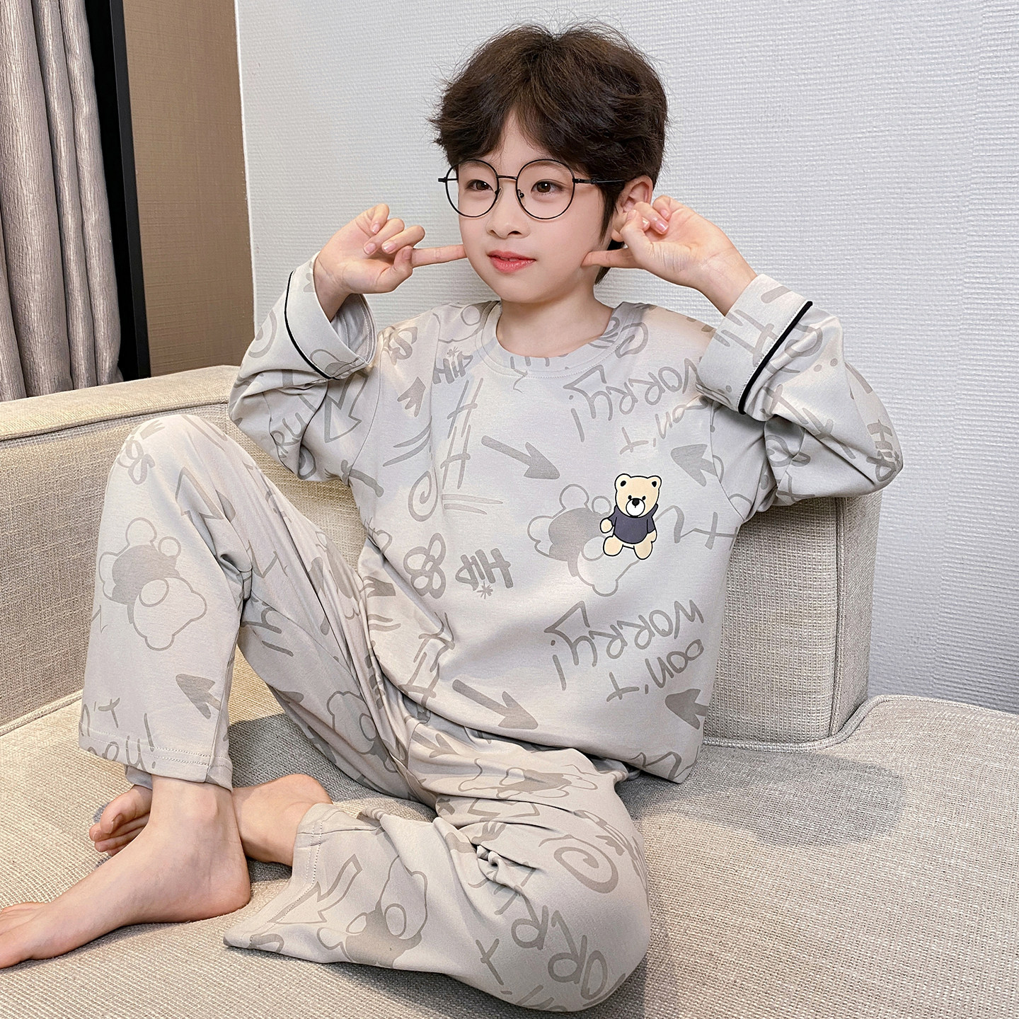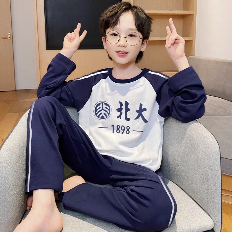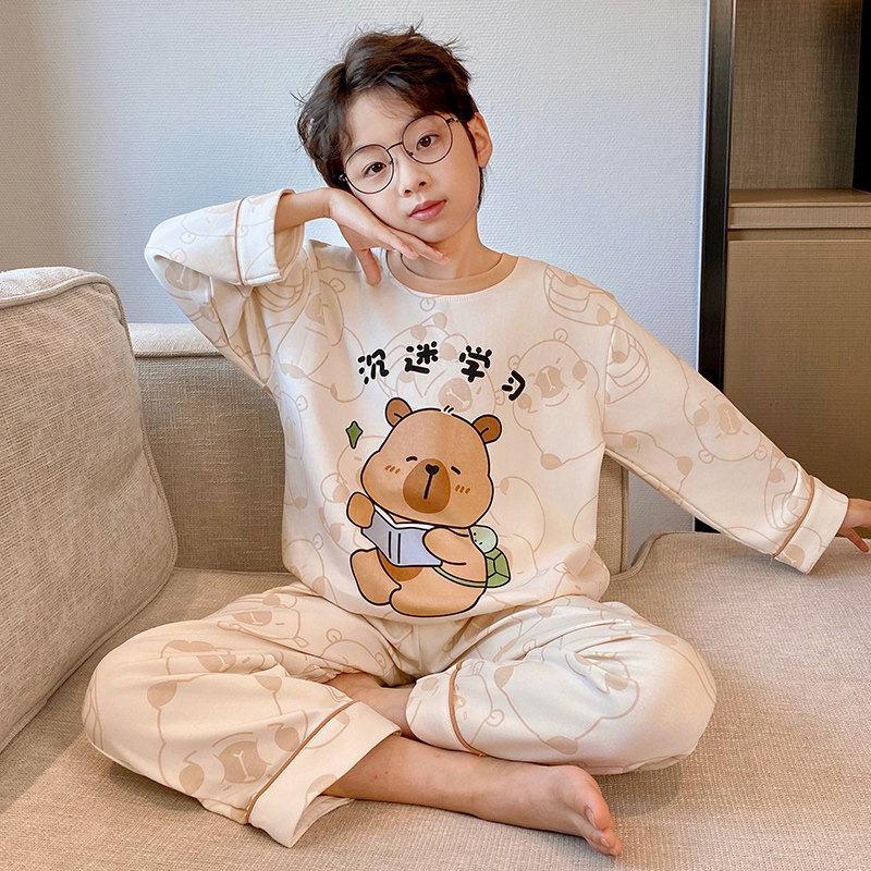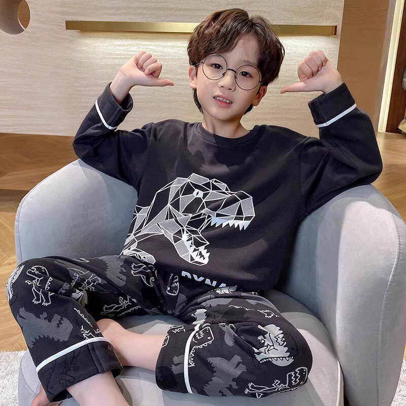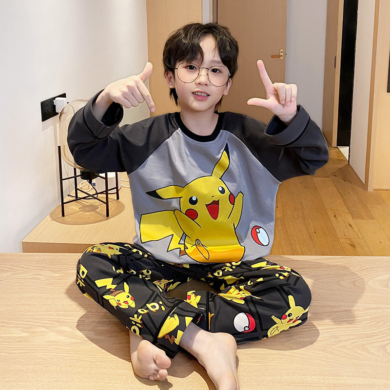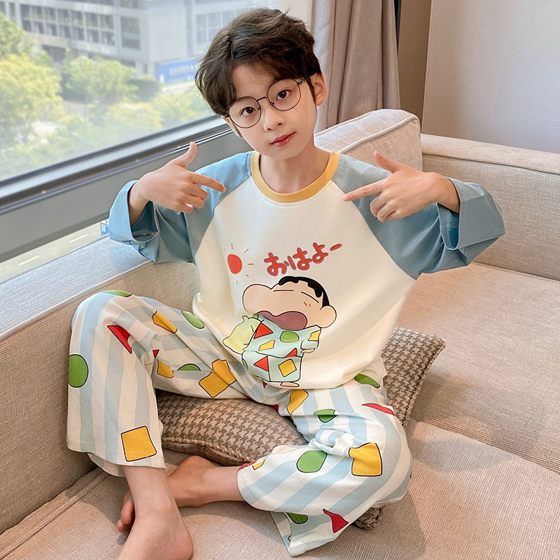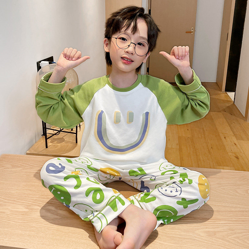 어린이 순면 잠옷 봄과 가을 소년 가정 옷 청소년 가을 긴 소매 중대형 어린이 만화 소년 세트스토어 가기