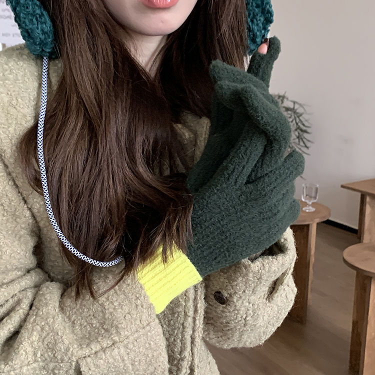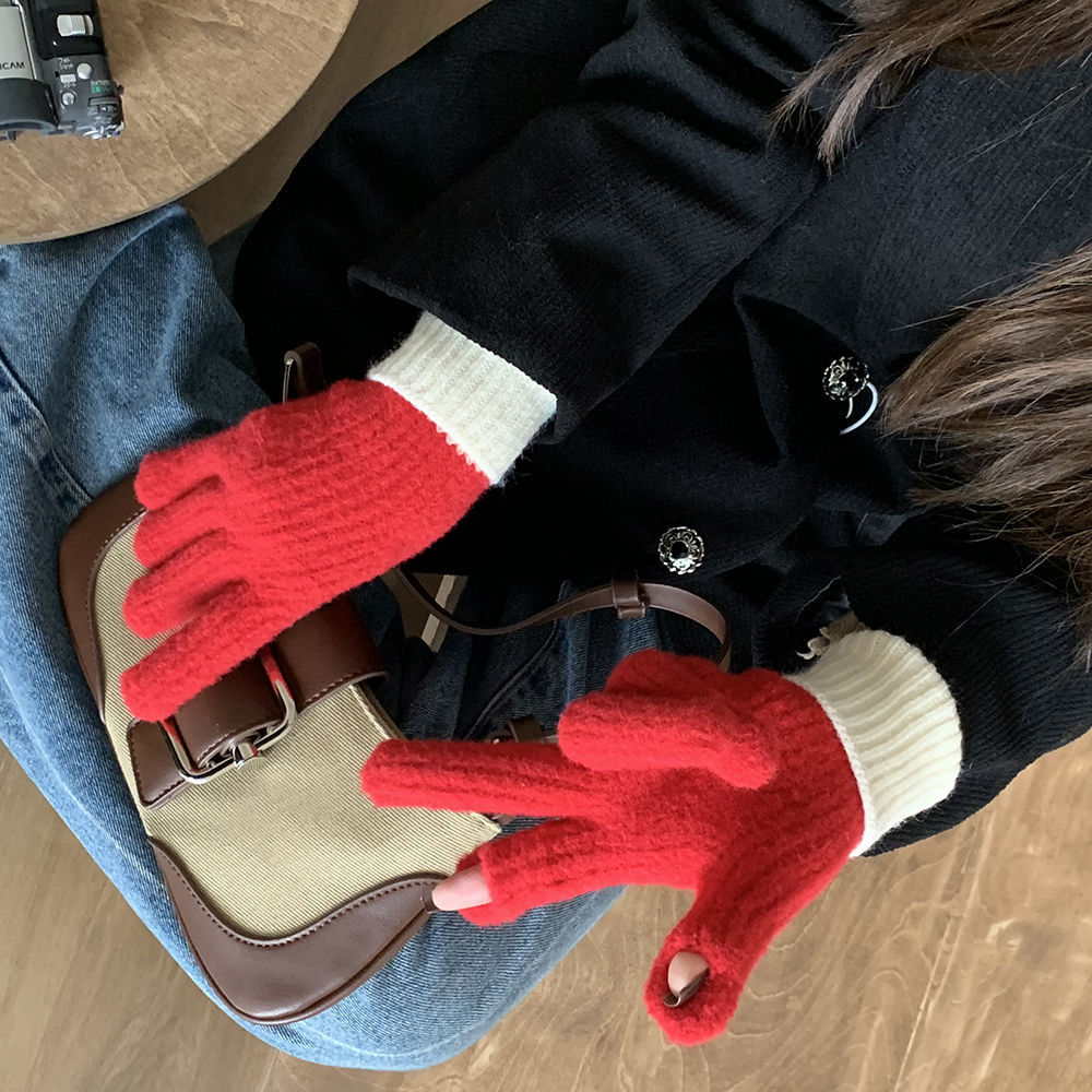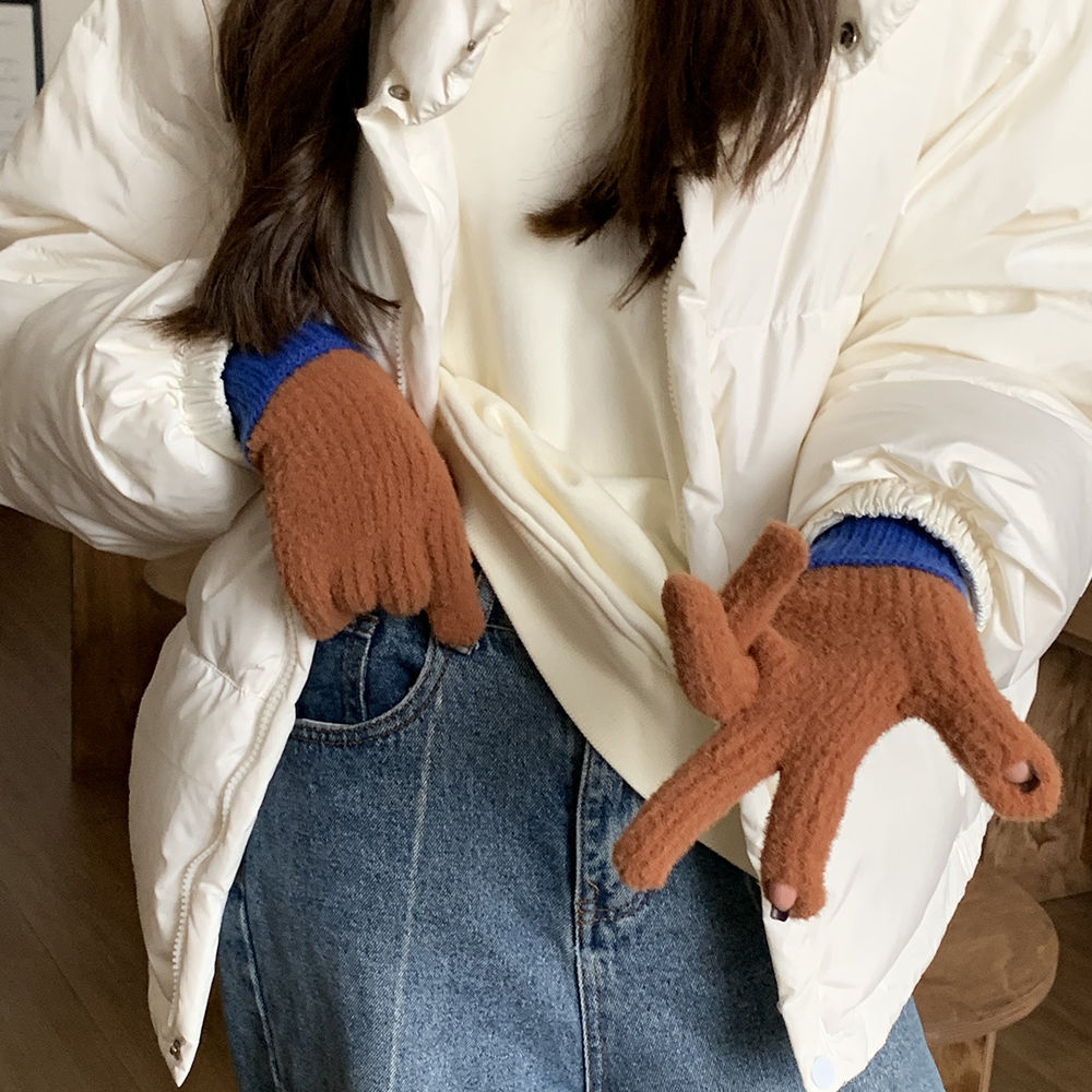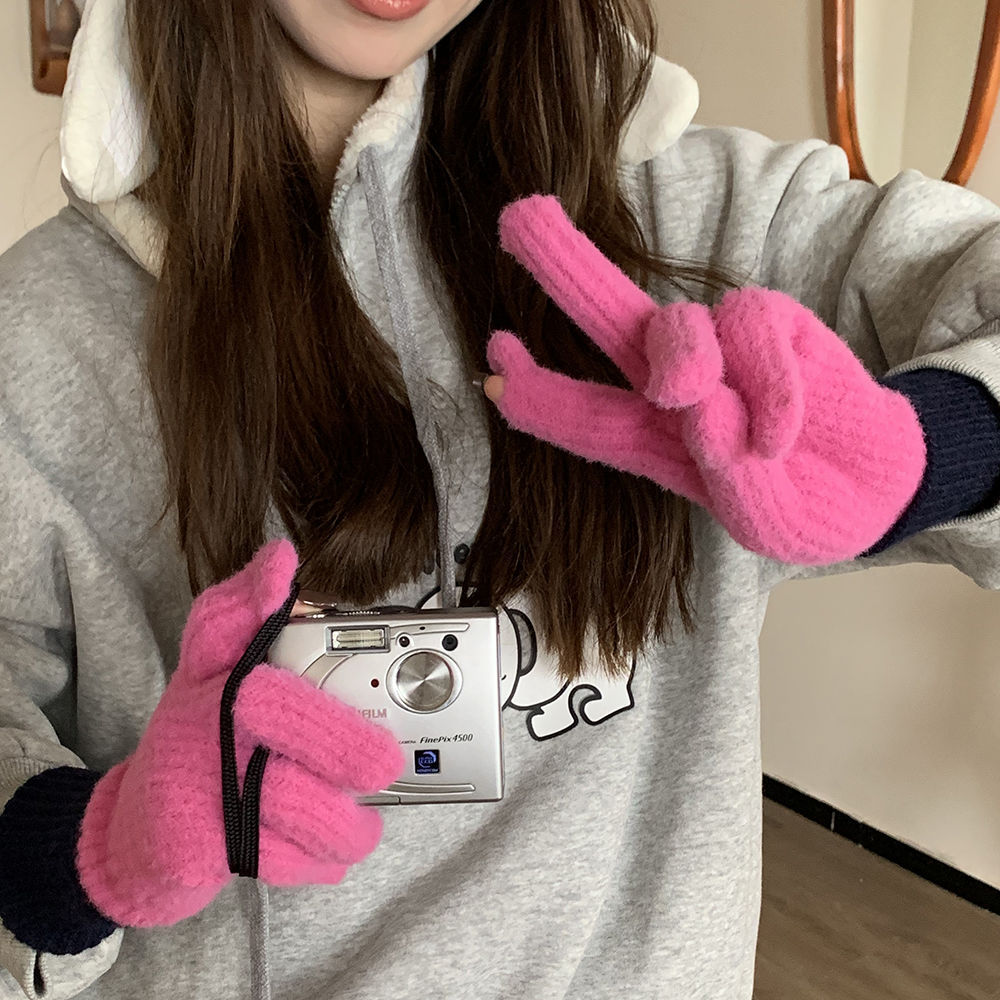 2024 높은 뷰티 가치 틈새 두꺼운 따뜻한 이슬 투핑거 풀 가방 핑거 장갑 여성의 겨울 더블 스타일 새로운 한국 스타일스토어 가기