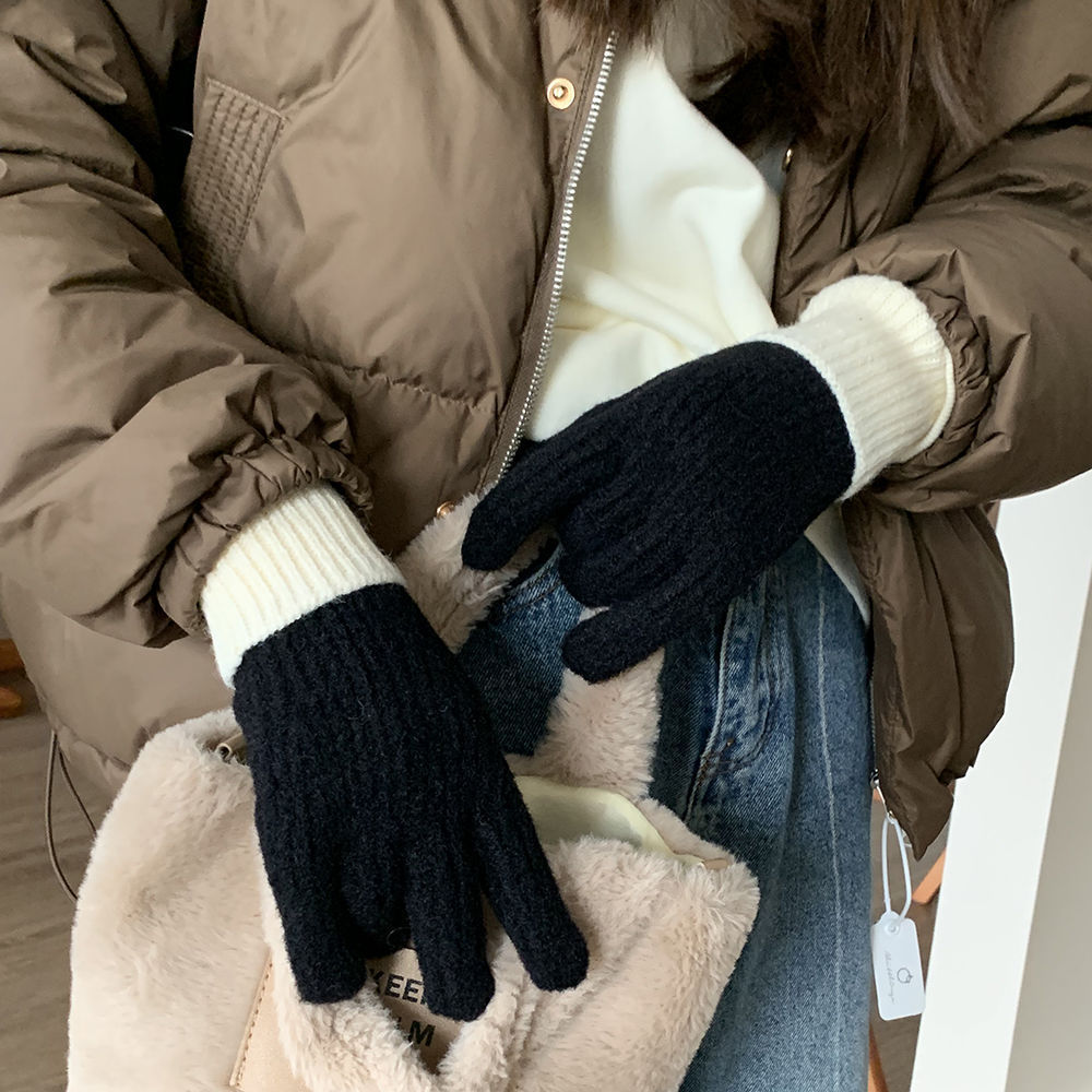 2024 높은 뷰티 가치 틈새 두꺼운 따뜻한 이슬 투핑거 풀 가방 핑거 장갑 여성의 겨울 더블 스타일 새로운 한국 스타일