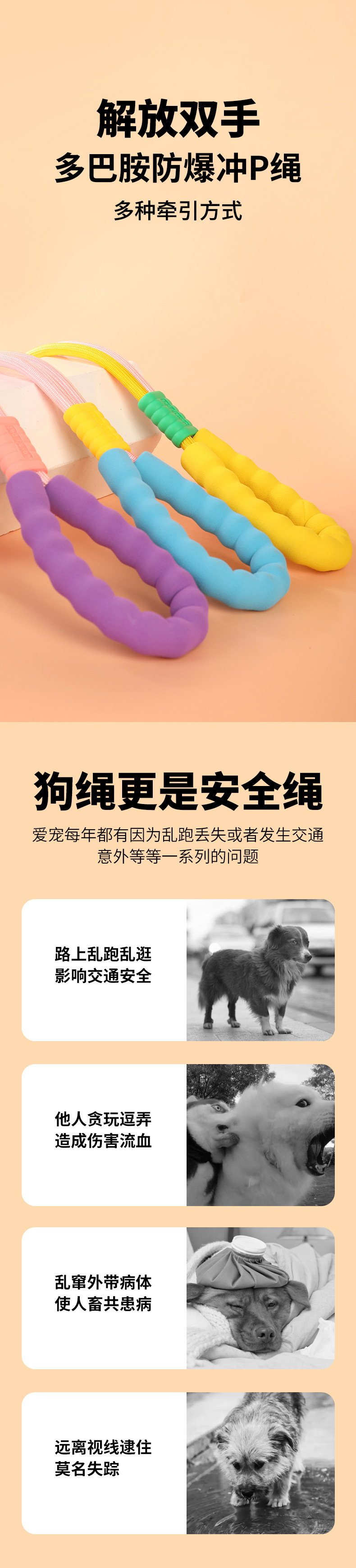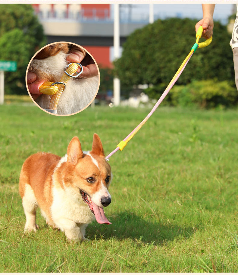 개 견인 로프 폭발 방지 펀칭 p 로프 미디어와 작은 개 안티 브레이크 프리 p 체인 큰 개 넥타이 개 로프 소매 목 걷는 개 유물