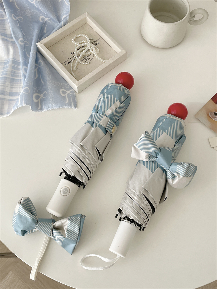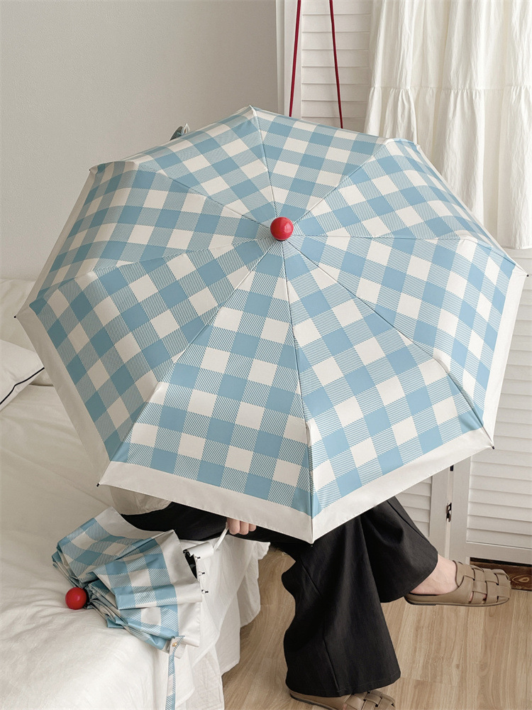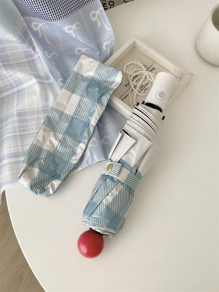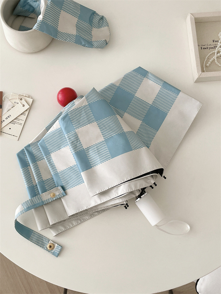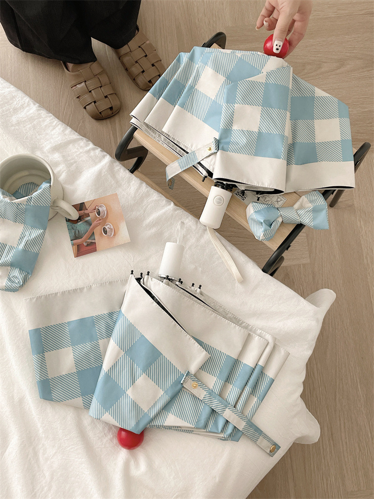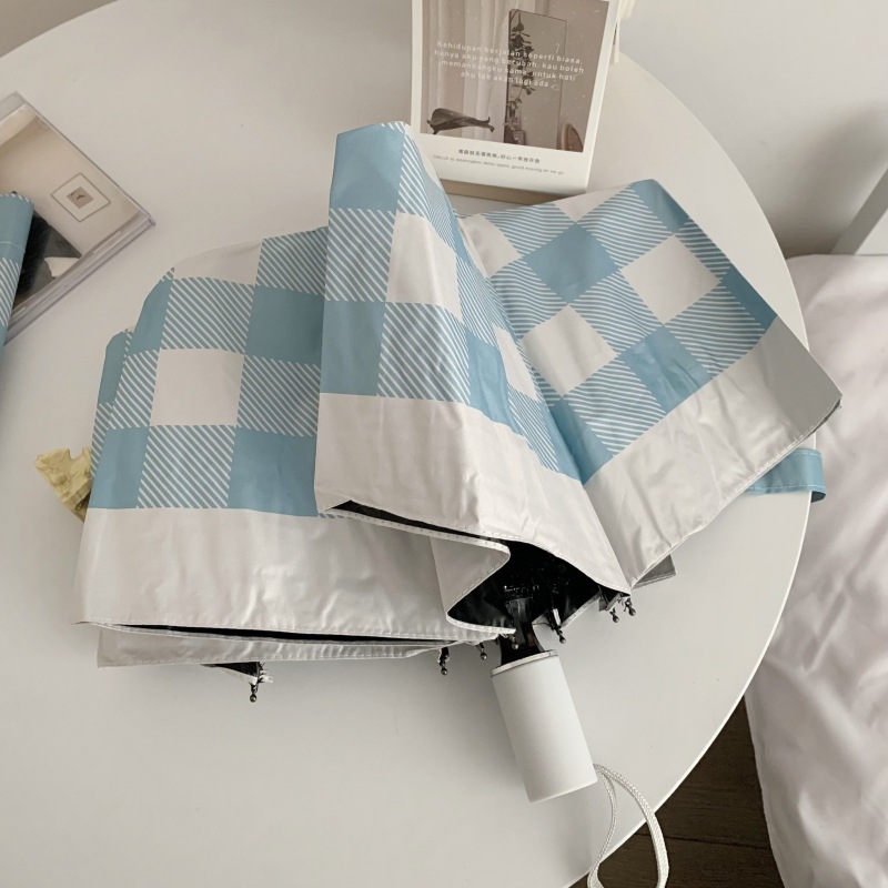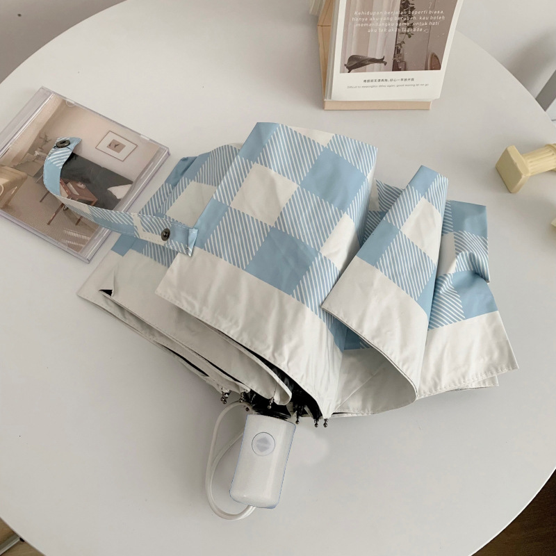 Ins 간단한 격자 무늬 태양 우산 선 스크린 자외선 보호 햇살 우산 접히는 우산 여성의 이중 사용 자동 우산