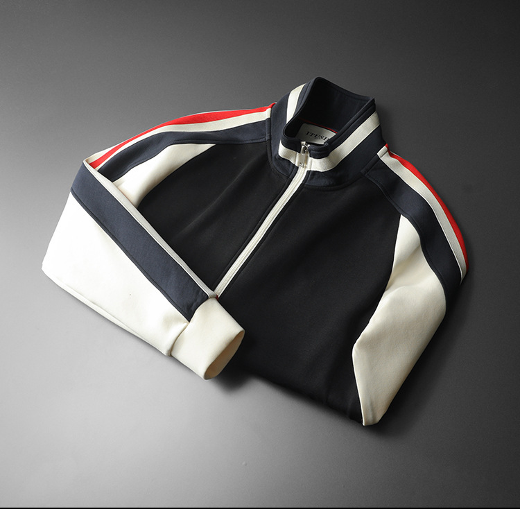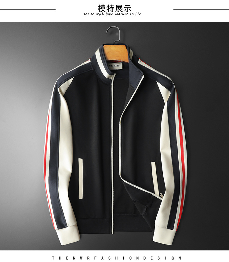 유럽 2024 새로운 가을과 겨울 남성 스탠드 칼라 재킷 카디건 플러스 사이즈 패션 스티칭 캐주얼 하이 퀄리티 스웨터