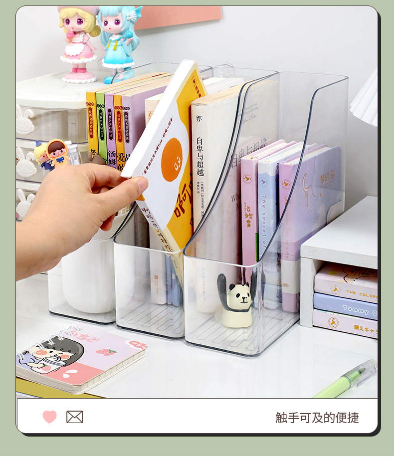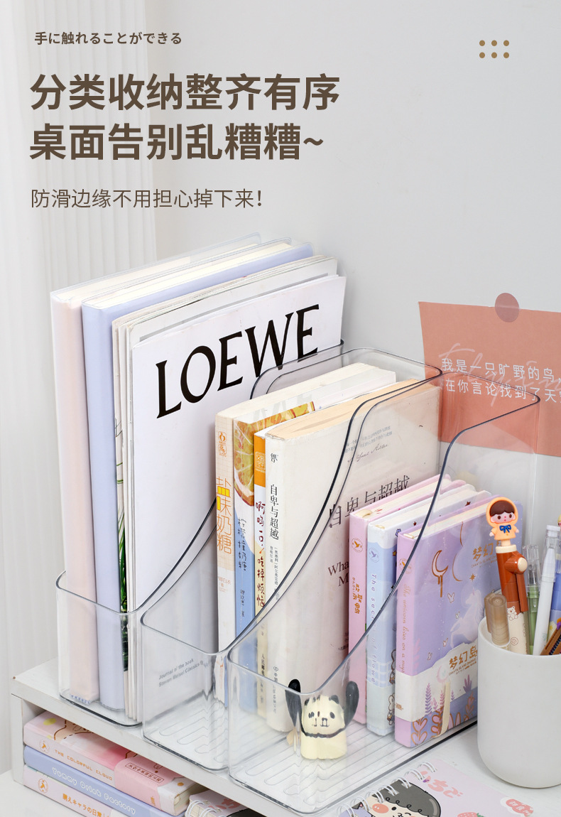 책 주최자 스토리지 랙 투명 데스크탑 북 랙 데스크 아크릴 책장 사무실 학생 파일 보관 상자