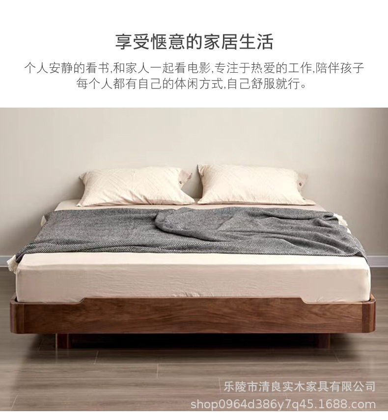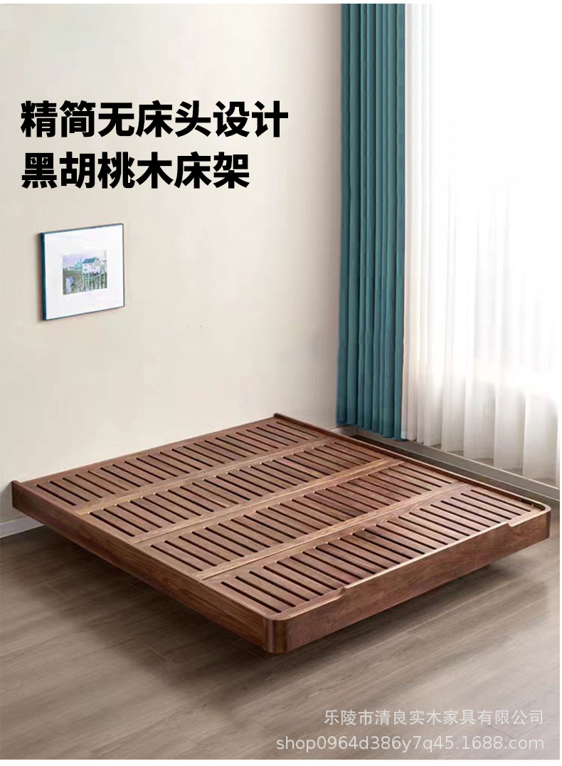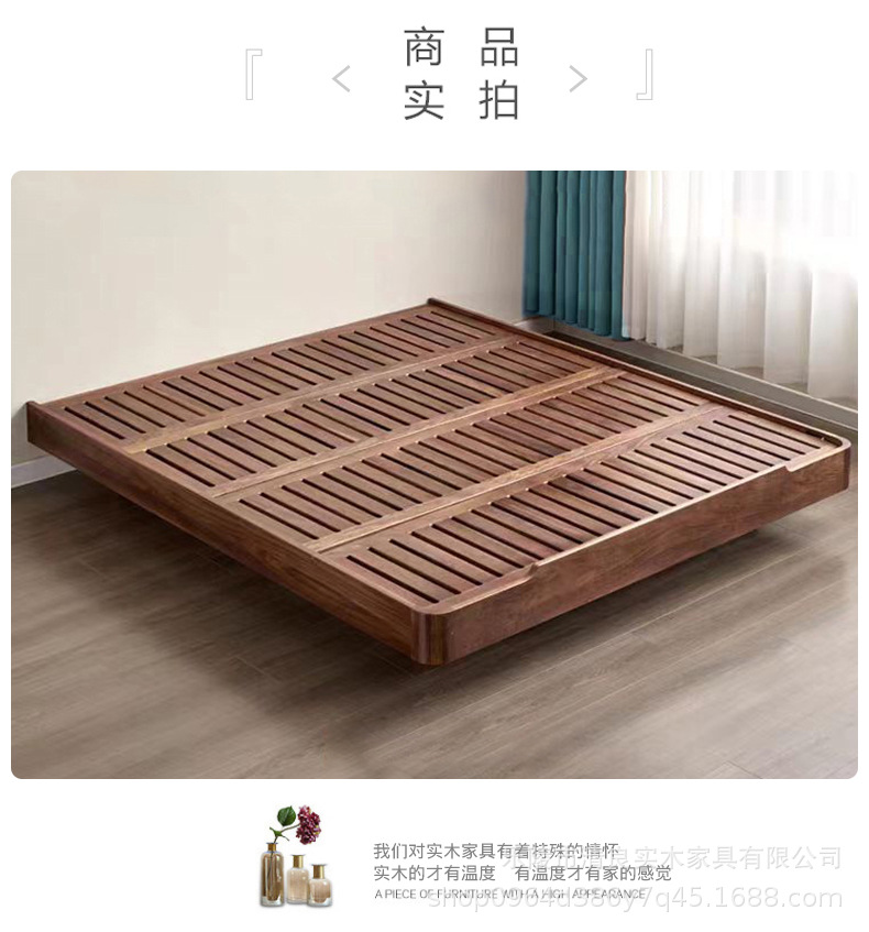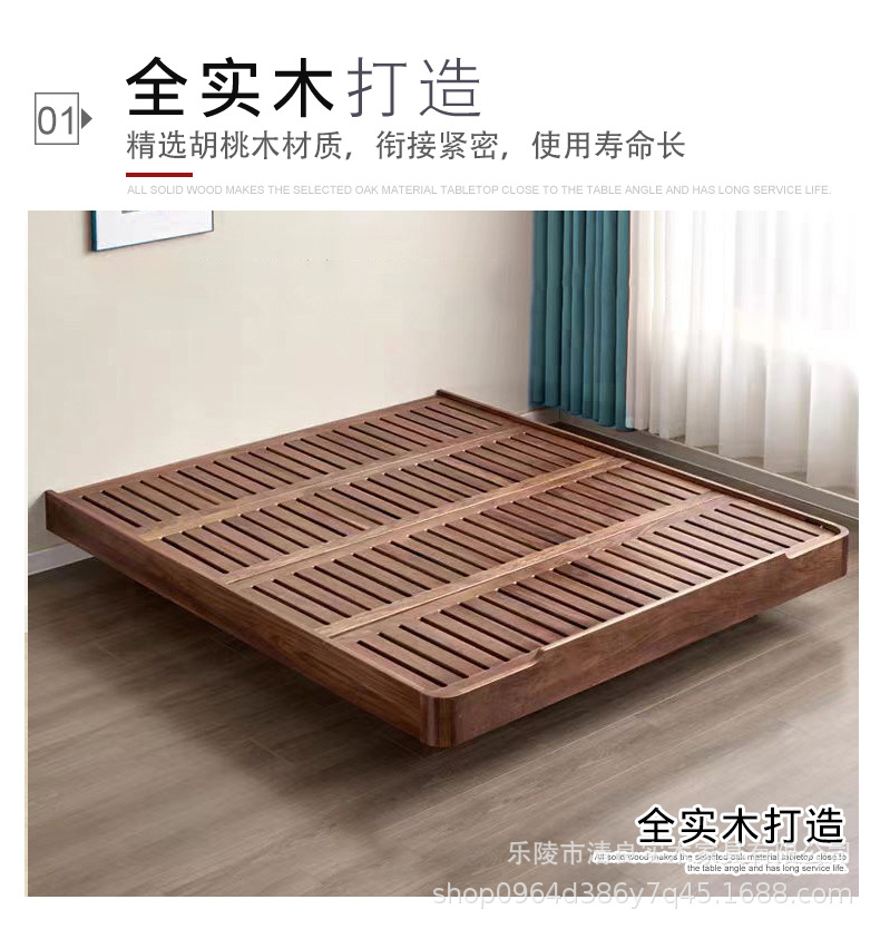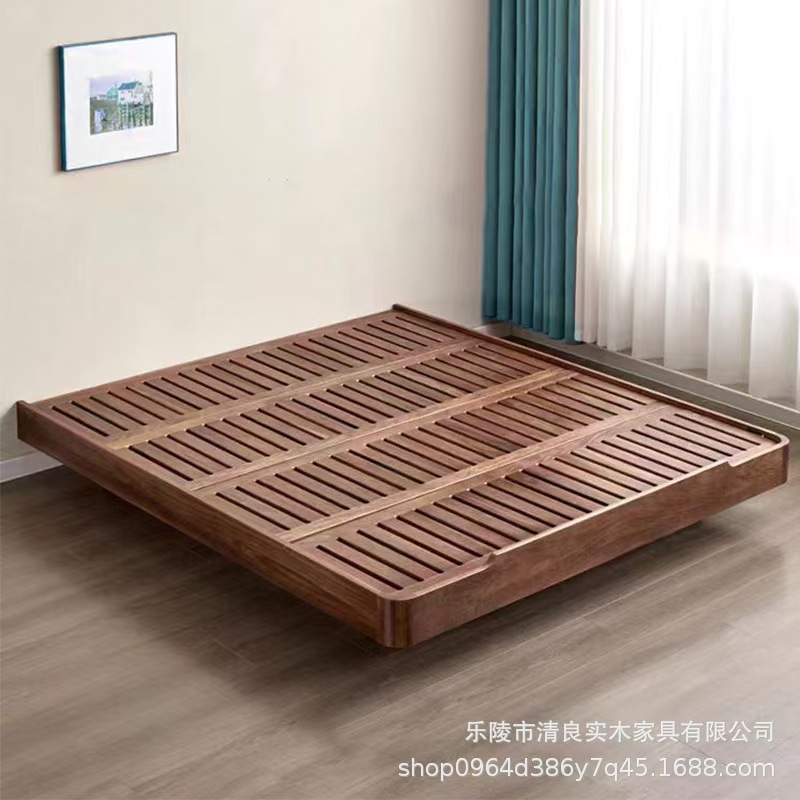 북미 블랙 월넛 헤드 사이드 서스펜션 타타미 침대 작은 아파트 침대 풀 솔리드 우드 침대 더블 랙 낮은 침대 일본 스타일스토어 가기