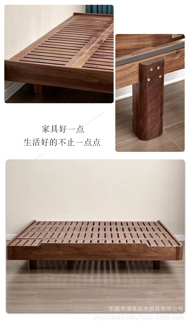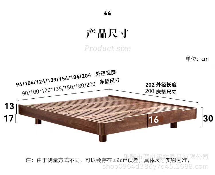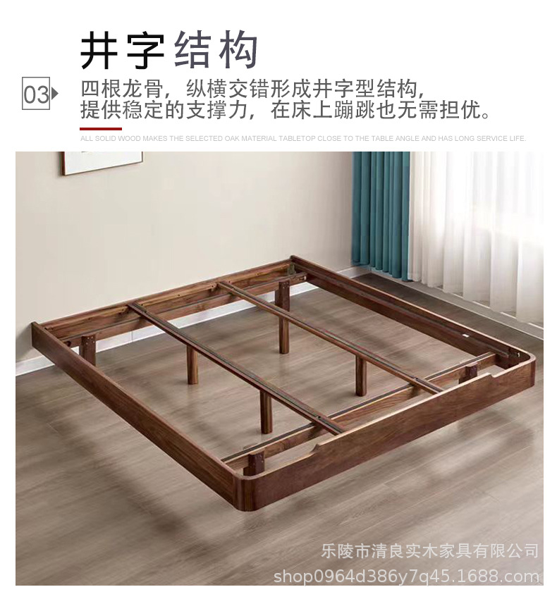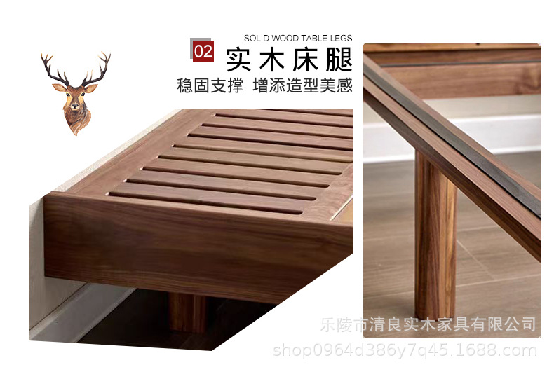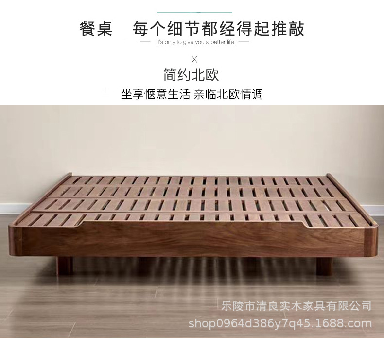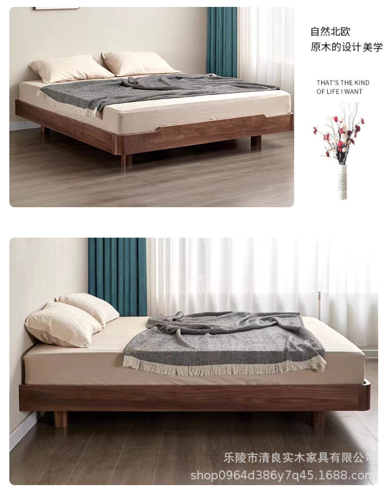북미 블랙 월넛 헤드 사이드 서스펜션 타타미 침대 작은 아파트 침대 풀 솔리드 우드 침대 더블 랙 낮은 침대 일본 스타일스토어 가기