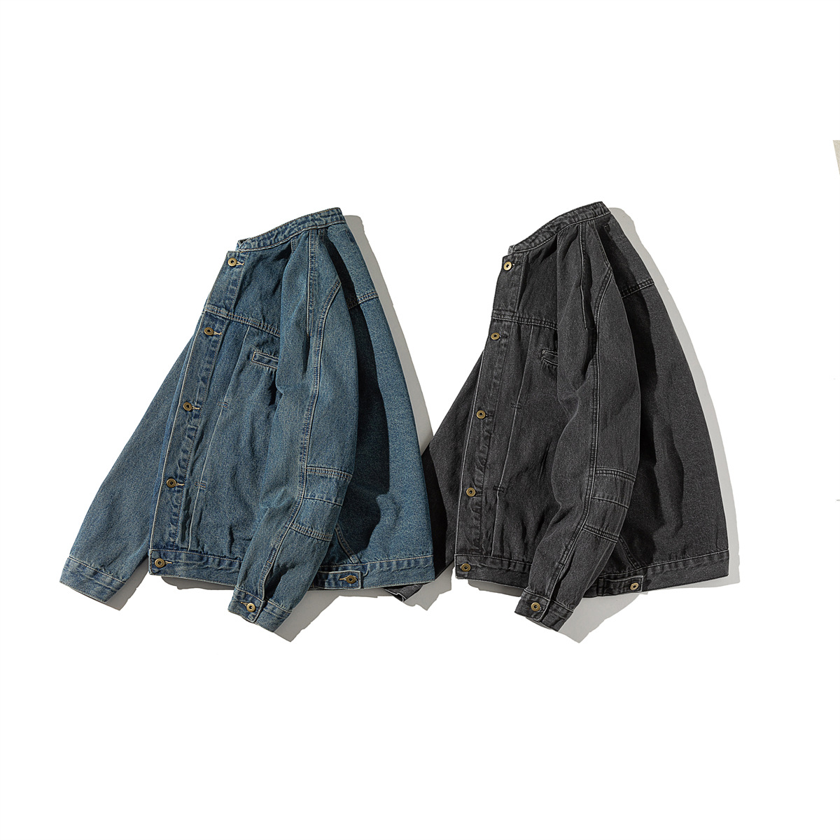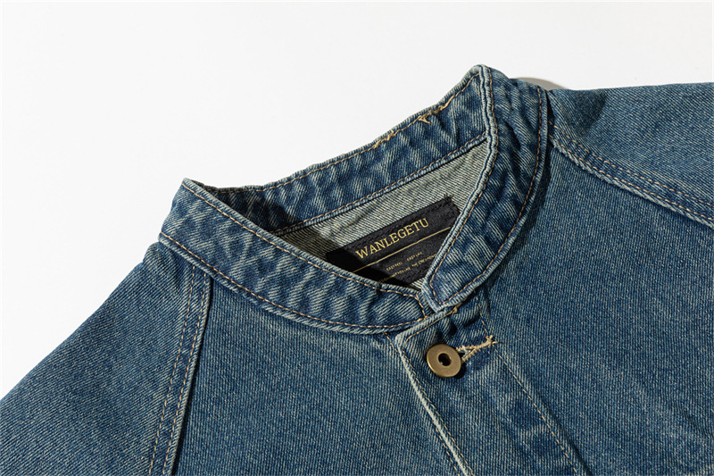 Beijie 남성 미국 패션 브랜드 2024 가을 새로운 빈티지 세탁 데님 재킷 남성 작은 칼라 재킷스토어 가기
