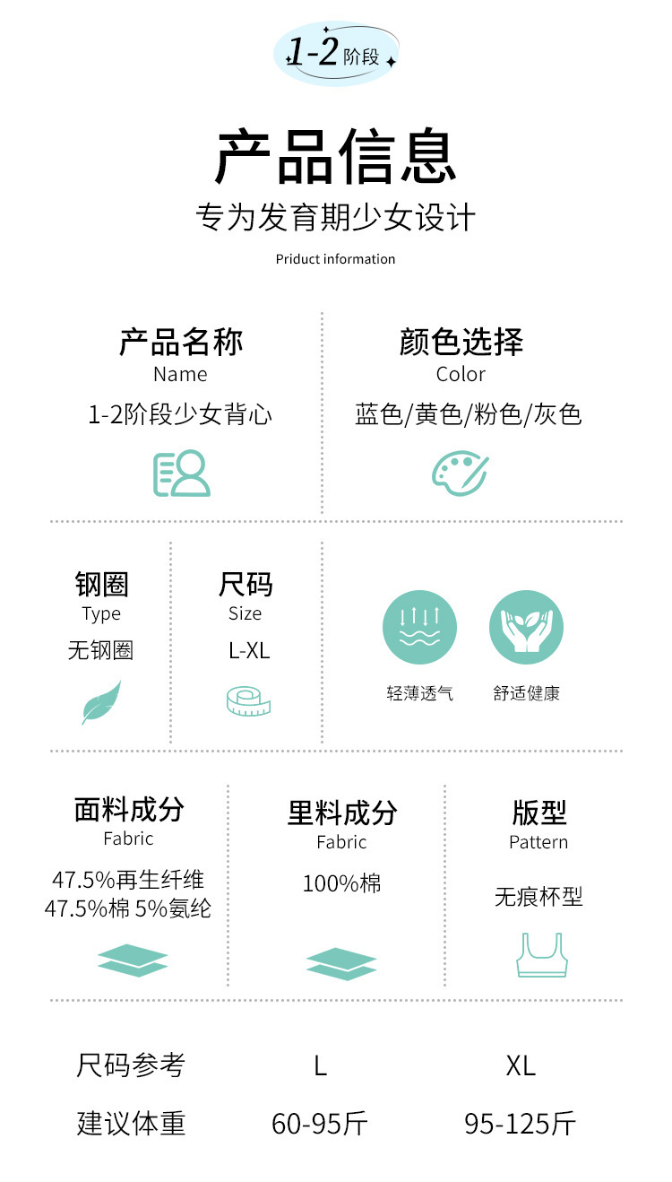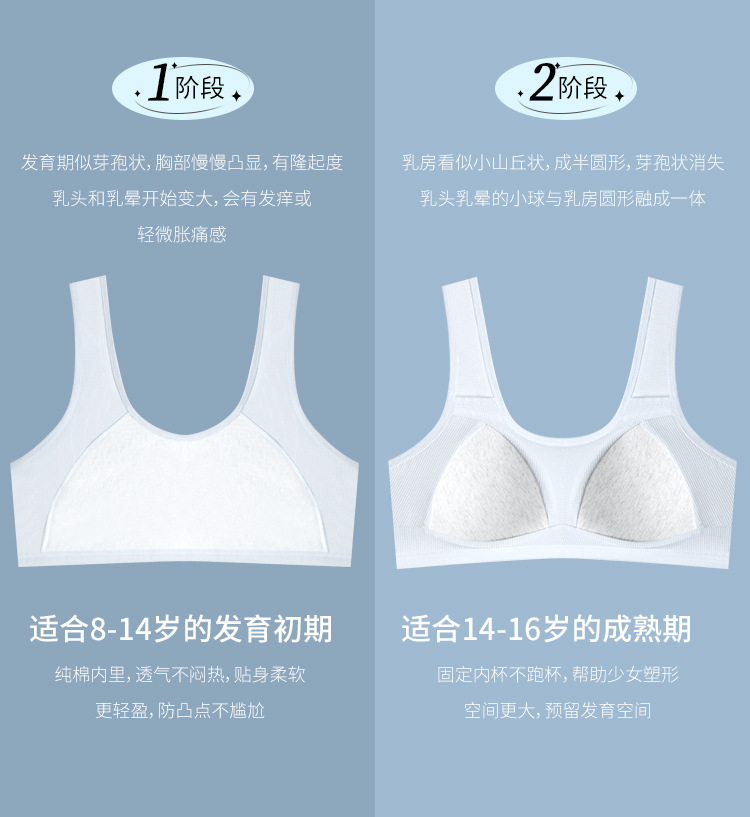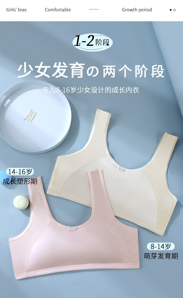 여중생 위한 여아 발달아동 여중생 속옷 브래지어 고교생 위한 고정컵 여학생 조끼