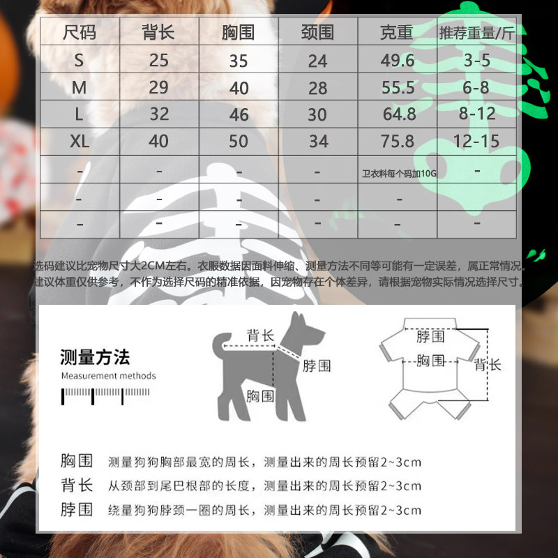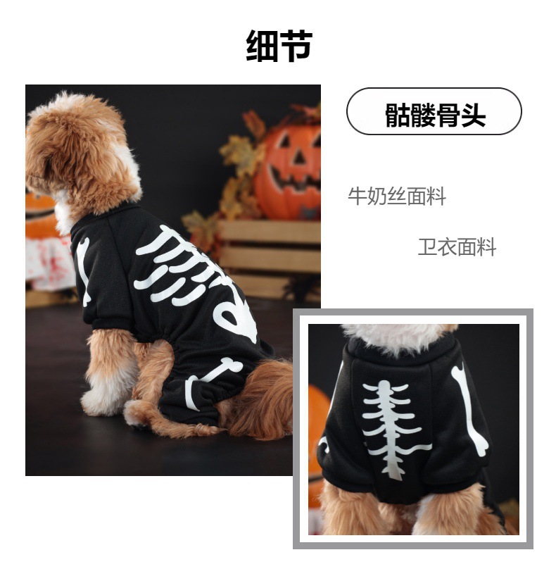 2024 애완 동물 옷 개 할로윈 빛나는 두개골 뼈 네 다리 옷 국경 공장 직접 배포스토어 가기