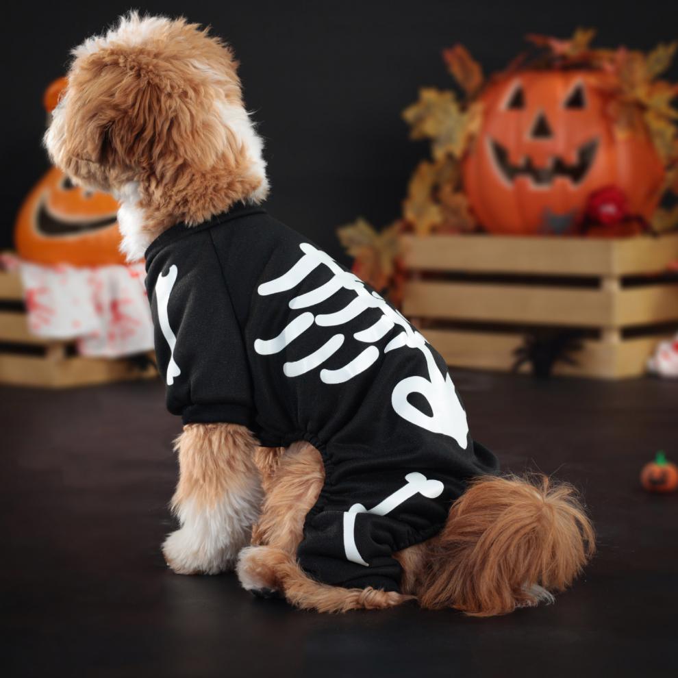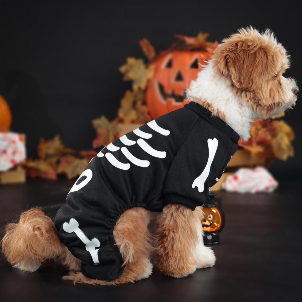 2024 애완 동물 옷 개 할로윈 빛나는 두개골 뼈 네 다리 옷 국경 공장 직접 배포