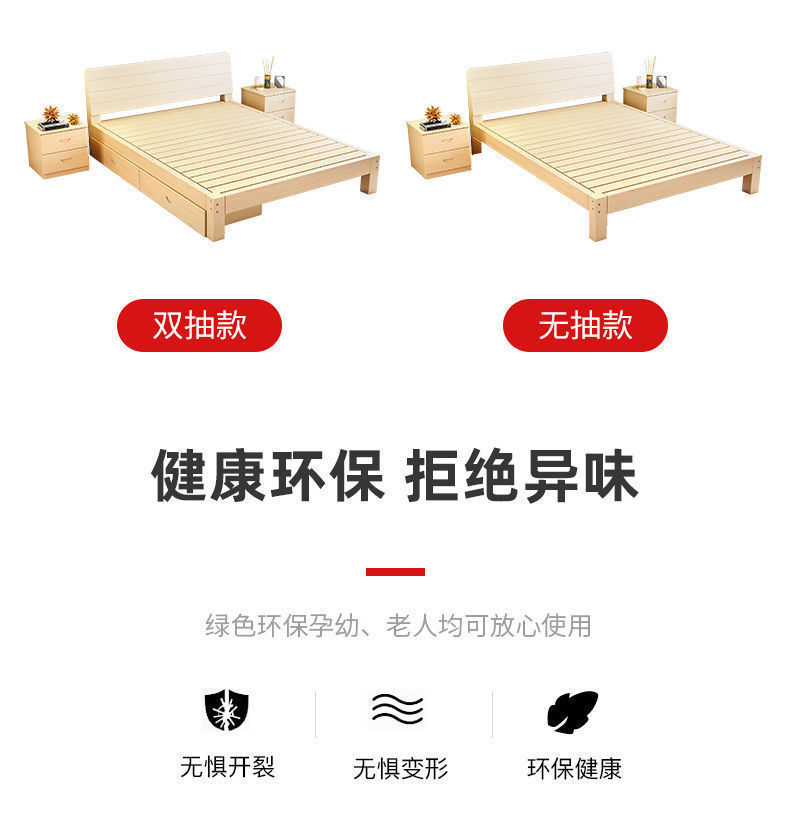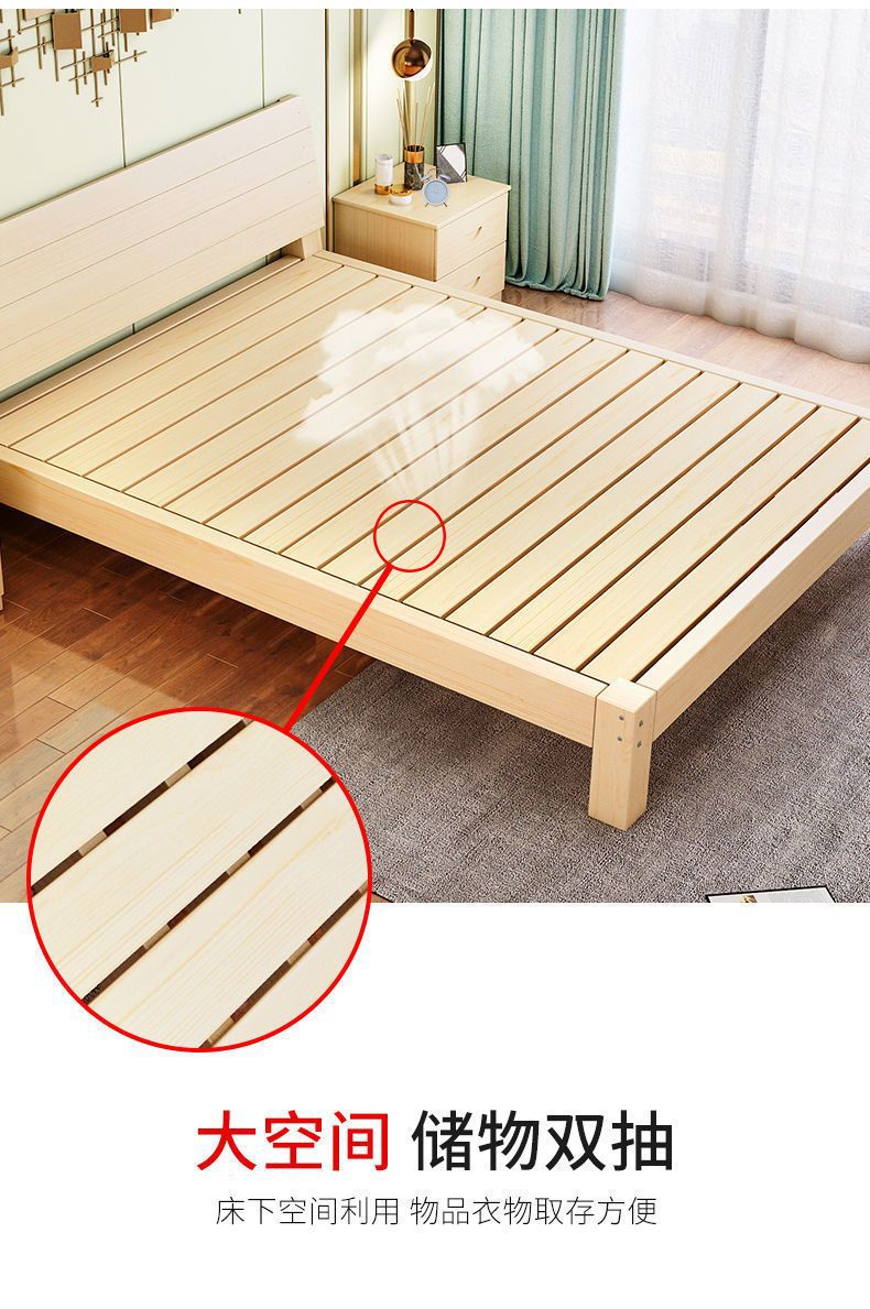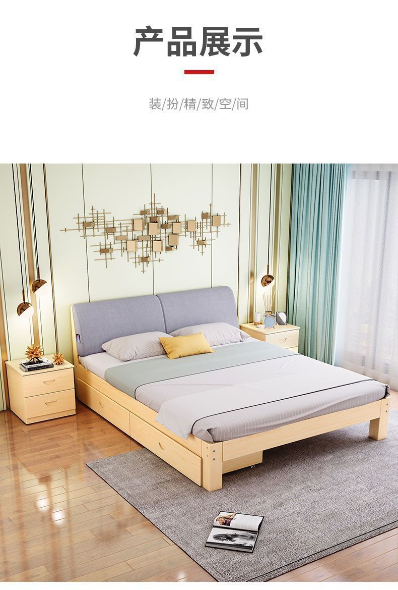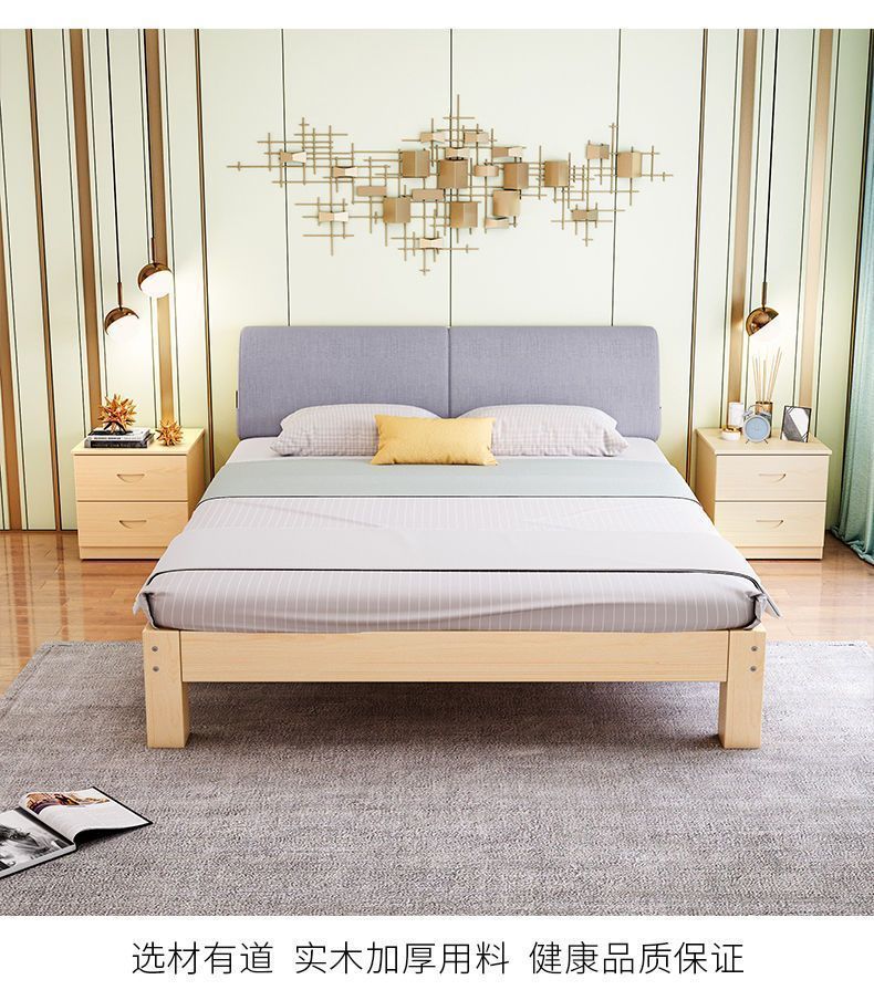 단단한 나무 침대 현대 간단한 2 m 더블 1.8 m 큰 침대 싱글 침대 1.5 m 가정용 나무 침대 1m 침대 1.2 m스토어 가기