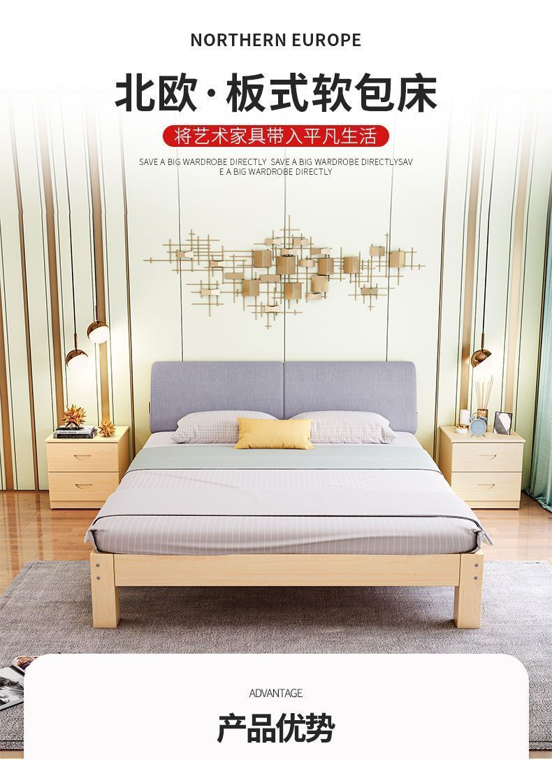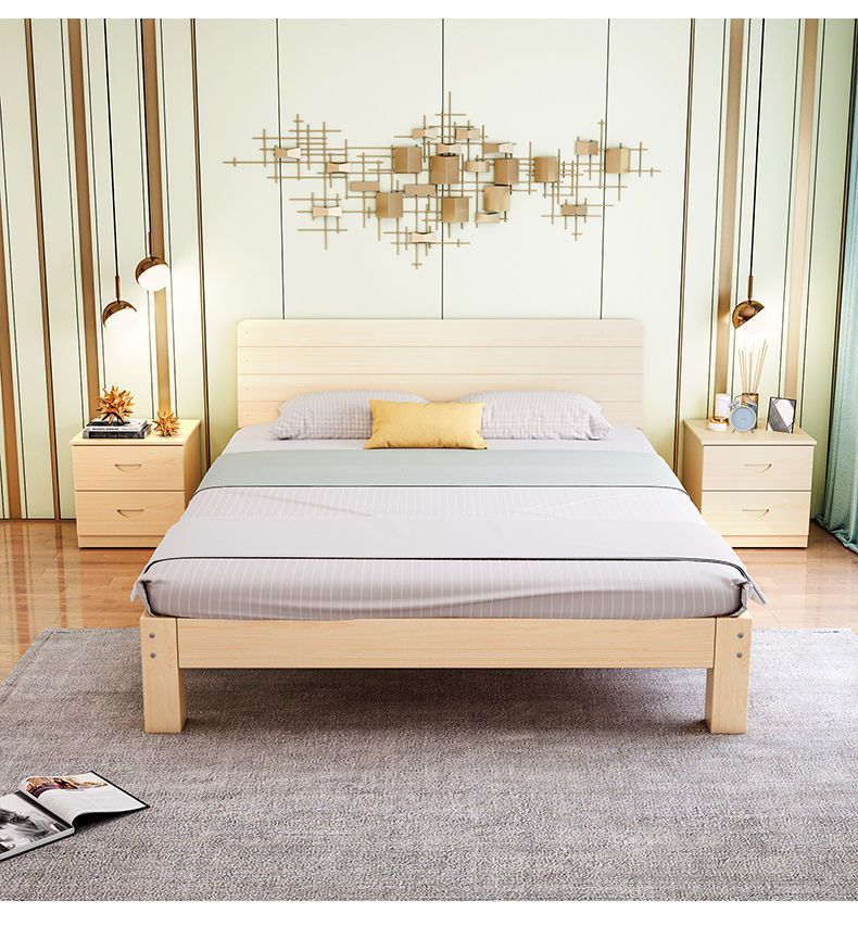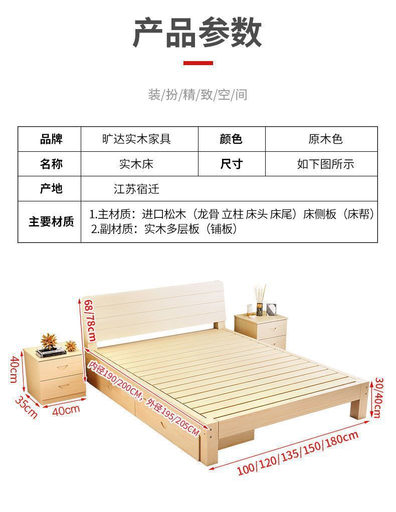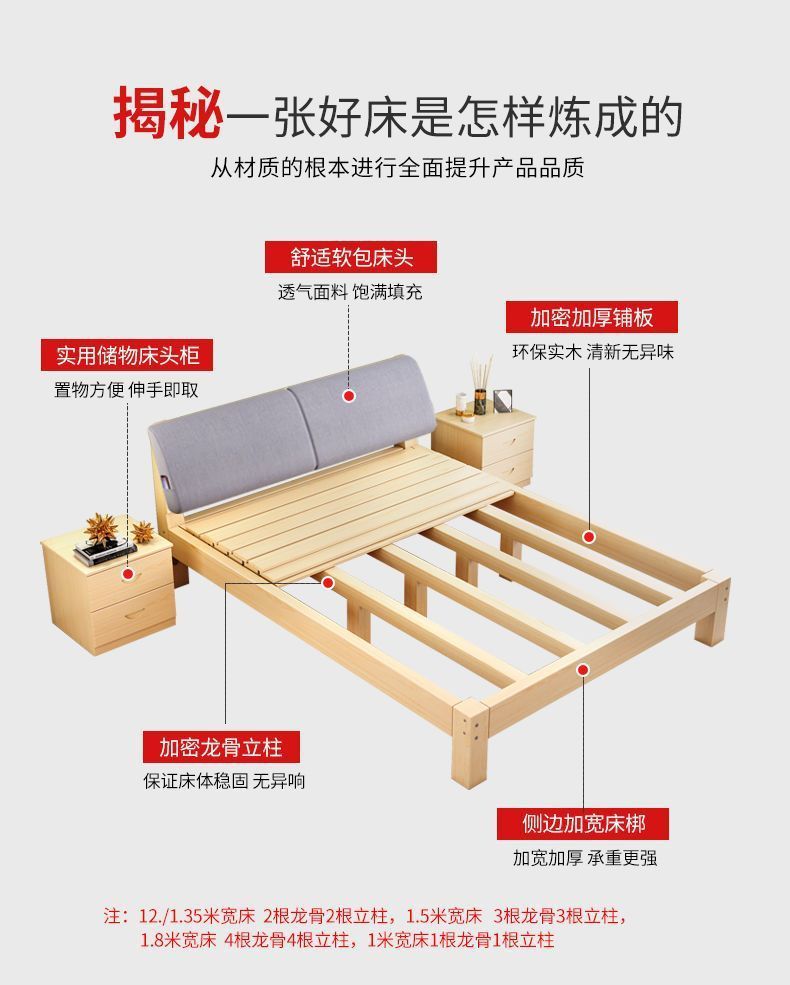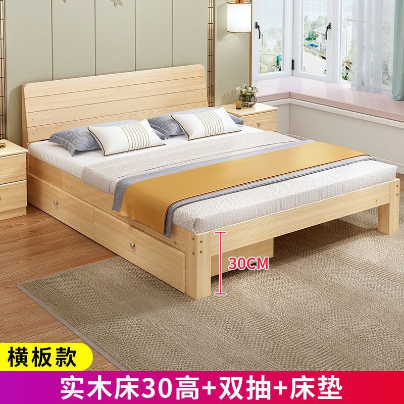 단단한 나무 침대 현대 간단한 2 m 더블 1.8 m 큰 침대 싱글 침대 1.5 m 가정용 나무 침대 1m 침대 1.2 m스토어 가기