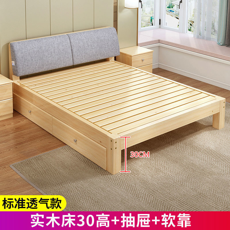 • 원목 침대 높이 30cm + 서랍 + 푹신한 등받이
