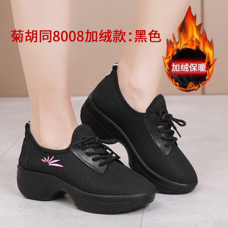 주후통 기모 코튼 슈즈 스퀘어 댄스 슈즈 새로운 통기성 피트니스 체조 댄스 슈즈 포시즌 미들 힐 소프트 솔스토어 가기