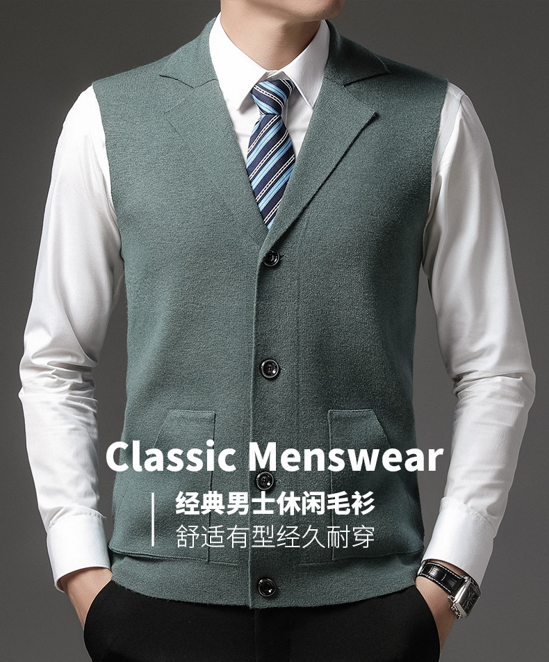가을과 겨울 양모 조끼 남자 민소매 니트 싱글 브레스트 카디건 스웨터 골든 벨벳 조끼 남자 세트 칼라 웨이스트 코트스토어 가기