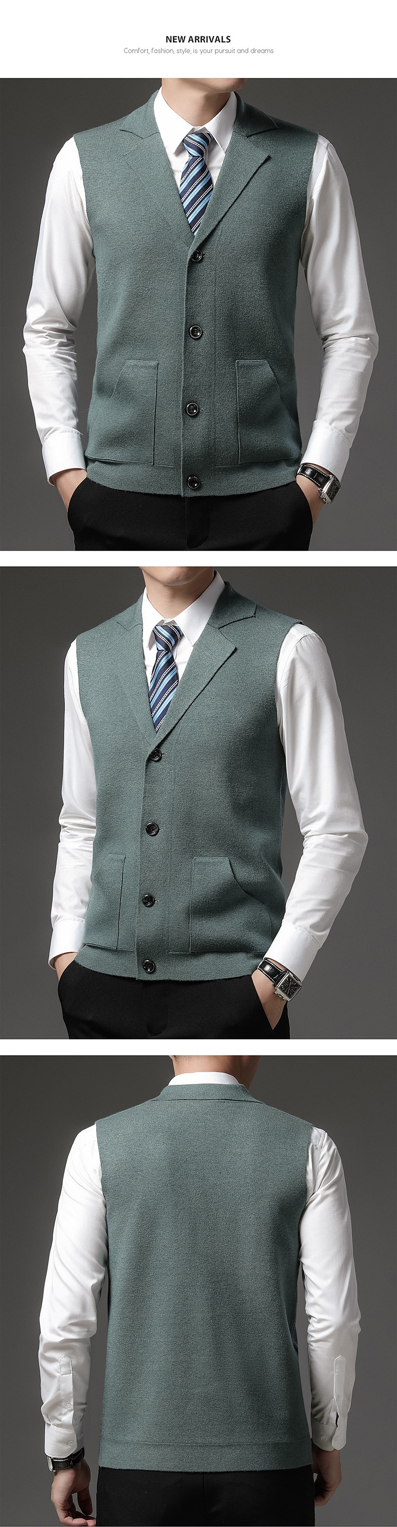 가을과 겨울 양모 조끼 남자 민소매 니트 싱글 브레스트 카디건 스웨터 골든 벨벳 조끼 남자 세트 칼라 웨이스트 코트
