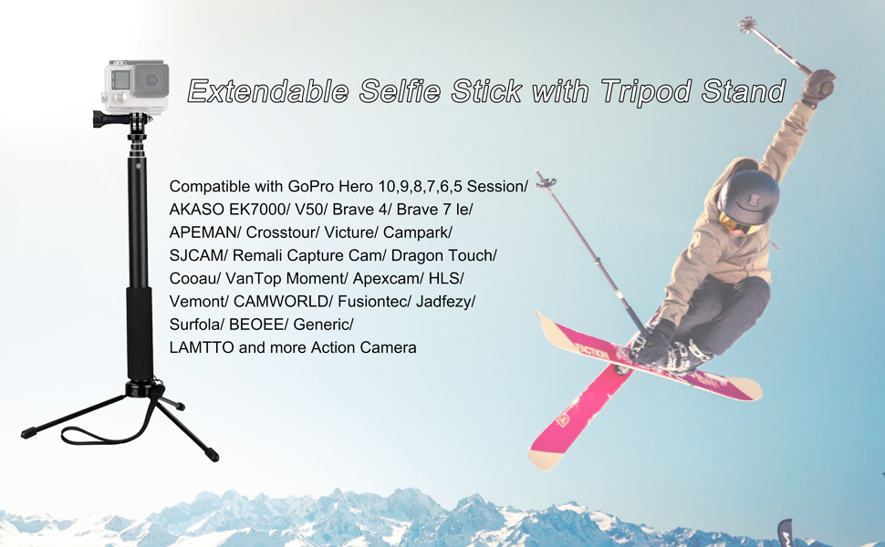 휴대 전화 블루투스 셀카 스틱 스포츠 카메라 gopro 셀카 스틱 야외 스포츠 카메라 브래킷 영웅 8/7/6/5