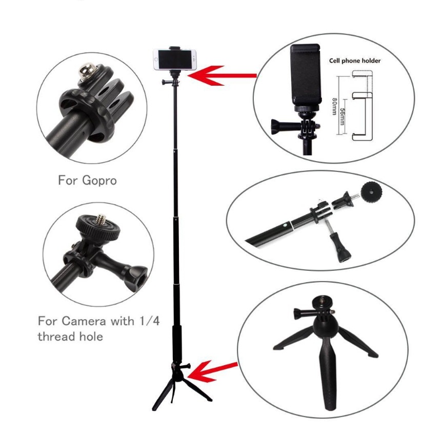 휴대 전화 블루투스 셀카 스틱 스포츠 카메라 gopro 셀카 스틱 야외 스포츠 카메라 브래킷 영웅 8/7/6/5스토어 가기