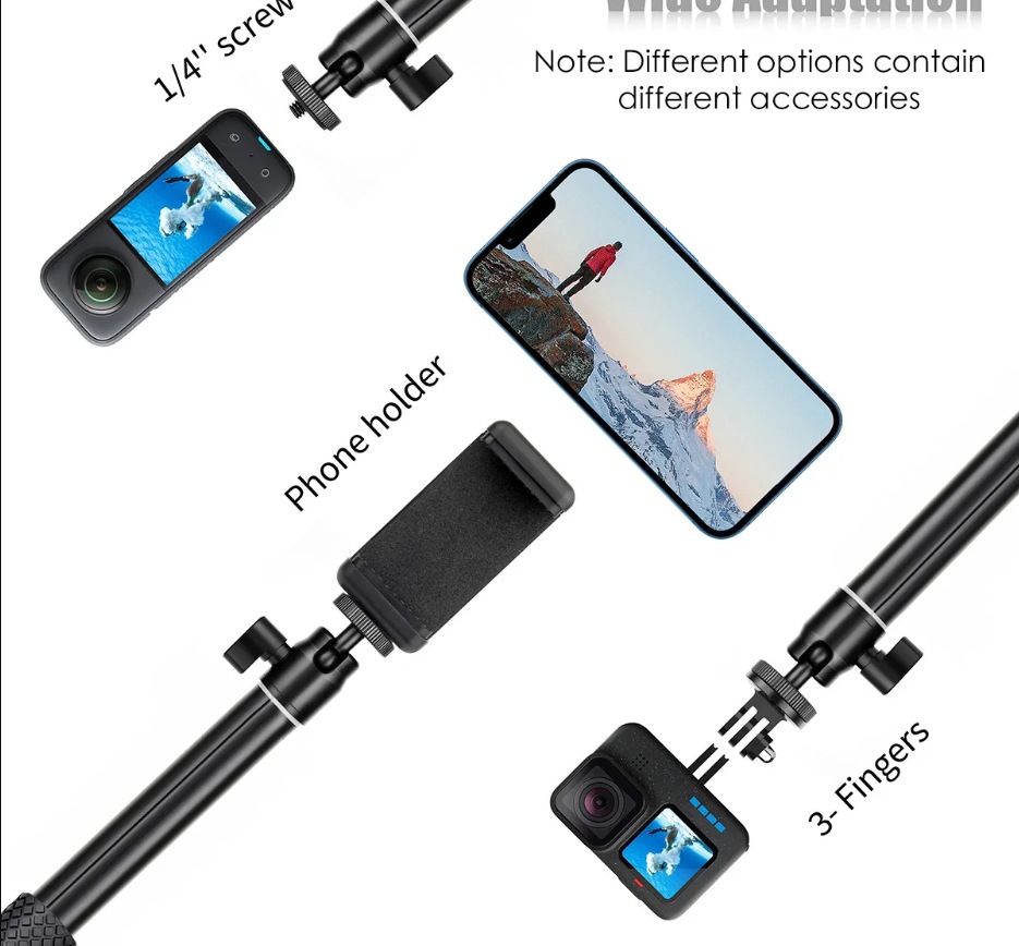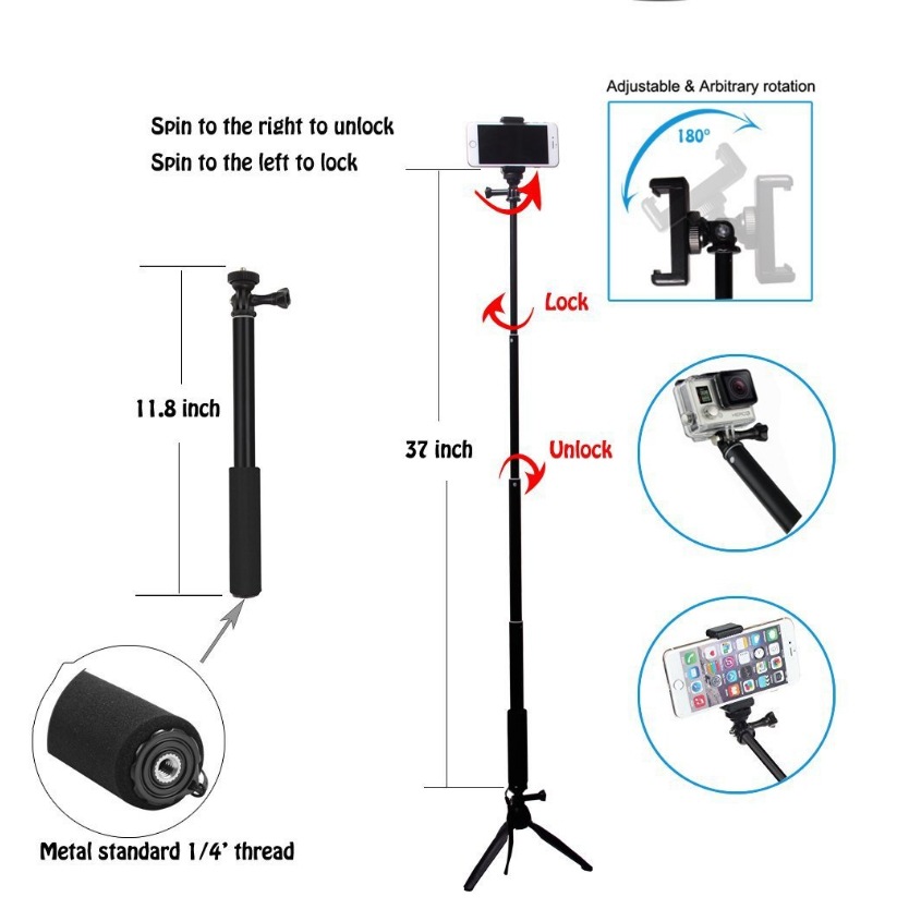 • 셀카봉 + 블루투스 + 휴대폰 클립 + 베이스 삼각대
