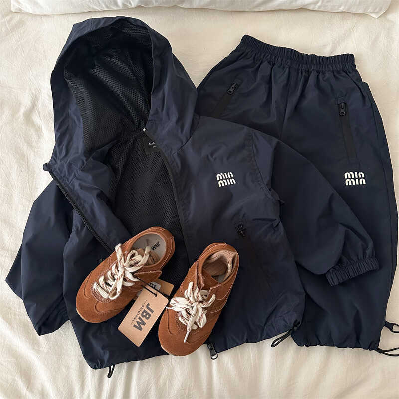 면 2급 아동용 재킷 2026 가을 남아용 후드 지퍼 투피스 세트 아기 바지 및 방풍 재킷 세트 얇은 스타일