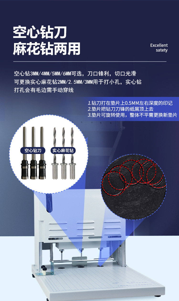 • 기계에는 3MM 중공 드릴 비트(두께 25mm)가 함께 제공됩니다.