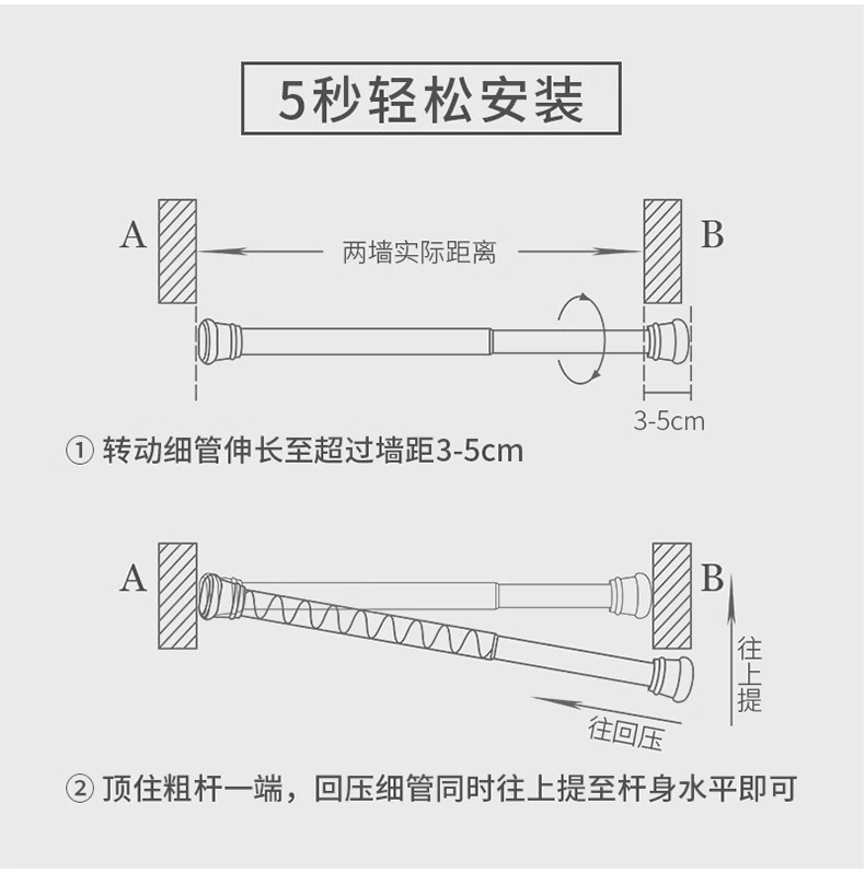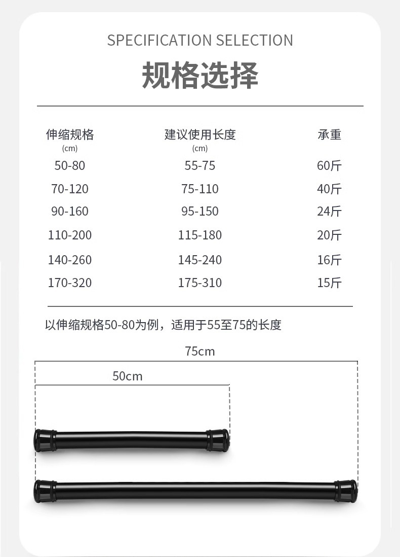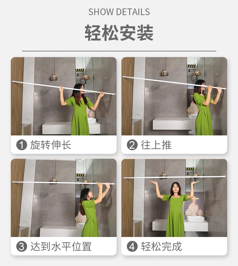 망원경로드 펀치 프리 옷 건조 막대 욕실 욕실 커튼 막대 샤워 커튼 막대 발코니 침실 막대 옷장 괄호스토어 가기