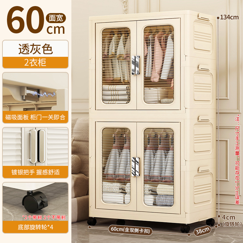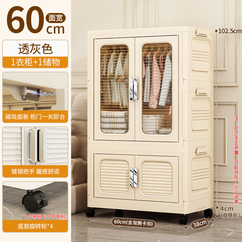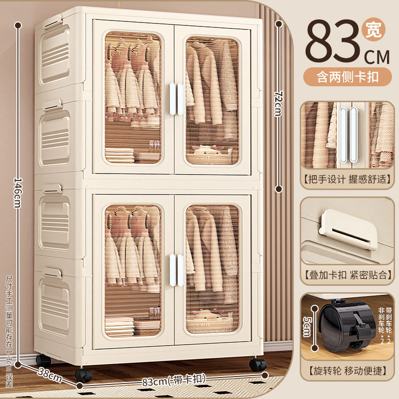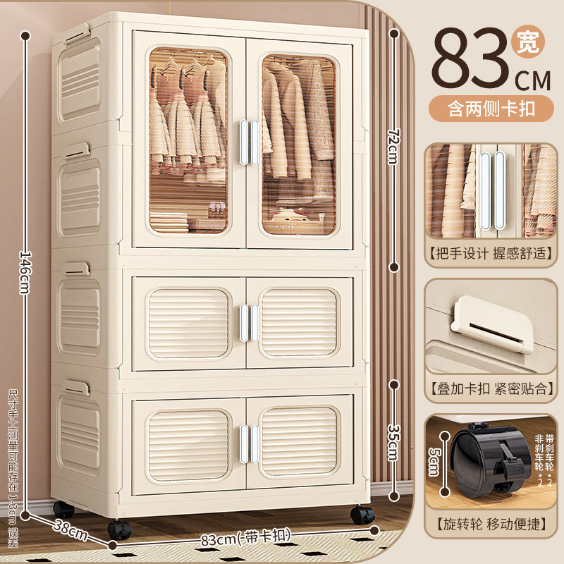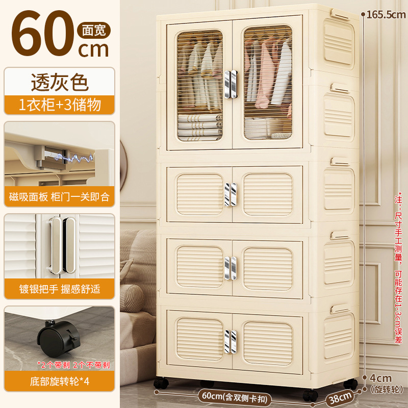 • 60면 와이드 크림 접이식 옷장 4단(의장 1개 + 스택 캐비닛 70% off 개) [회전바퀴 포함]