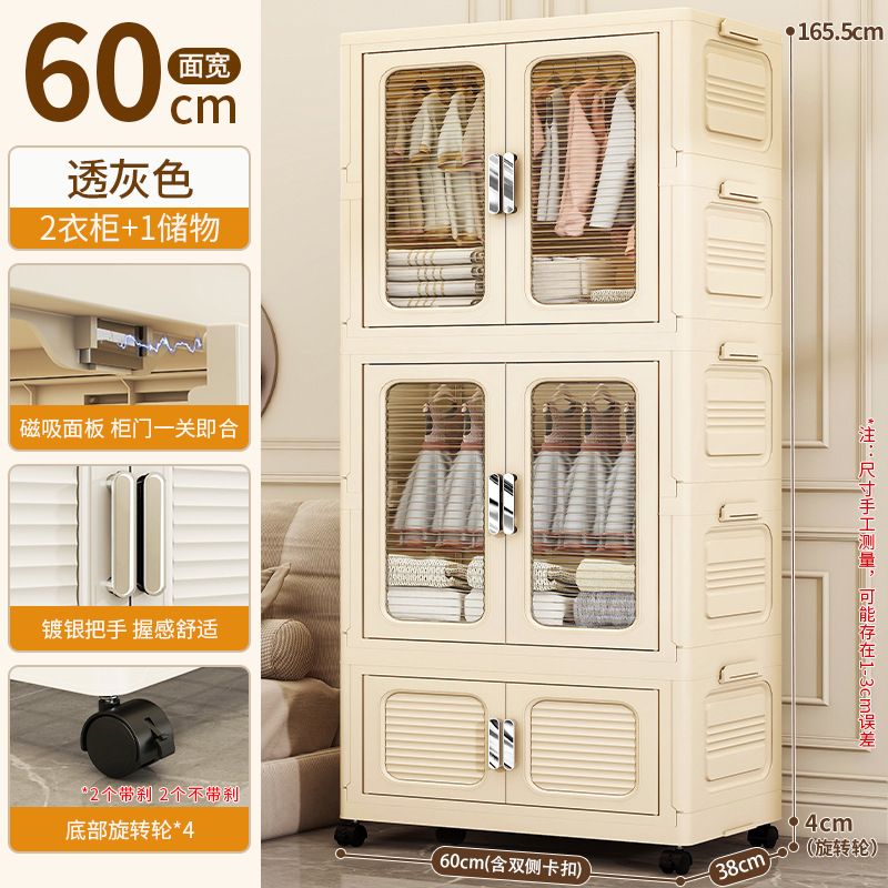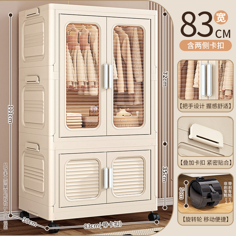 • 60면 와이드 크림 접이식 옷장 3단(의장 1개 + 스택 캐비닛 80% off 개) [회전바퀴 포함]