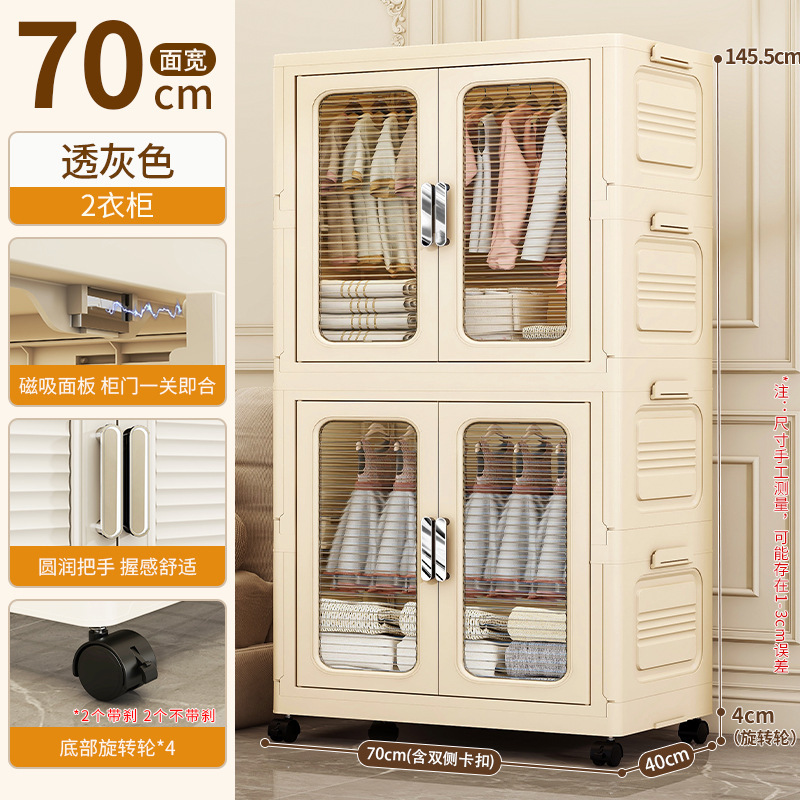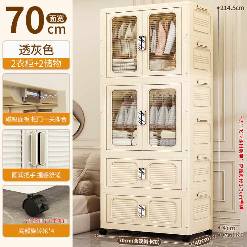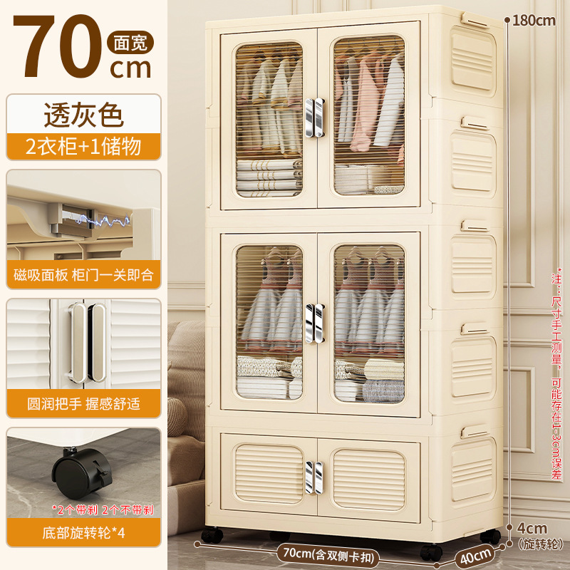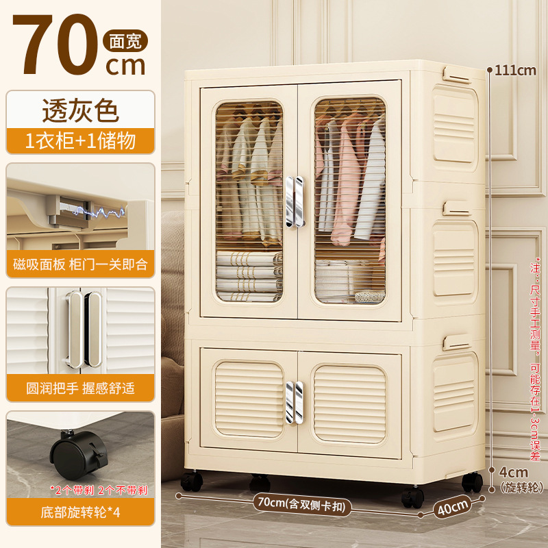 • 70cm 폭 크림색 접이식 옷장 4단 (옷장 1개 + 70% off 접이식 수납장) [회전 바퀴 포함]