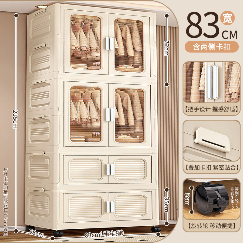 • 83cm 폭 크림색 접이식 옷장 4단 (옷장 1개 + 70% off 접이식 수납장) [바퀴 포함]