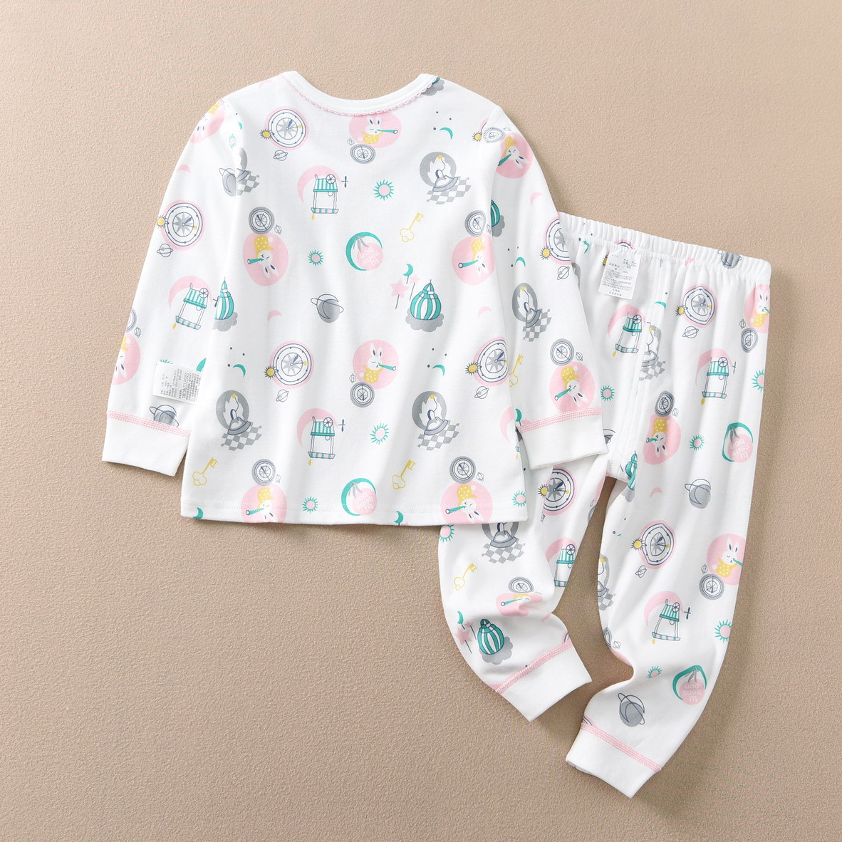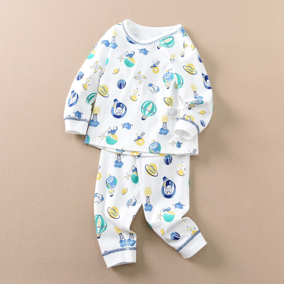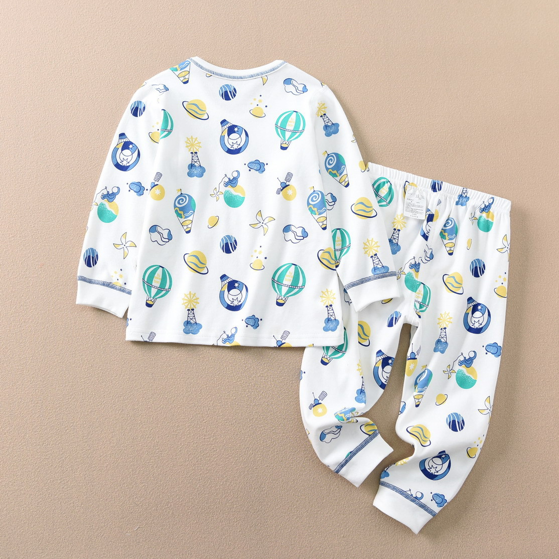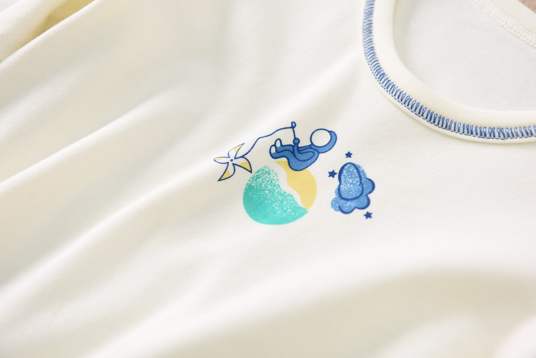 磨毛面料 环保印染 水印印花 A类执行标准,透气性好中等厚度春秋冬打底太合适了 衣服本身手感很软哦 采用 袖口脚口都做了的设计 不上窜 不漏风,百百棉