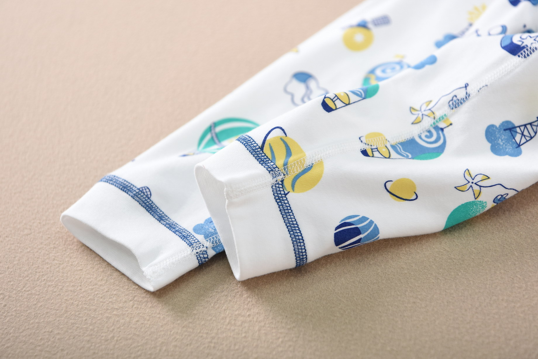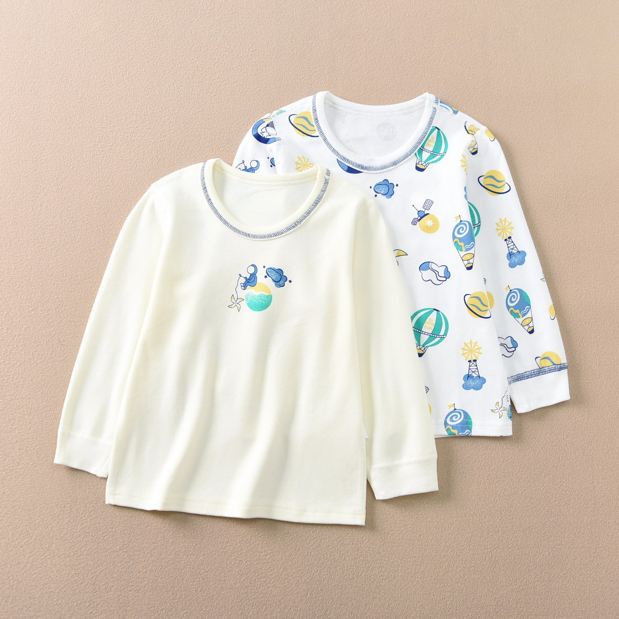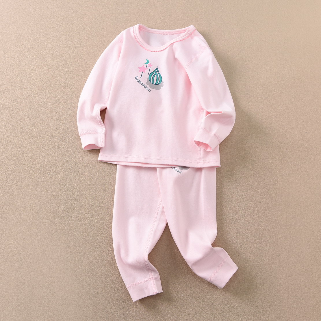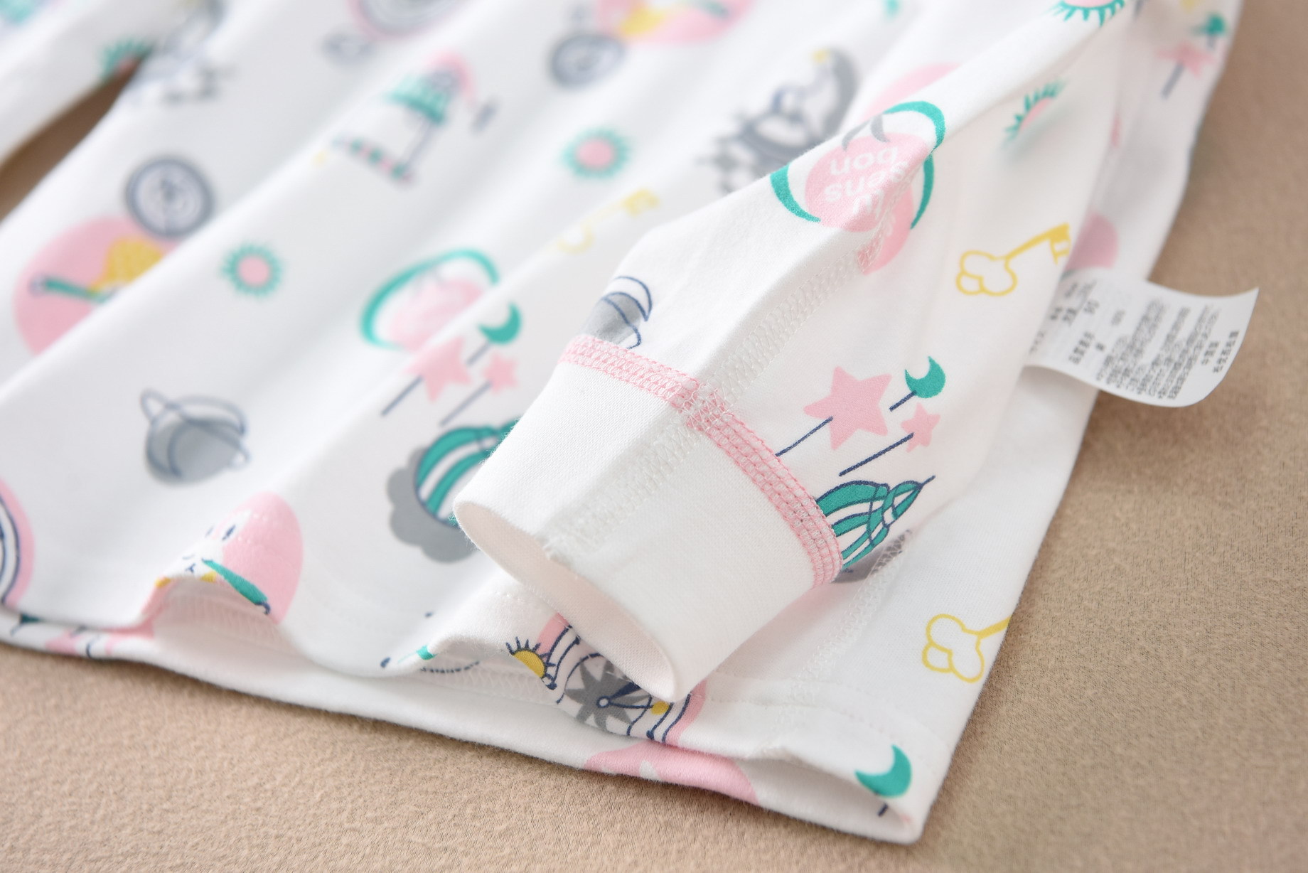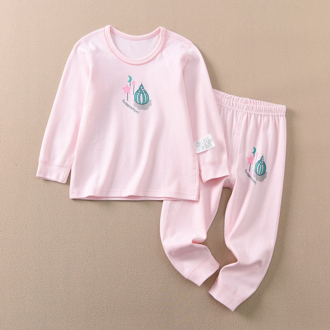 磨毛面料 环保印染 水印印花 A类执行标准,透气性好中等厚度春秋冬打底太合适了 衣服本身手感很软哦 采用 袖口脚口都做了的设计 不上窜 不漏风,百百棉