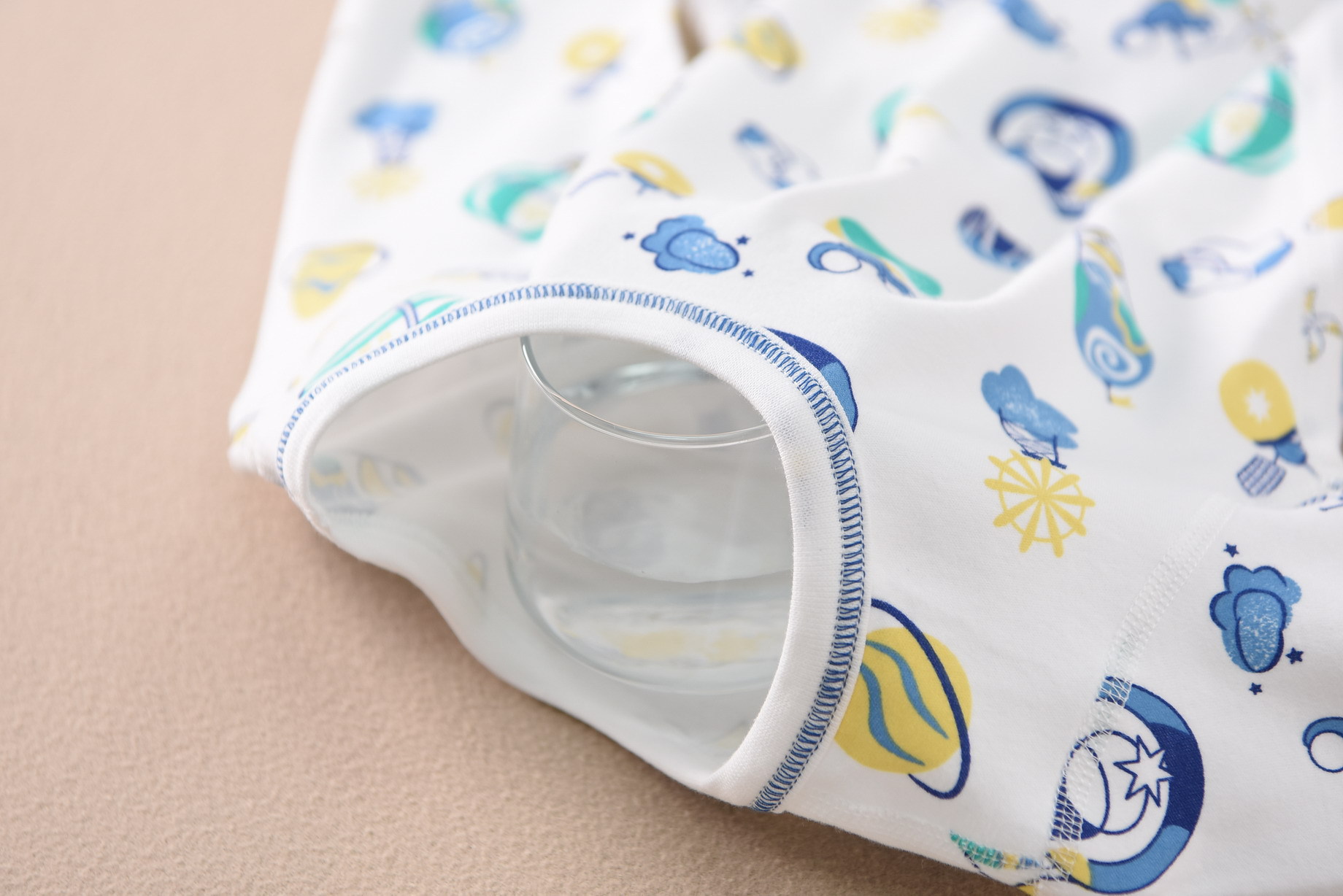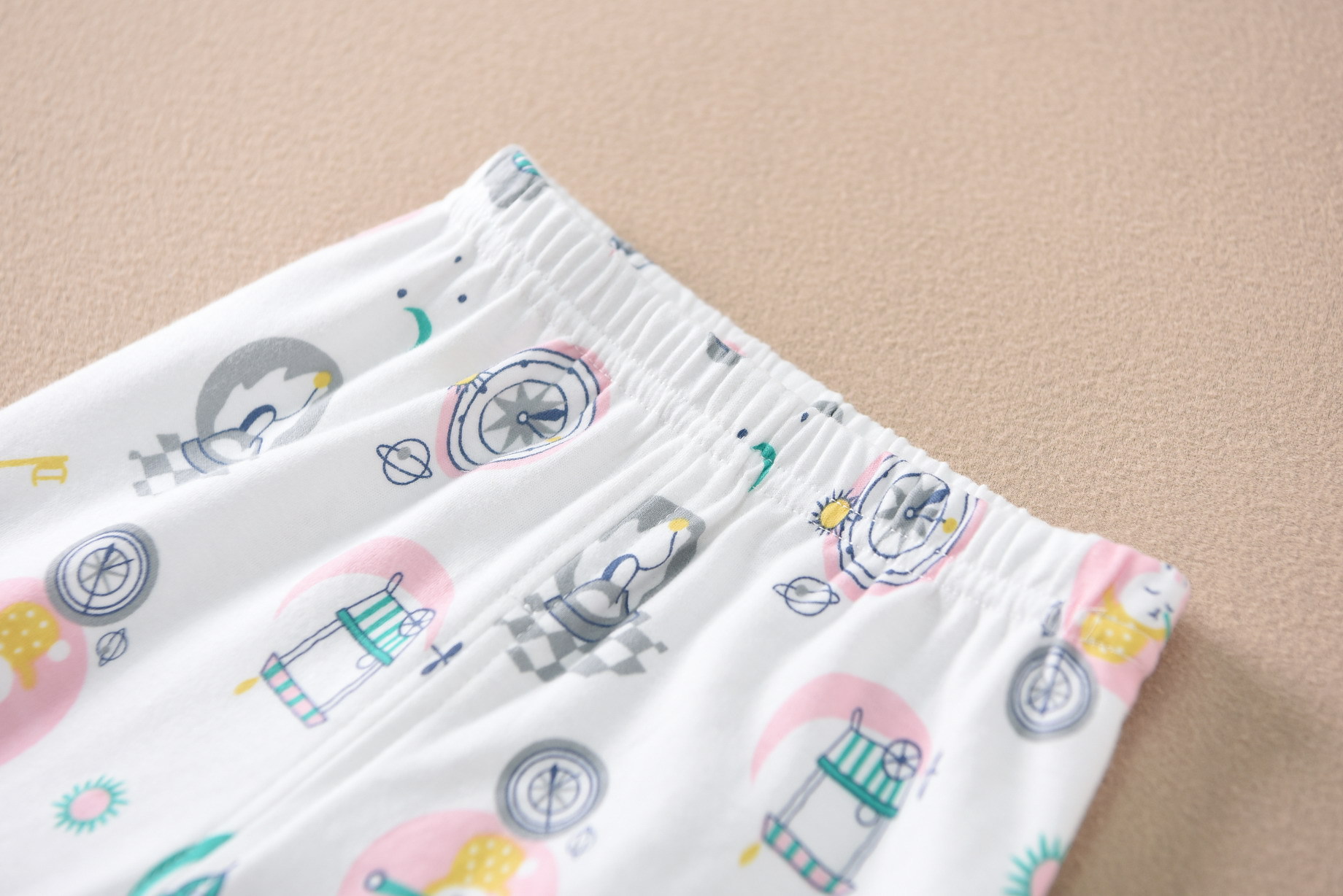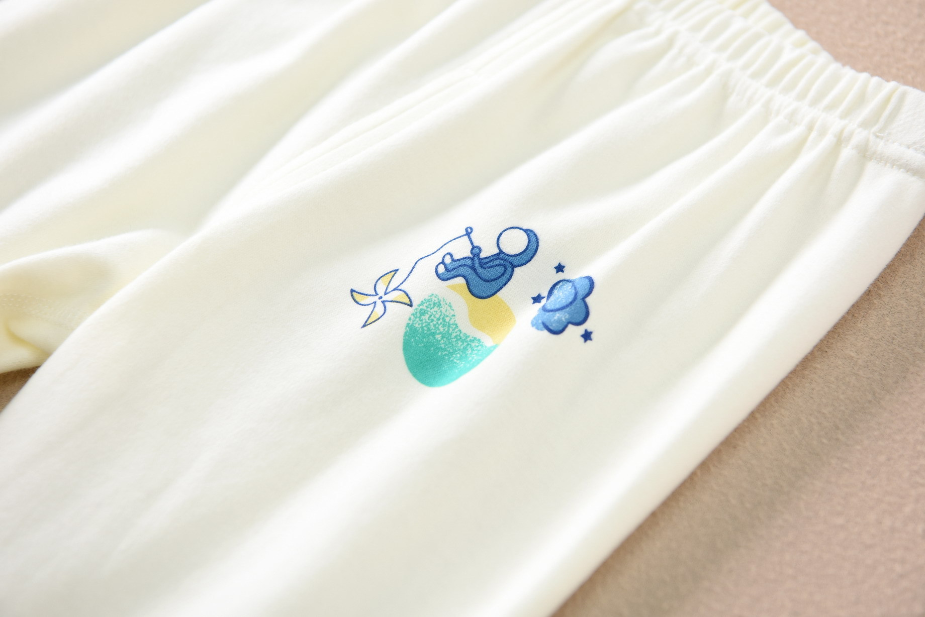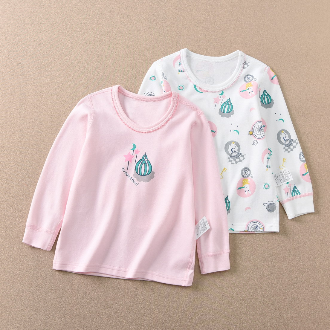 磨毛面料 环保印染 水印印花 A类执行标准,透气性好中等厚度春秋冬打底太合适了 衣服本身手感很软哦 采用 袖口脚口都做了的设计 不上窜 不漏风,百百棉