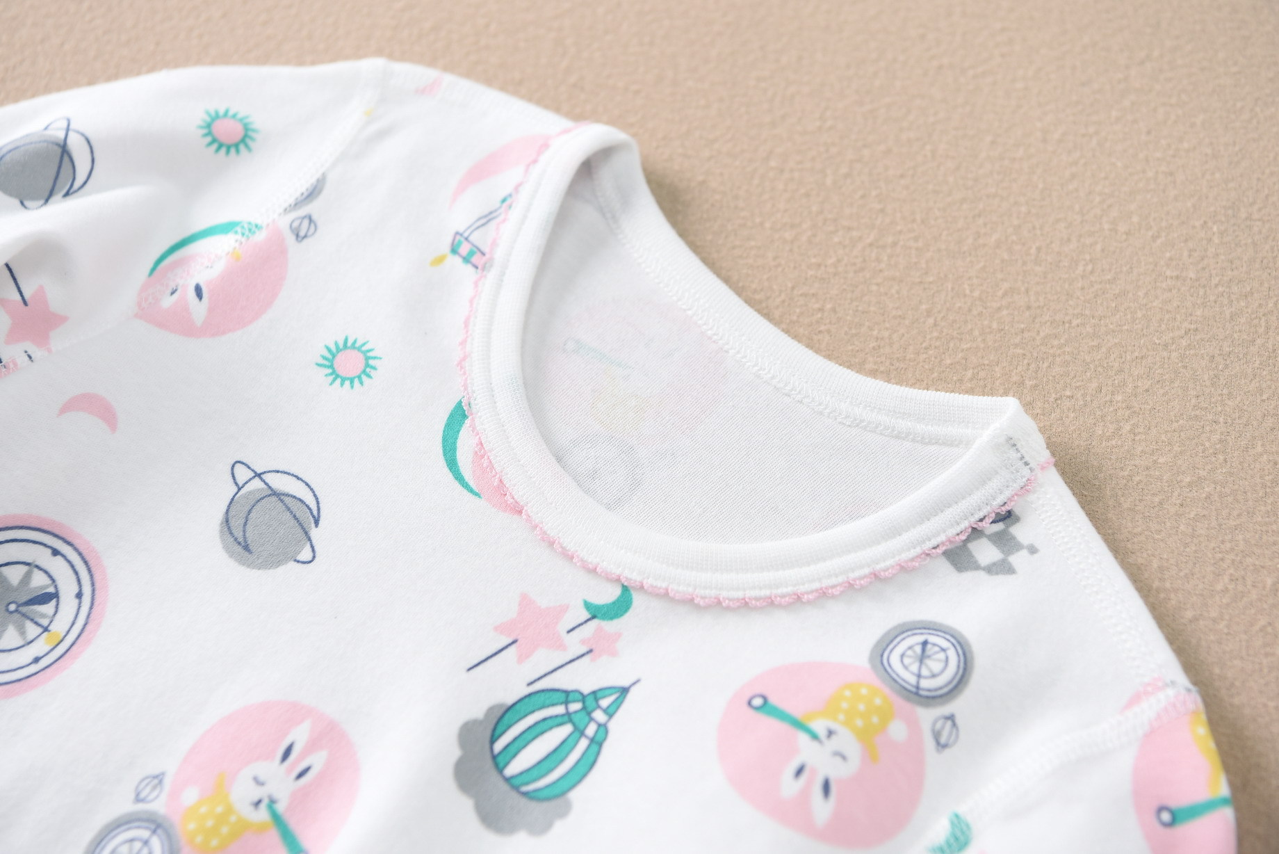 女孩领口袖口脚口都是包边哦