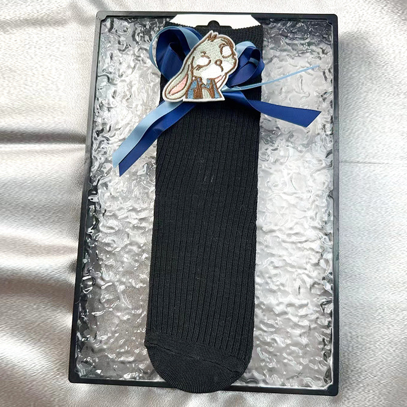 주디 토끼 경찰관 COS 만화 자수 블랙 중간 길이 스타킹 소녀 봄 여름 가을 겨울 시즌 스타킹 트렌디
