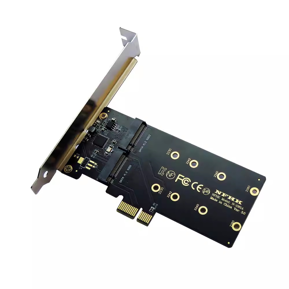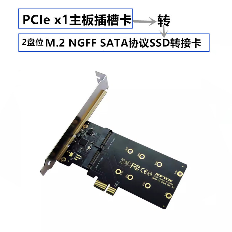 1、本转接卡使用ASM1061桥接芯片,仅支持SATA协议 M.2 NGFF SSD规格长度2230 2242 2260 2280,不支持任何NVMe PCIE协议M.2 SSD!