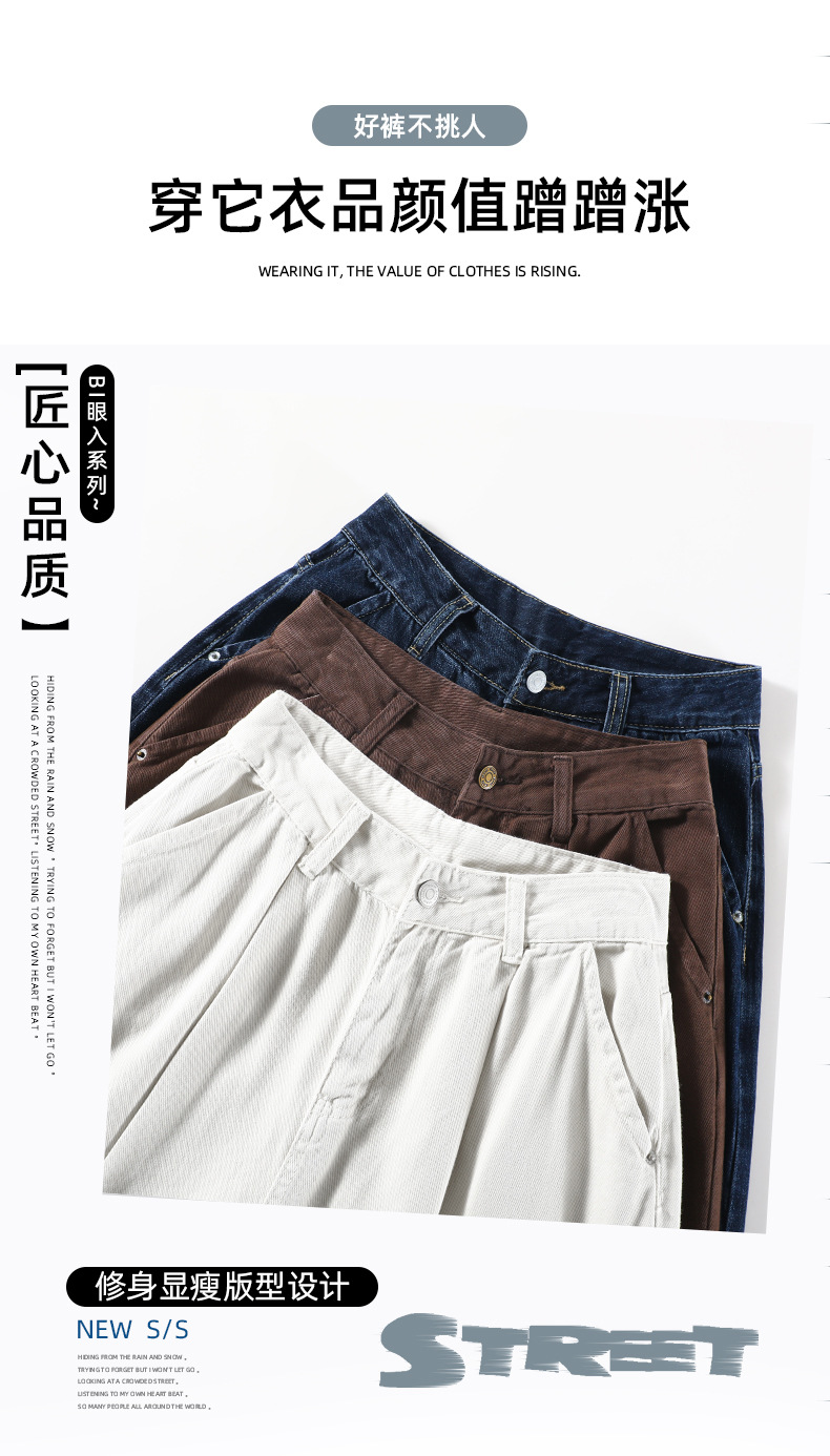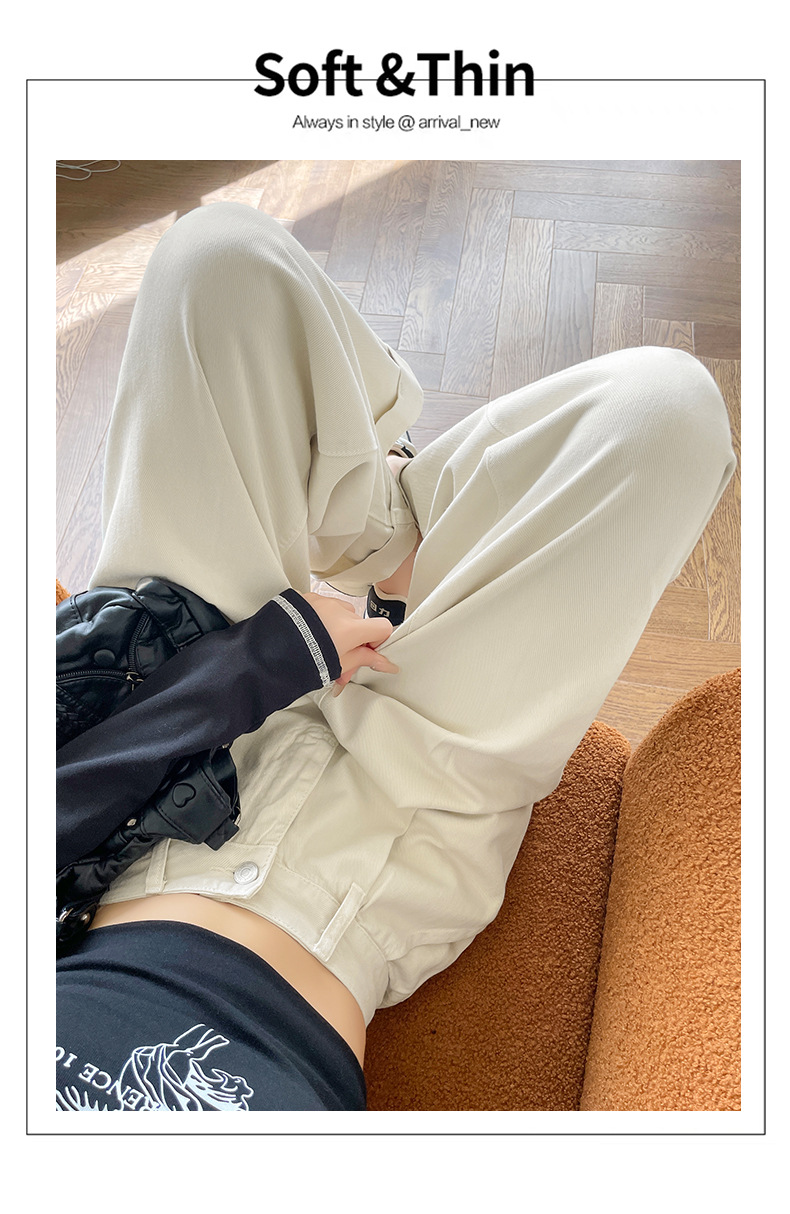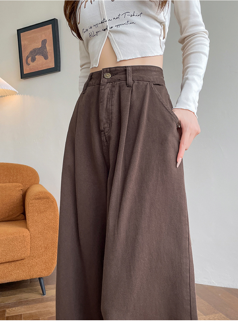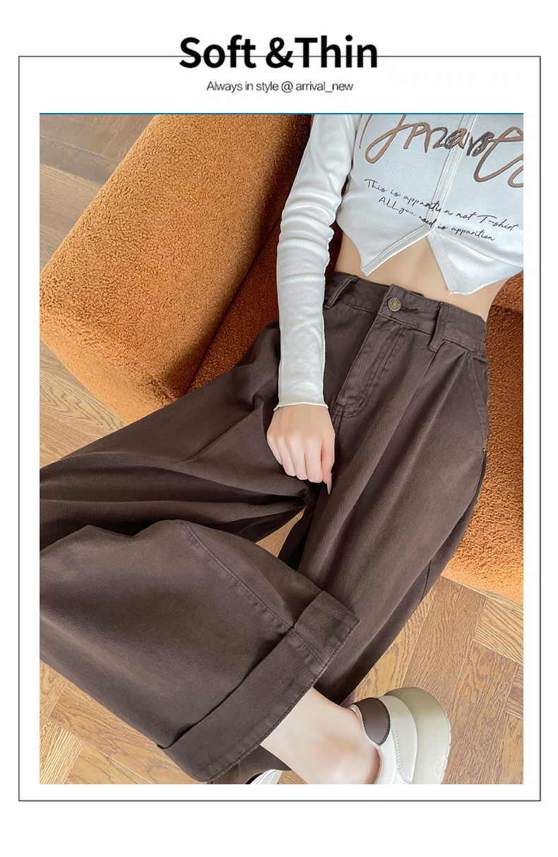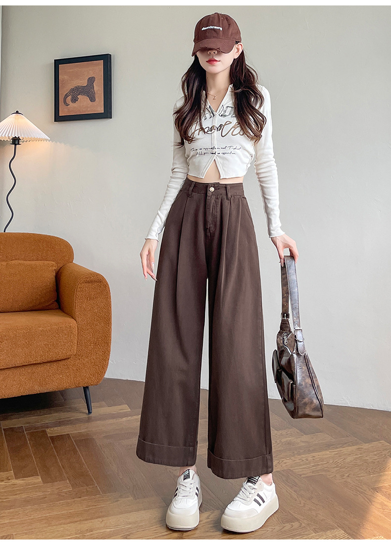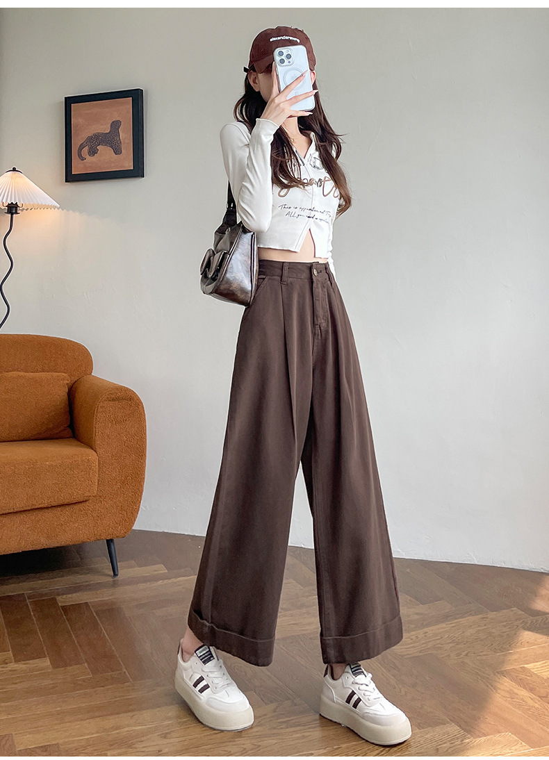 블루 그레이 턴 업 스트레이트 청바지 여성의 2024 년 봄과 가을 새로운 높은 허리 느슨한 넓은 다리 할머니 바지스토어 가기
