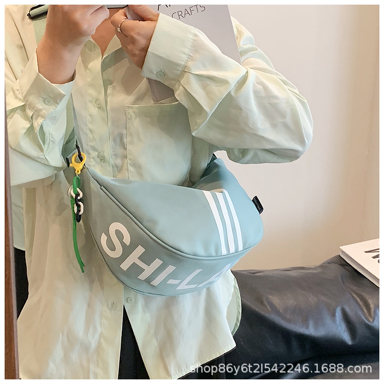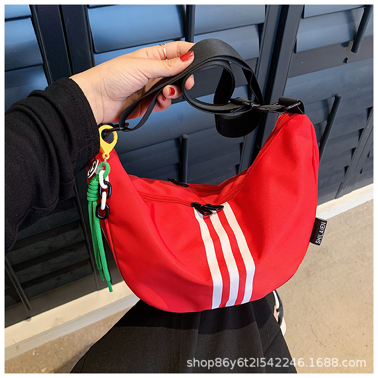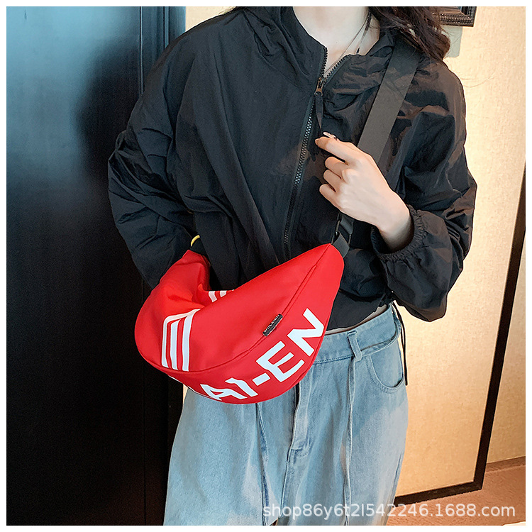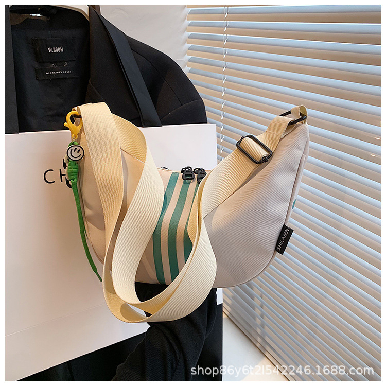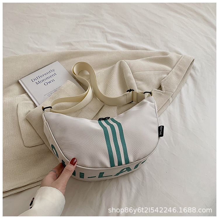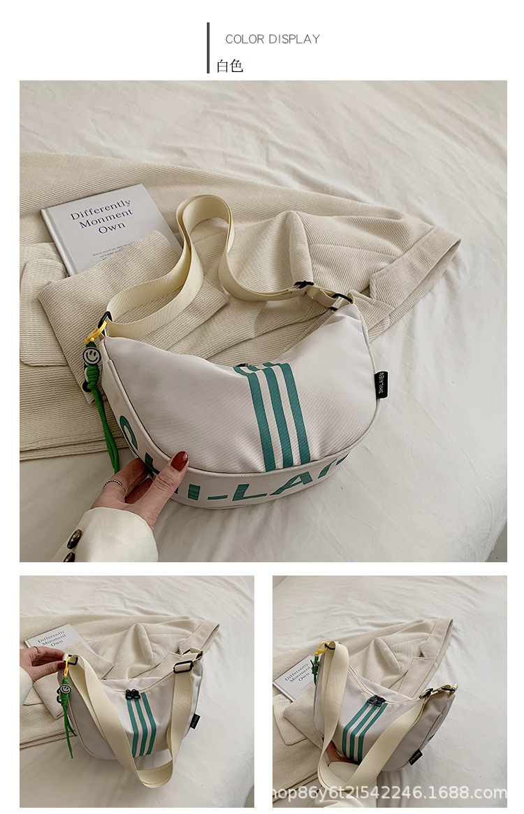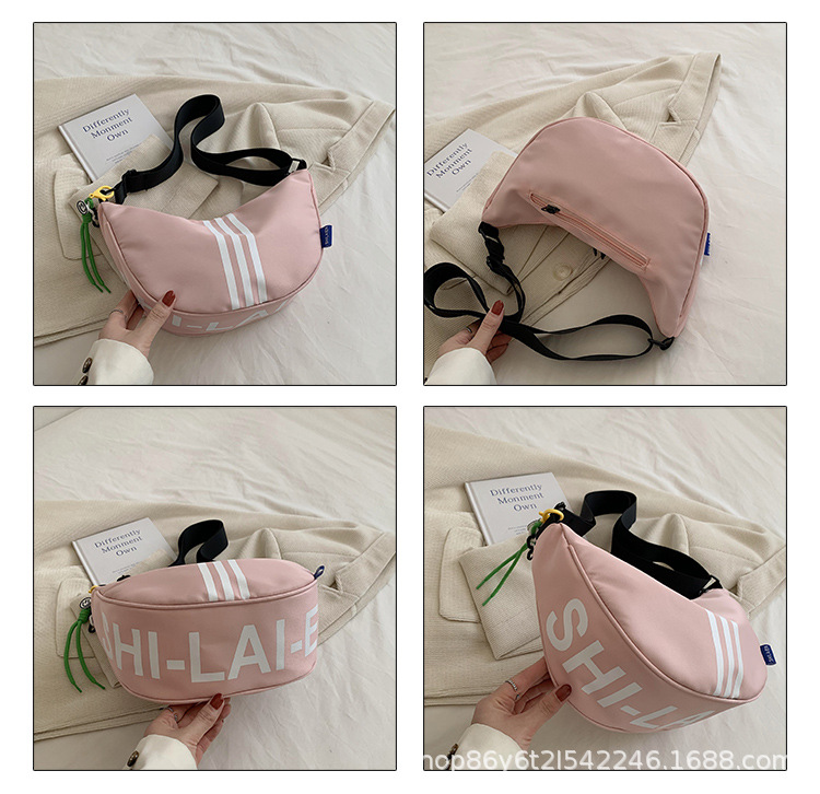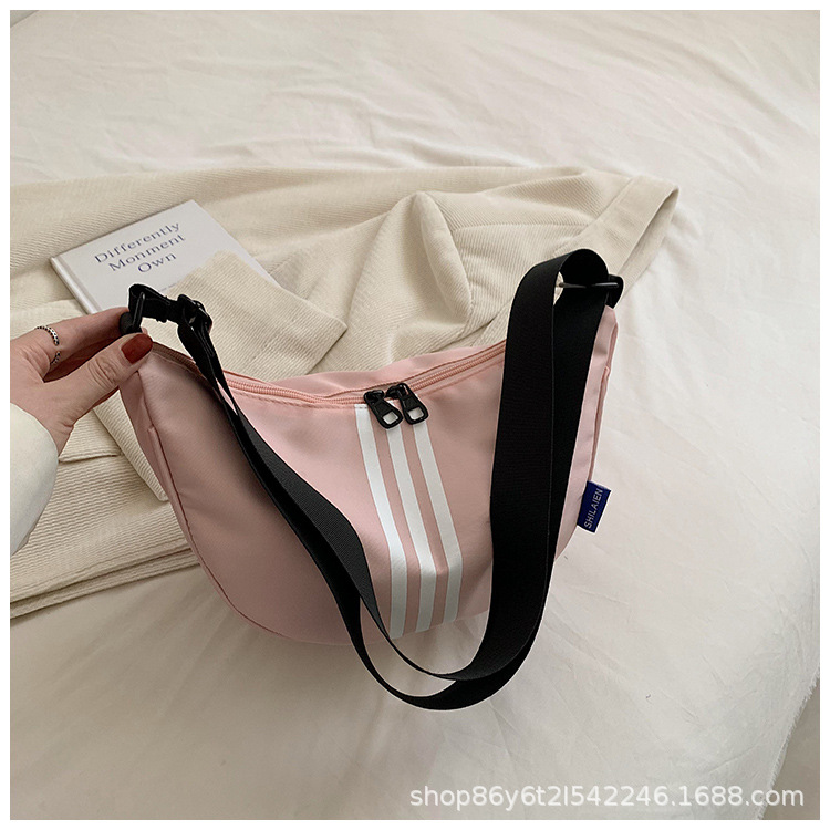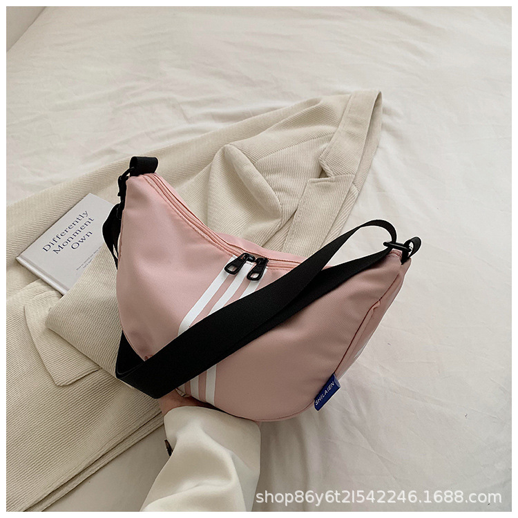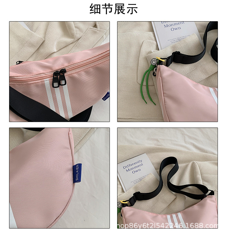 대용량 3 바 대조 컬러 나일론 캔버스 가방 여성의 새로운 패션 올 매치 캐주얼 어깨 크로스 바디 만두 백