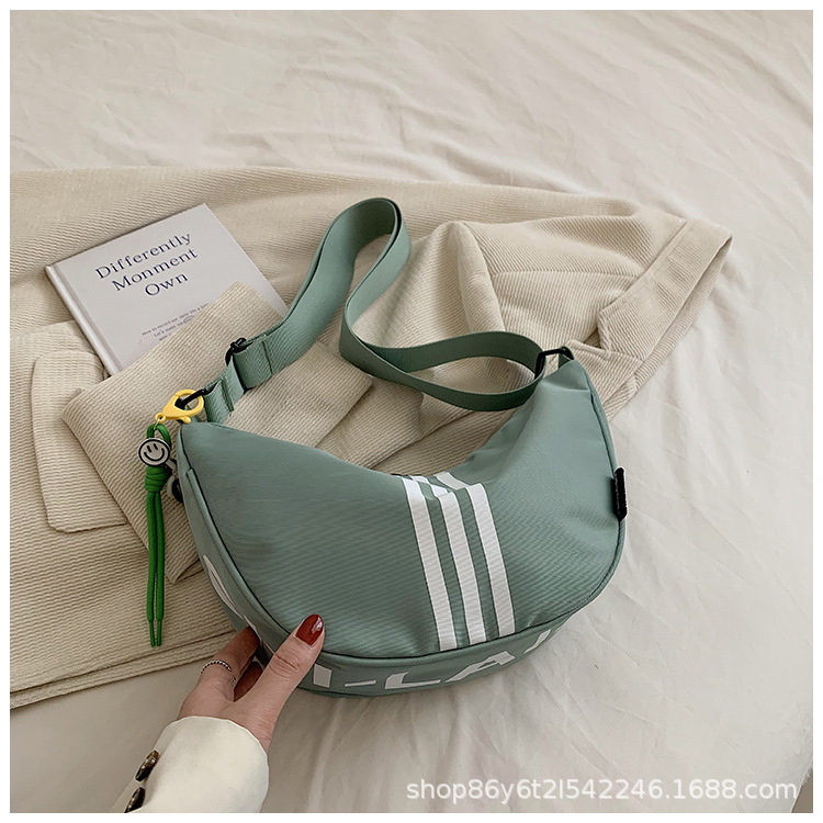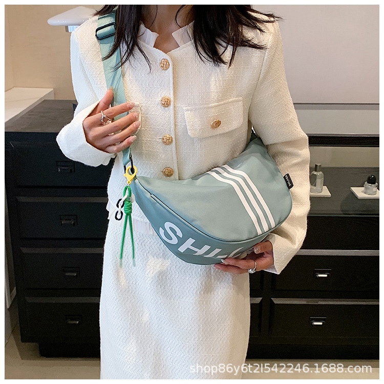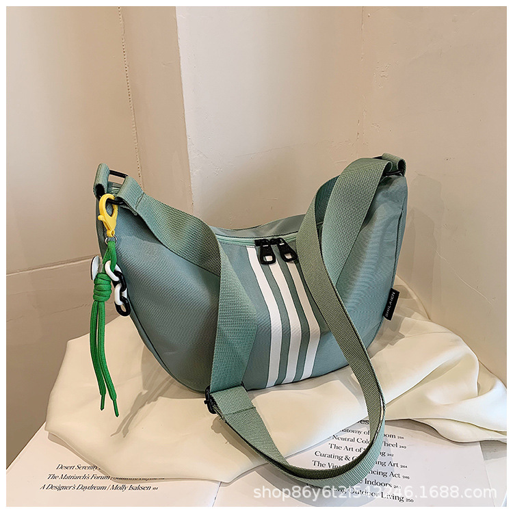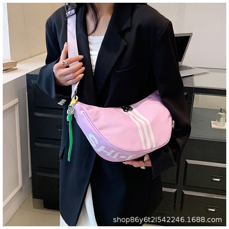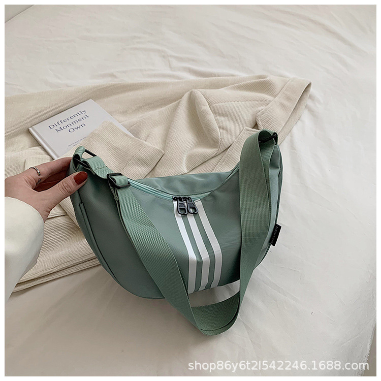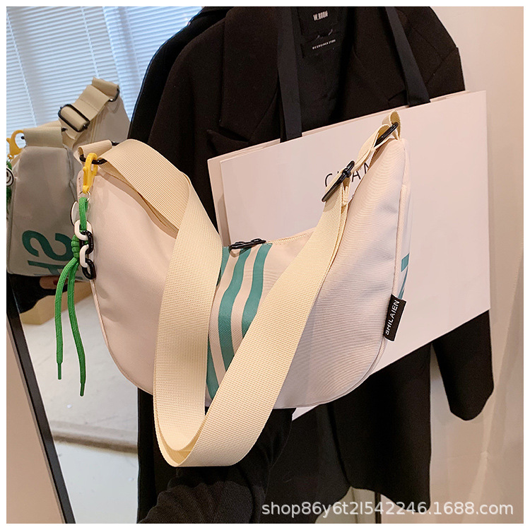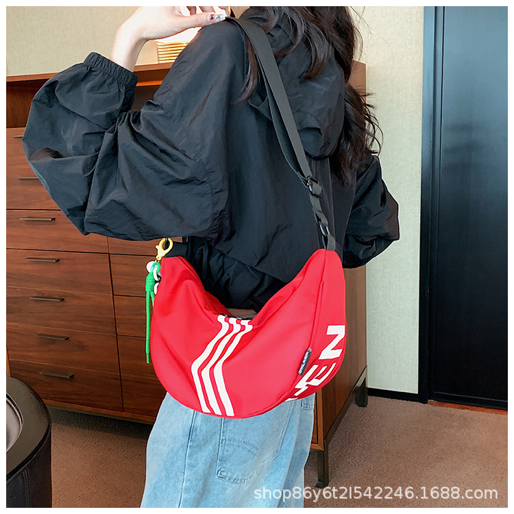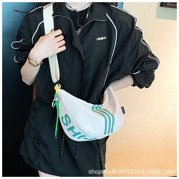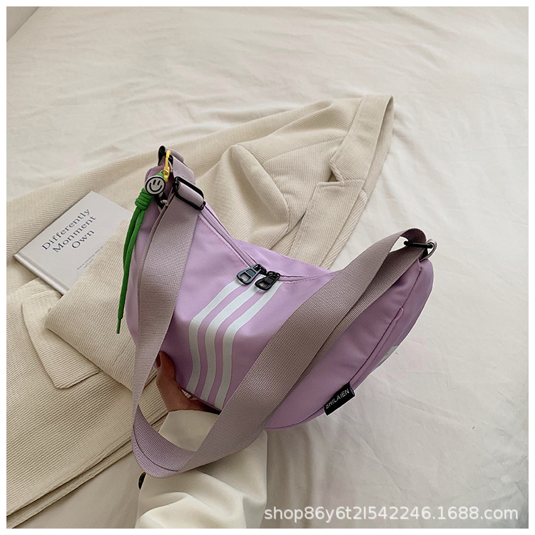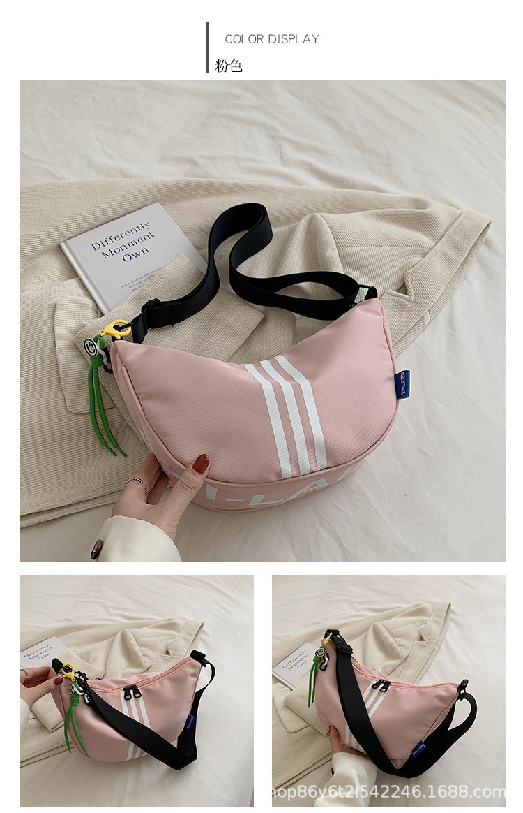 대용량 3 바 대조 컬러 나일론 캔버스 가방 여성의 새로운 패션 올 매치 캐주얼 어깨 크로스 바디 만두 백