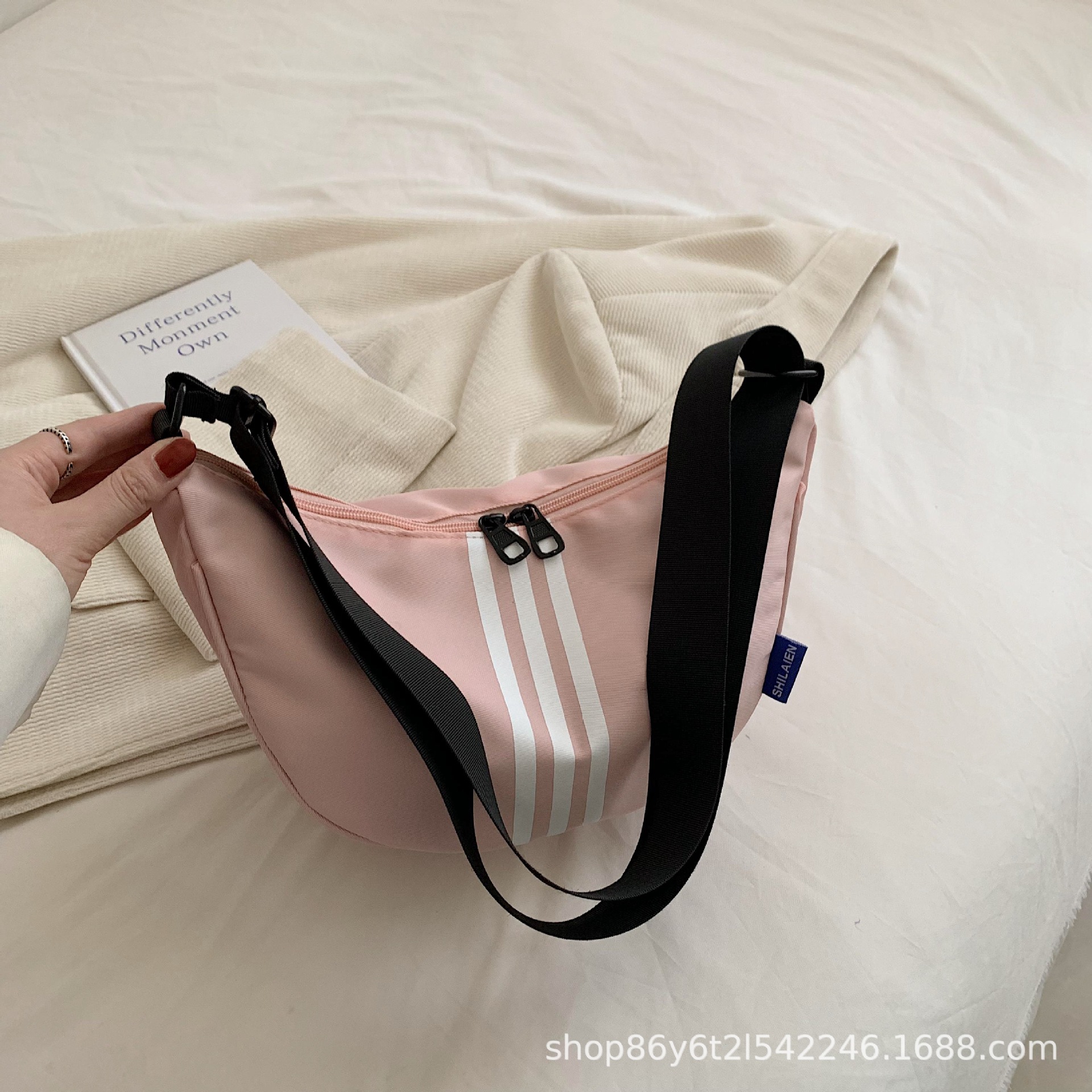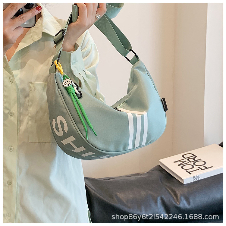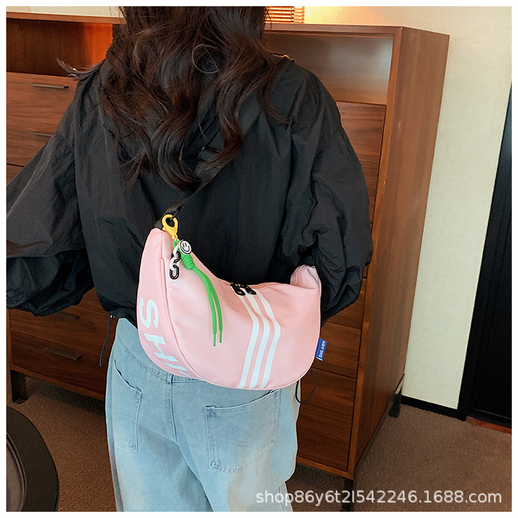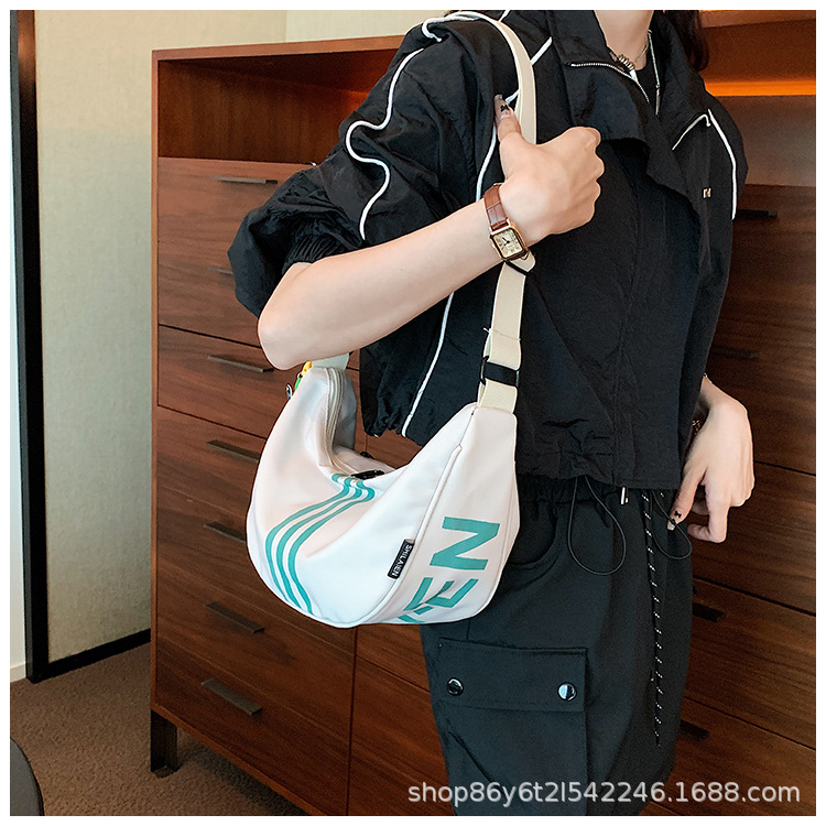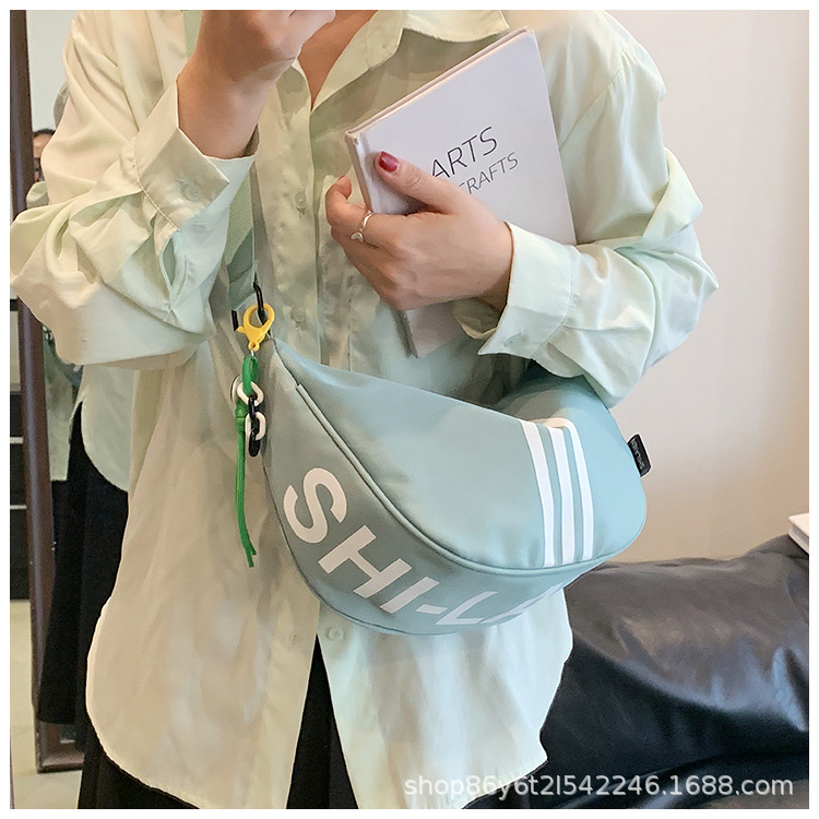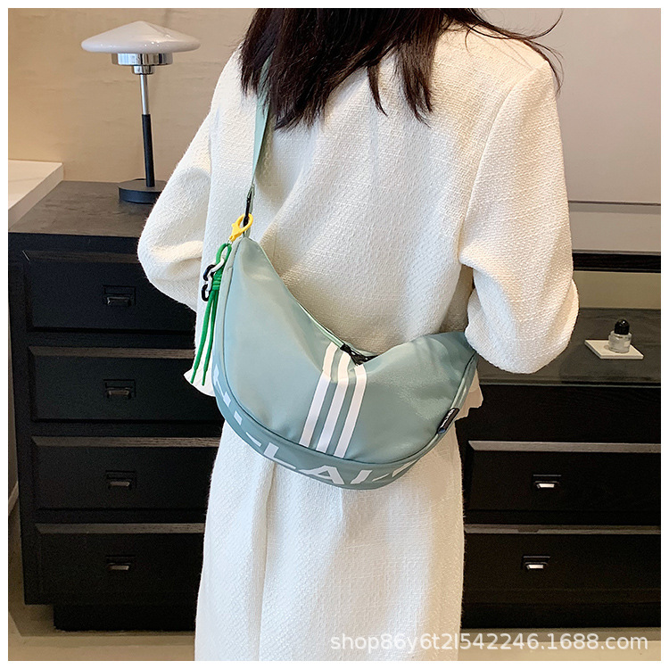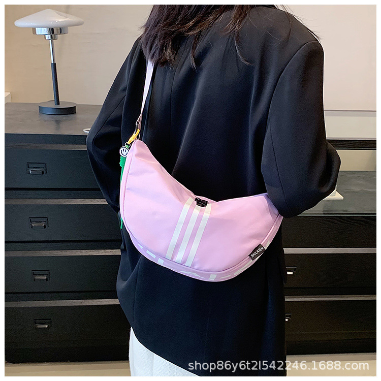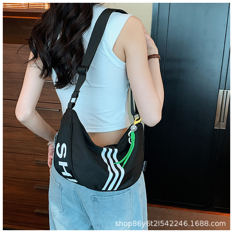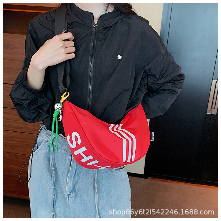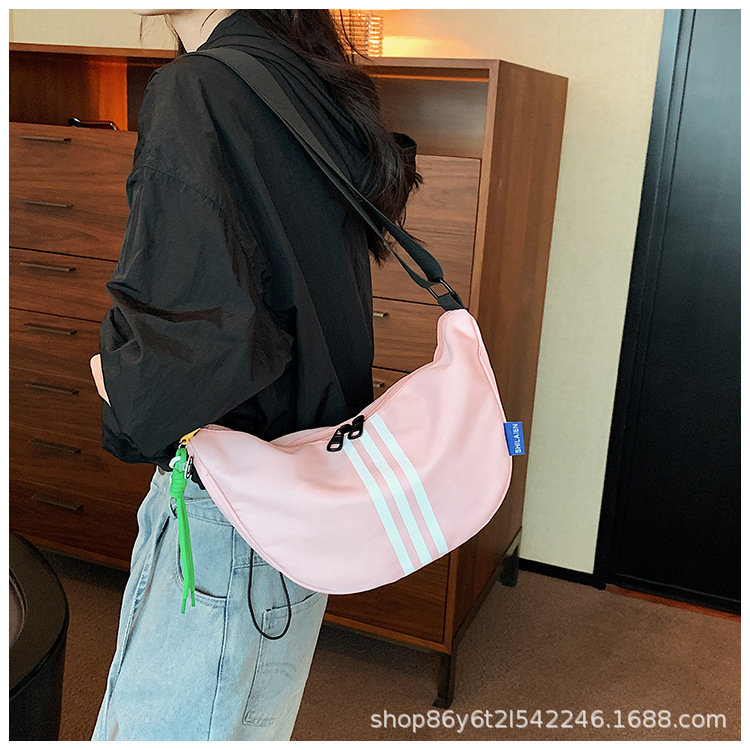 대용량 3 바 대조 컬러 나일론 캔버스 가방 여성의 새로운 패션 올 매치 캐주얼 어깨 크로스 바디 만두 백