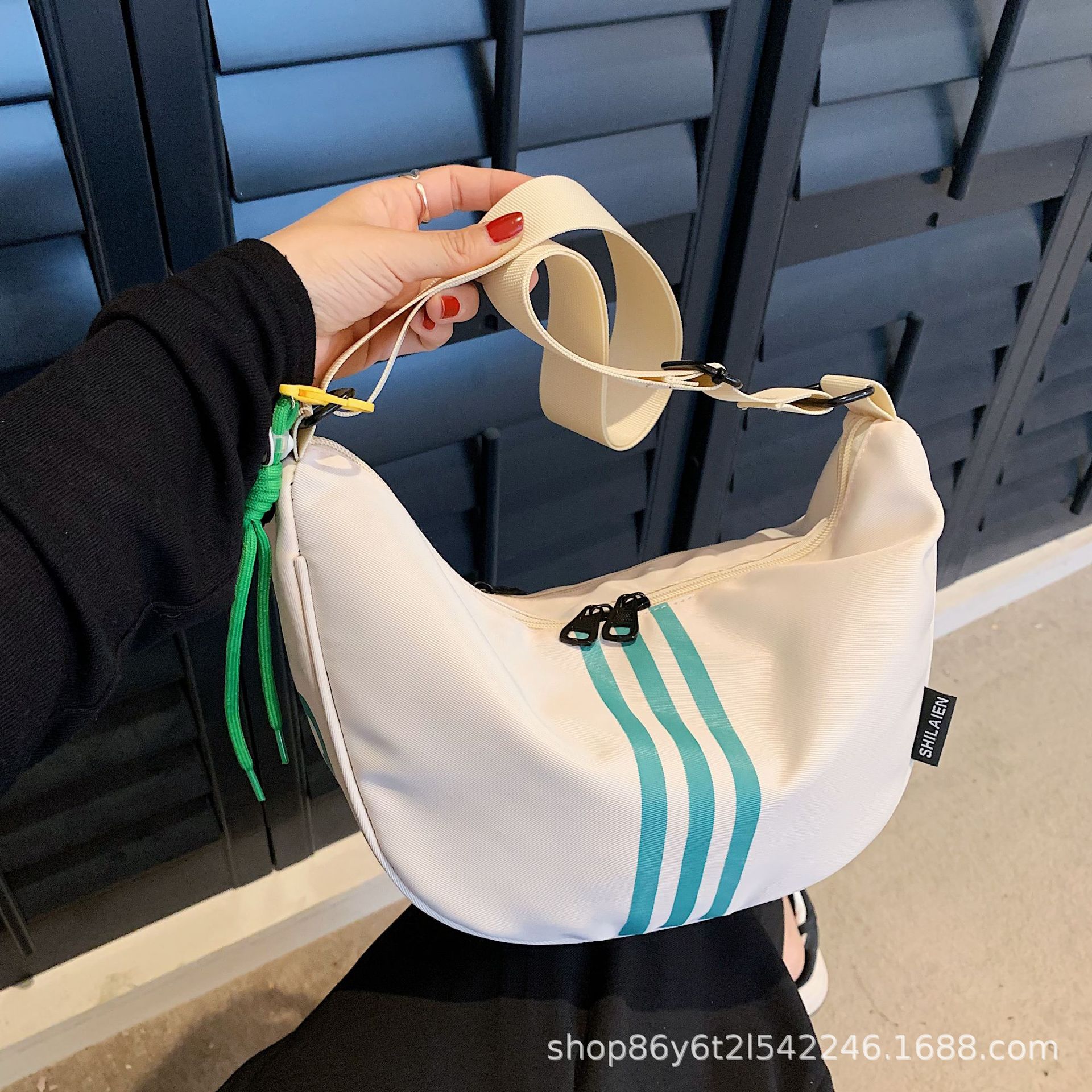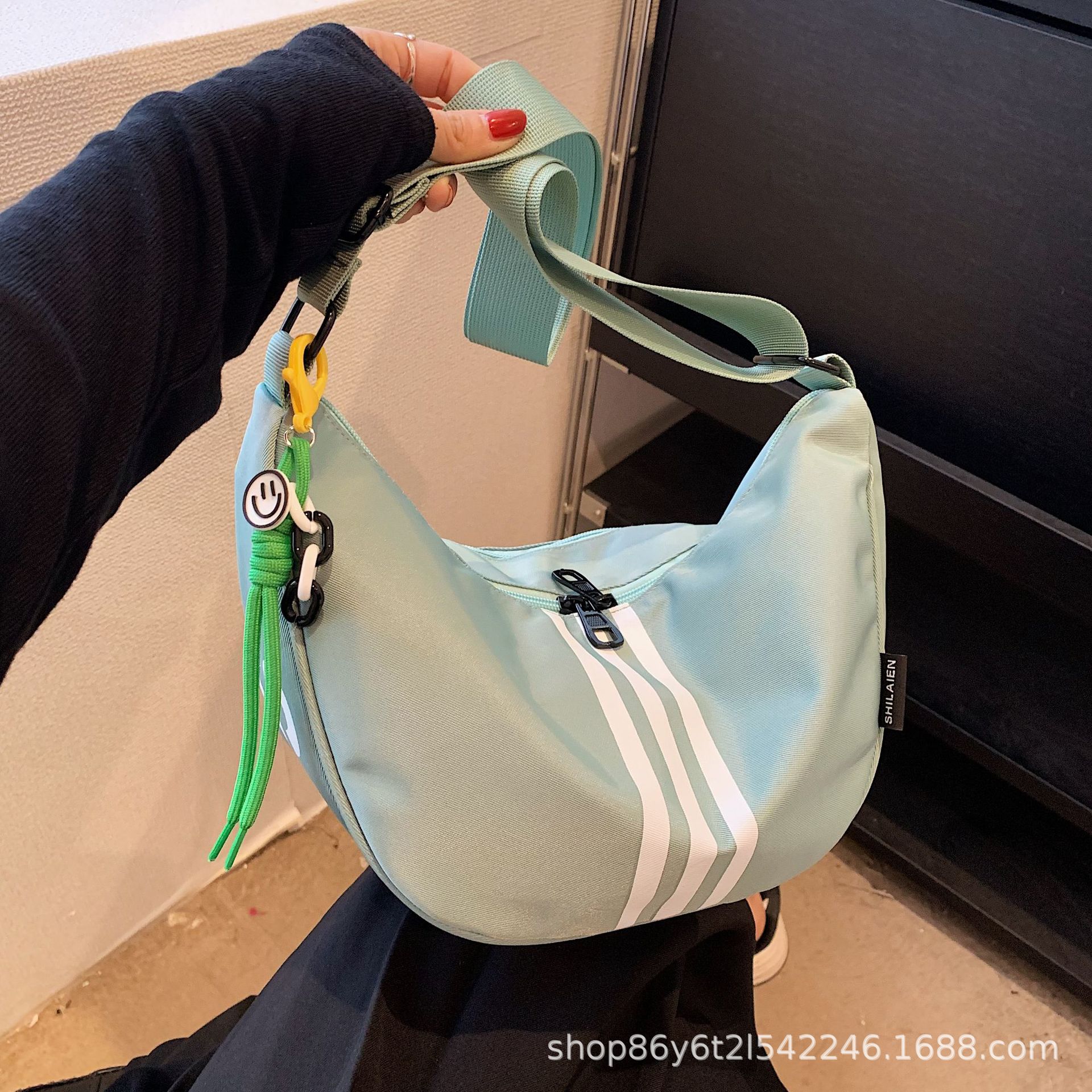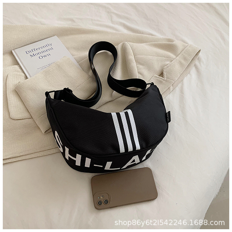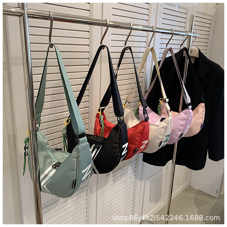 대용량 3 바 대조 컬러 나일론 캔버스 가방 여성의 새로운 패션 올 매치 캐주얼 어깨 크로스 바디 만두 백스토어 가기