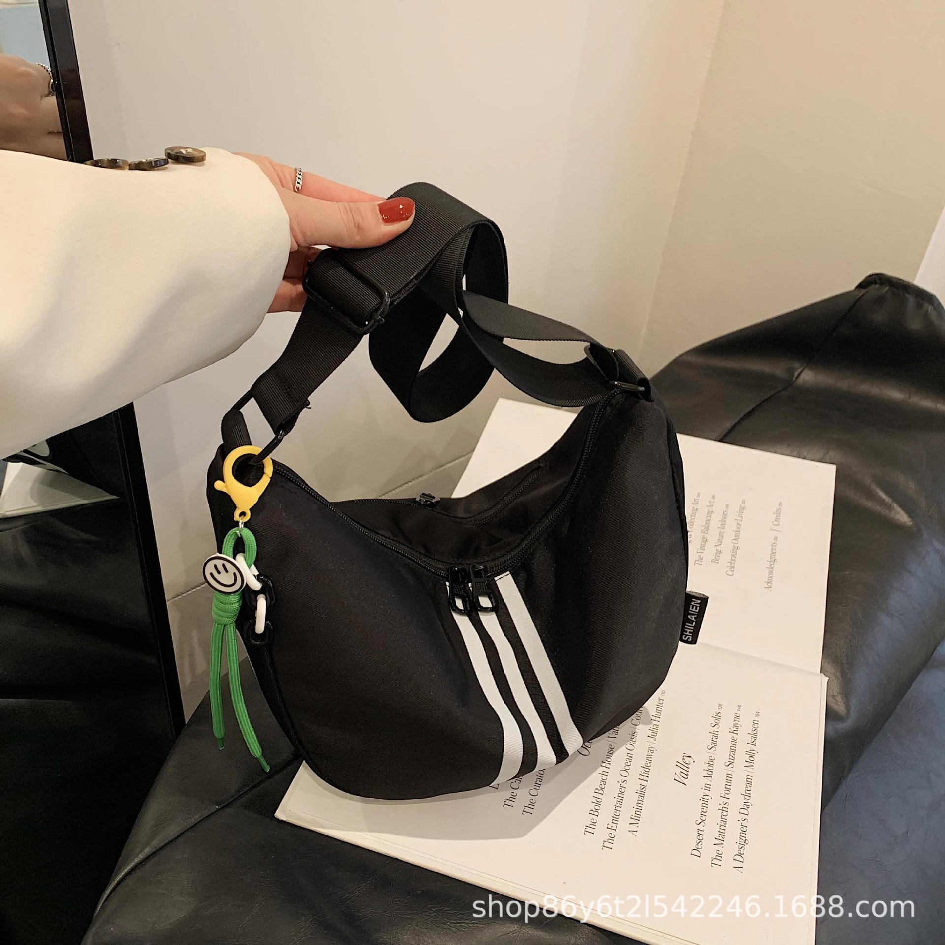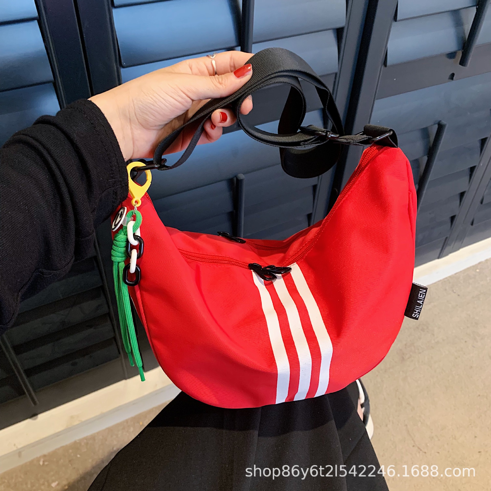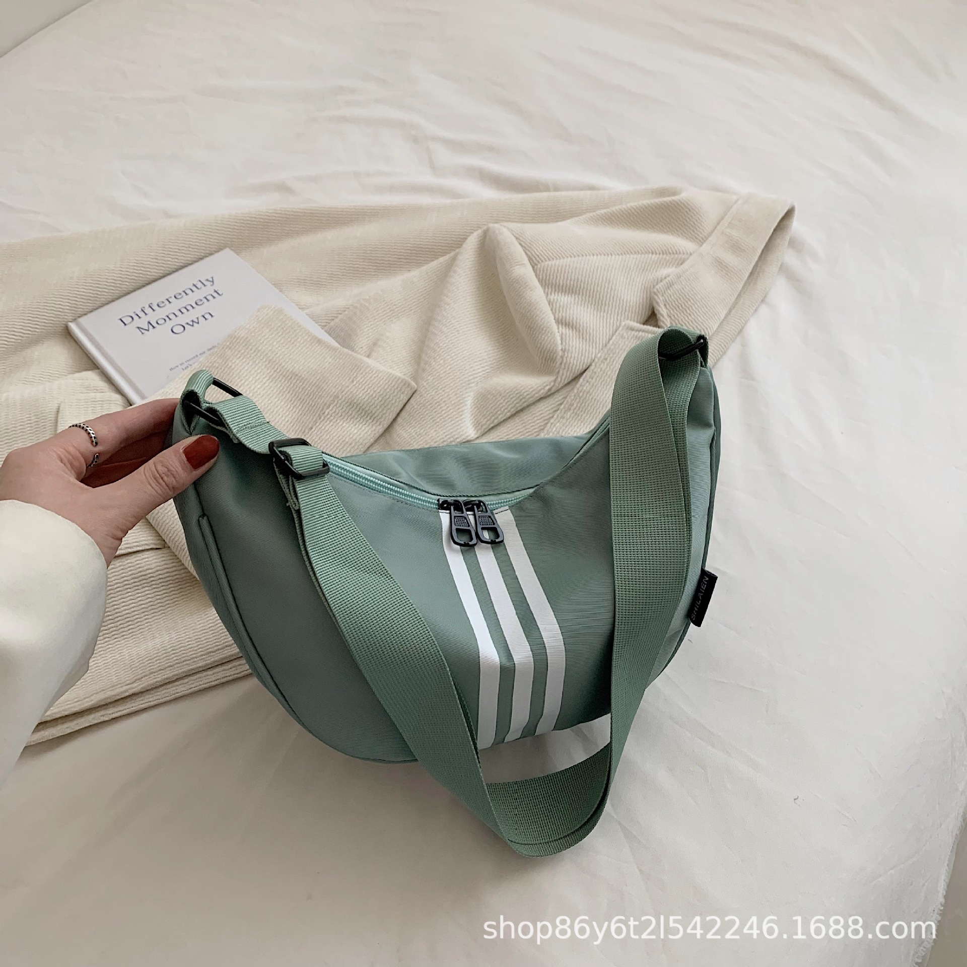 대용량 3 바 대조 컬러 나일론 캔버스 가방 여성의 새로운 패션 올 매치 캐주얼 어깨 크로스 바디 만두 백스토어 가기