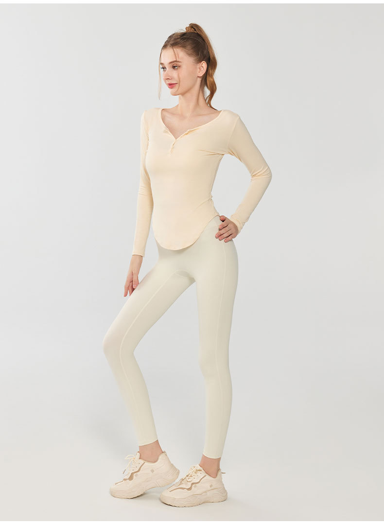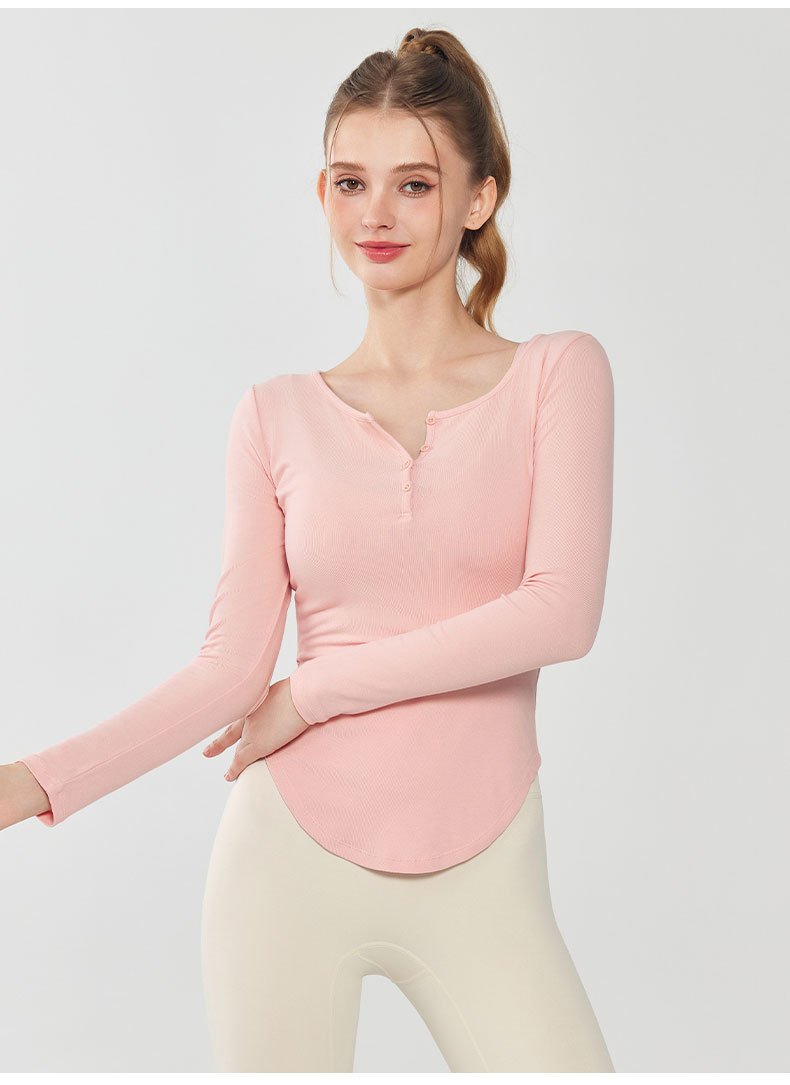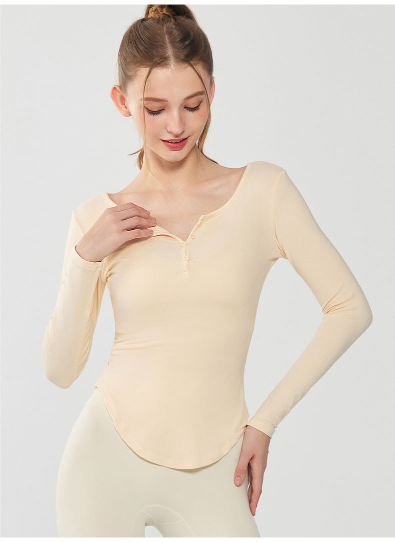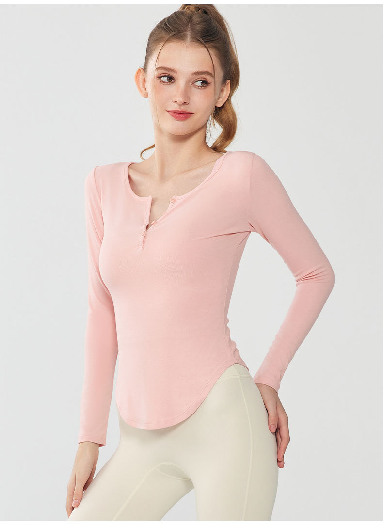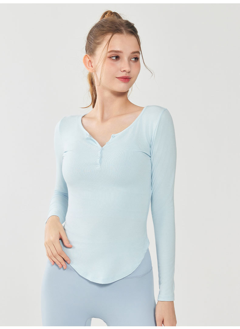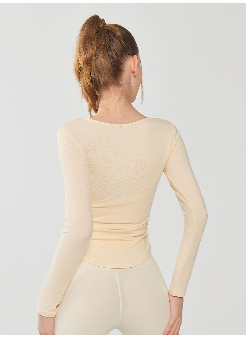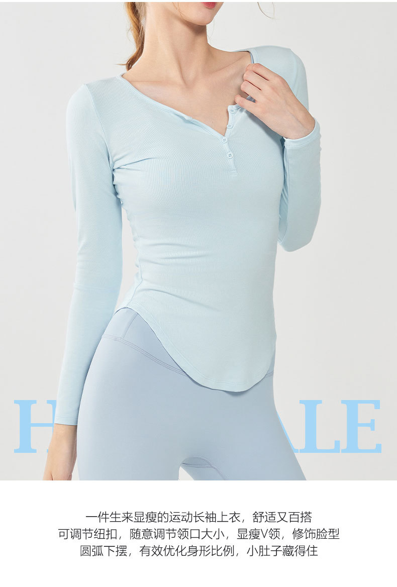모달 요가 세트 긴팔 여성용 V 넥 슬림 핏 슬림 얇은베이스 셔츠 티셔츠 가을 달리기 피트니스 탑