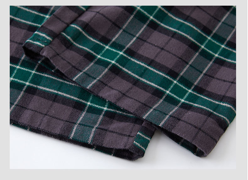 • 여성용 - 베이지 + 그린 그레이 체크 - 플란넬
