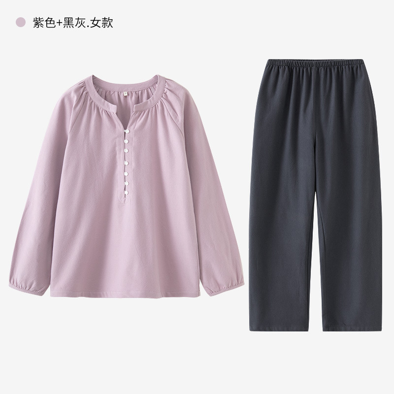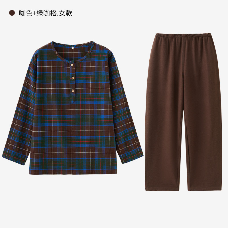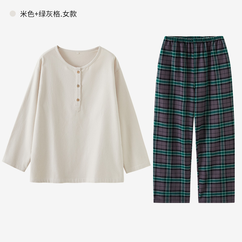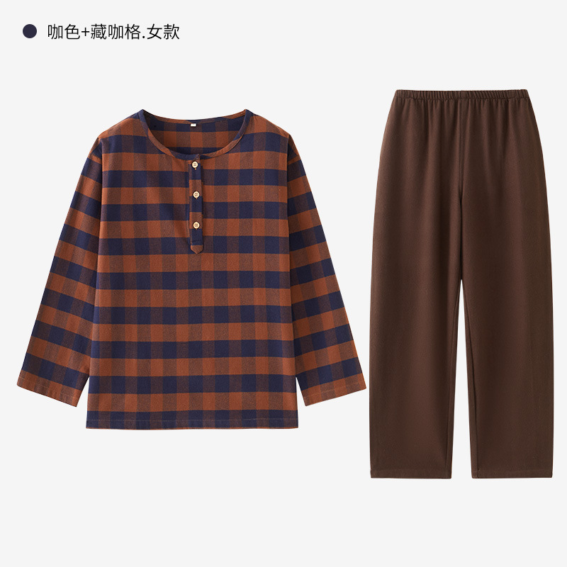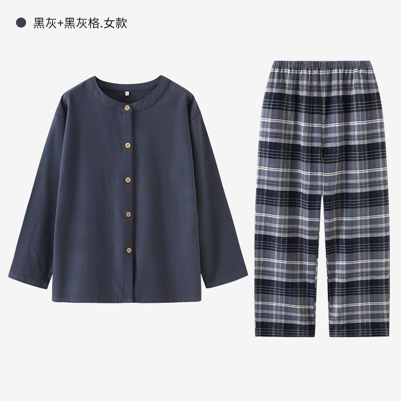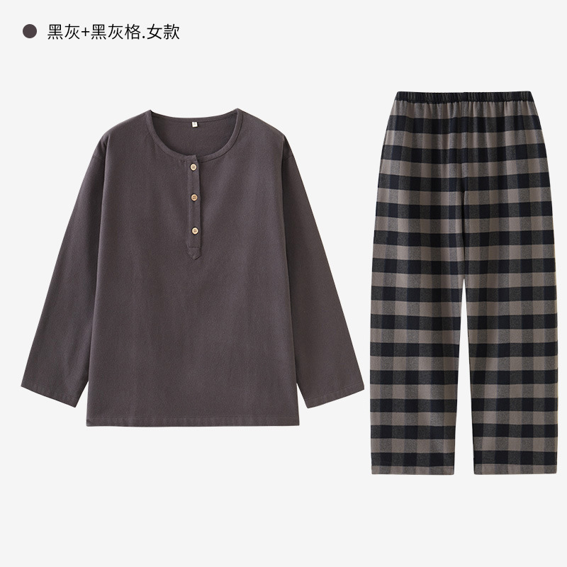 일본풍 커플 잠옷 여성용 가을 겨울 순면 기모 플란넬 외출복 홈웨어 대형 사이즈 세트