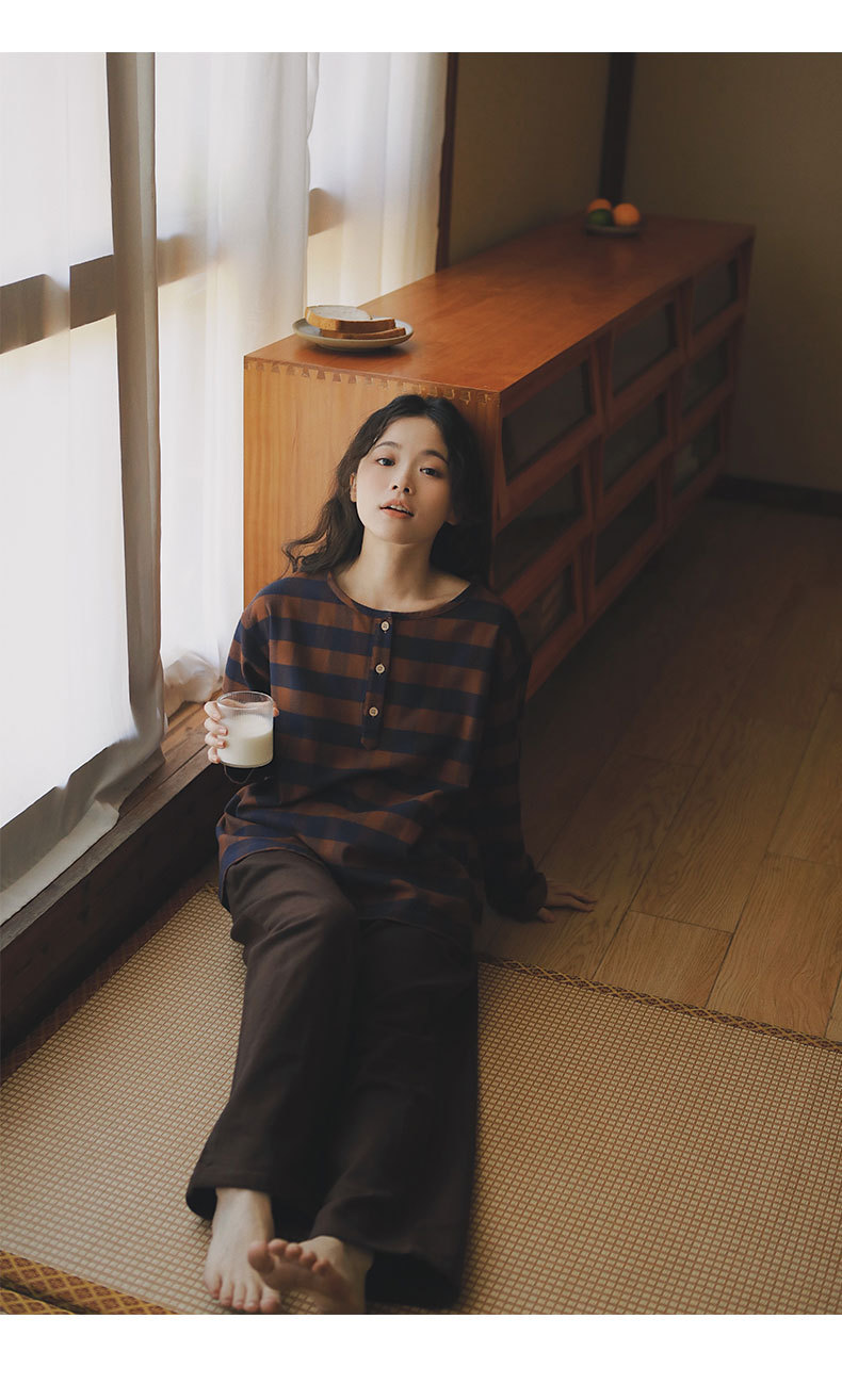 일본풍 커플 잠옷 여성용 가을 겨울 순면 기모 플란넬 외출복 홈웨어 대형 사이즈 세트스토어 가기