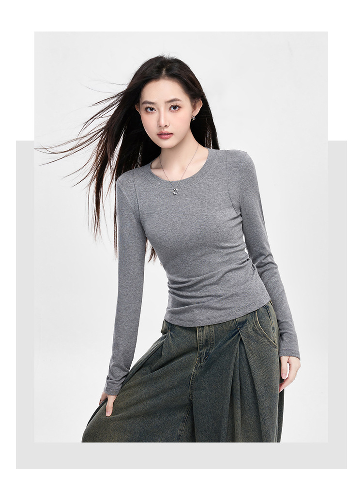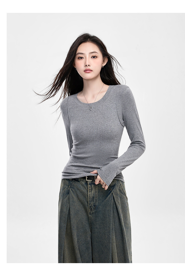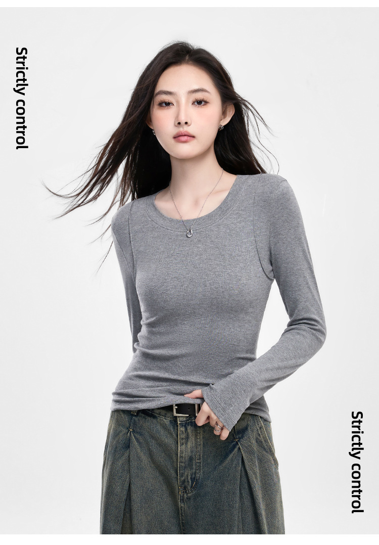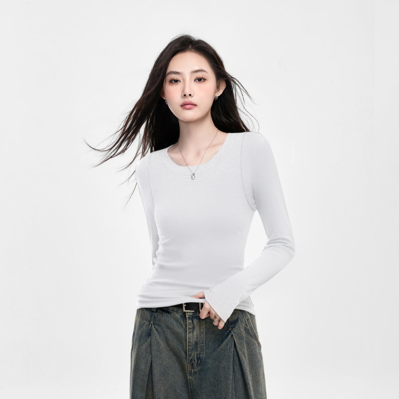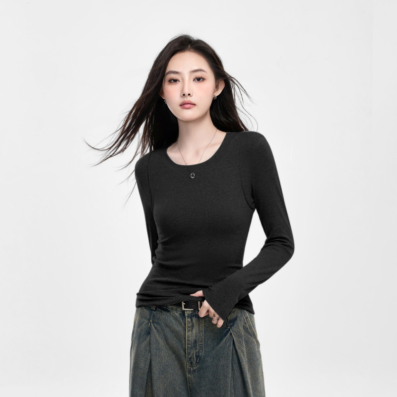 25년 신제품 피부친화적인 슬림핏 긴팔 디자인 티셔츠 여성용 여성용 솔리드 컬러 바텀 셔츠스토어 가기